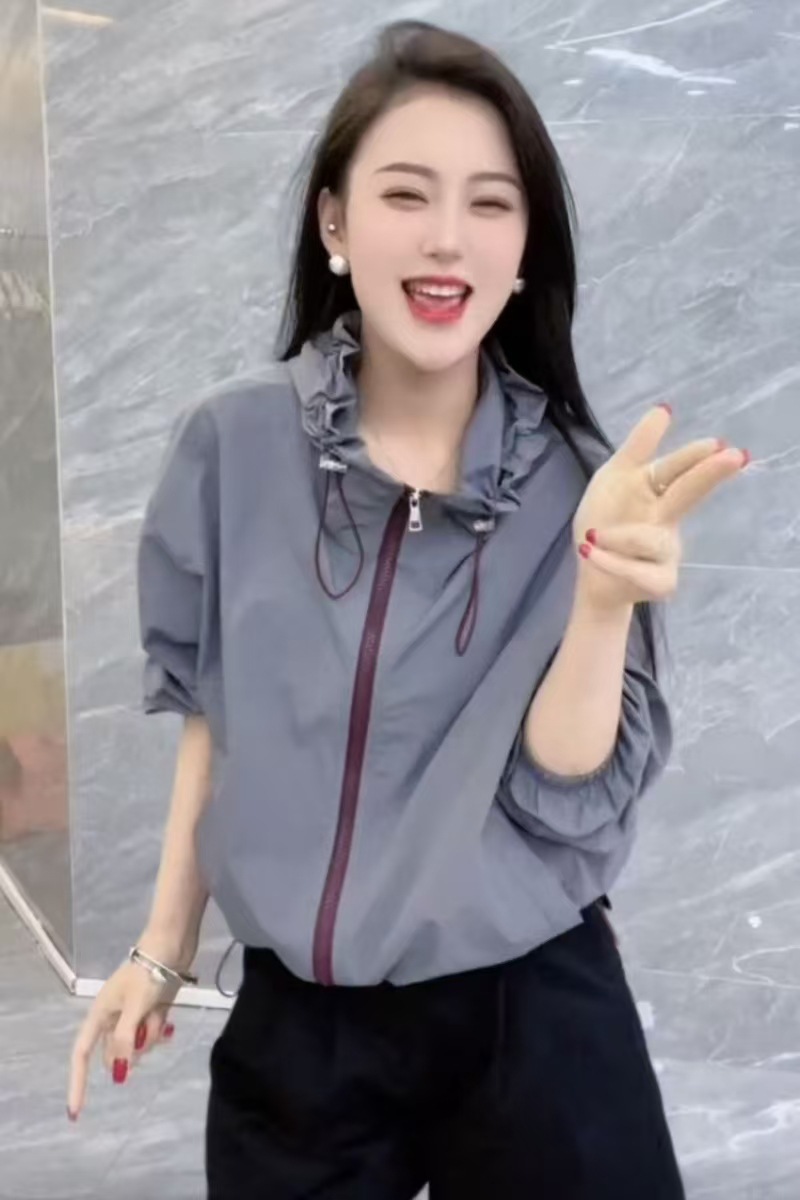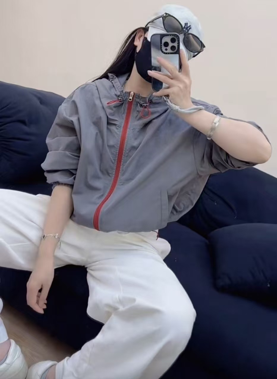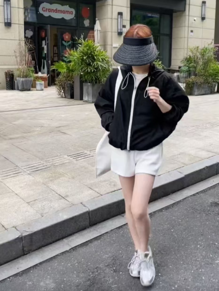 여성을위한 대비 색 후드 야외 태양 보호 의류 재킷 2025 봄 새로운 느슨한 다목적 재킷 탑 유행스토어 가기