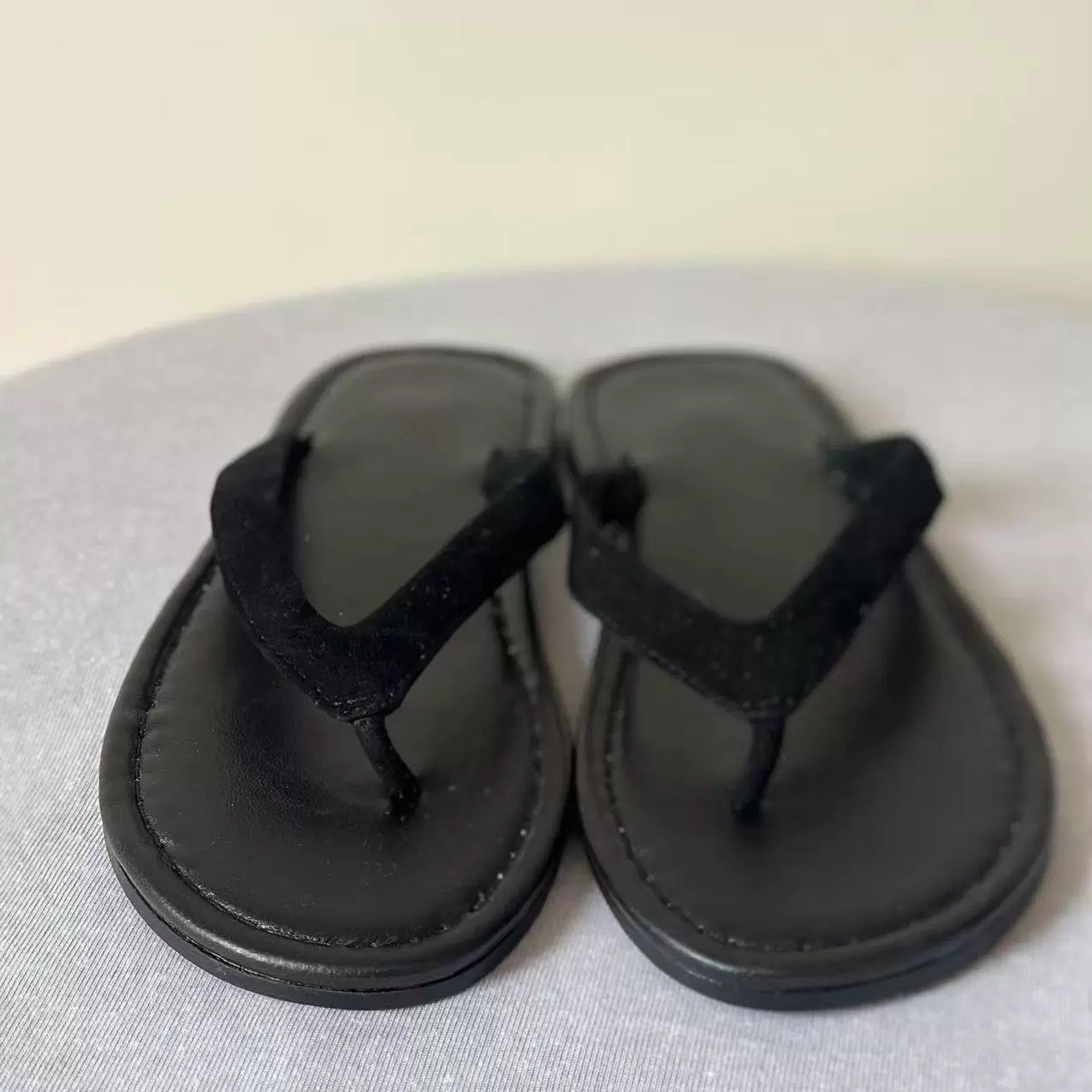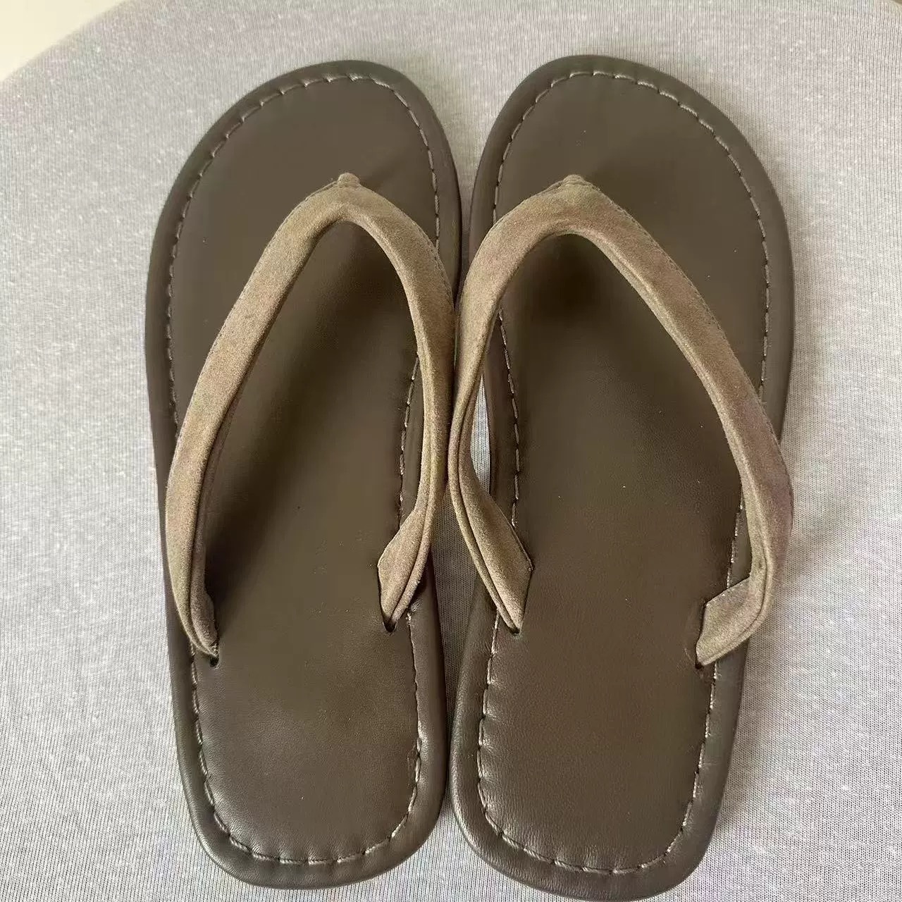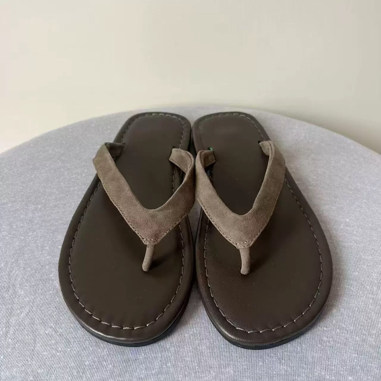 Cowhide 버전 ~ 간단한 캐주얼 플랫 플립 플롭 여성 아우터 착용 2025 여름 뉴 비치 슬리퍼스토어 가기