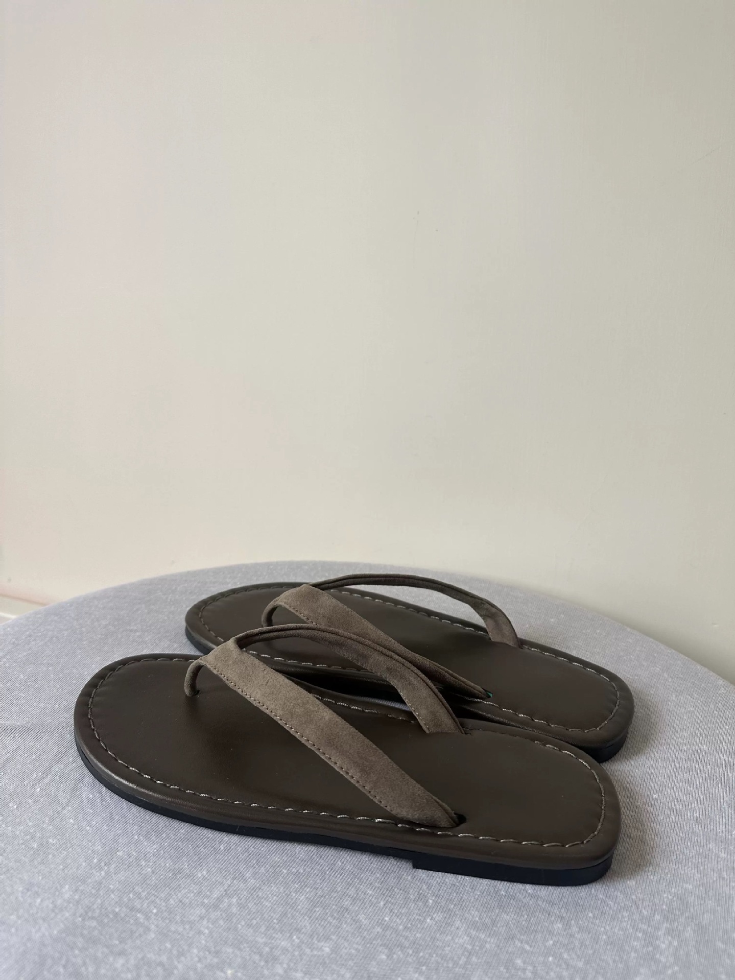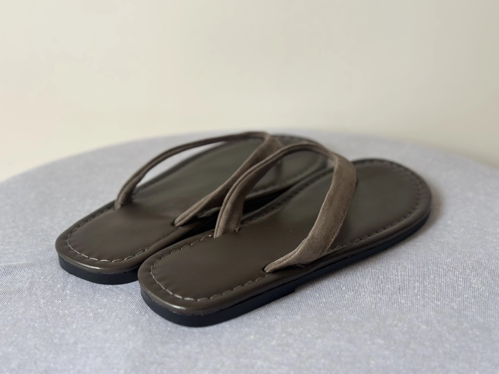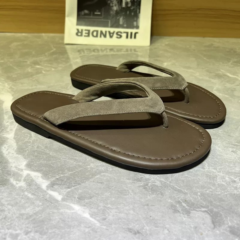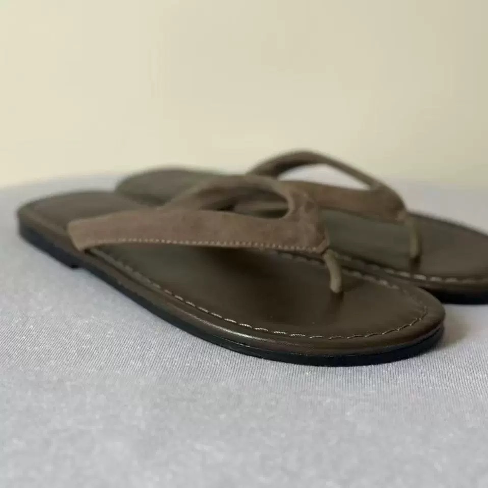 Cowhide 버전 ~ 간단한 캐주얼 플랫 플립 플롭 여성 아우터 착용 2025 여름 뉴 비치 슬리퍼스토어 가기