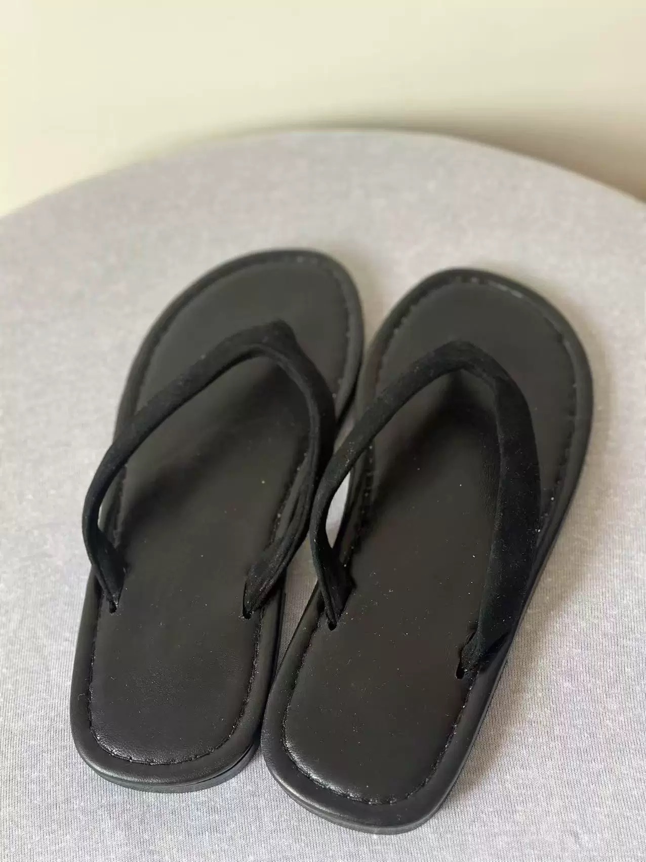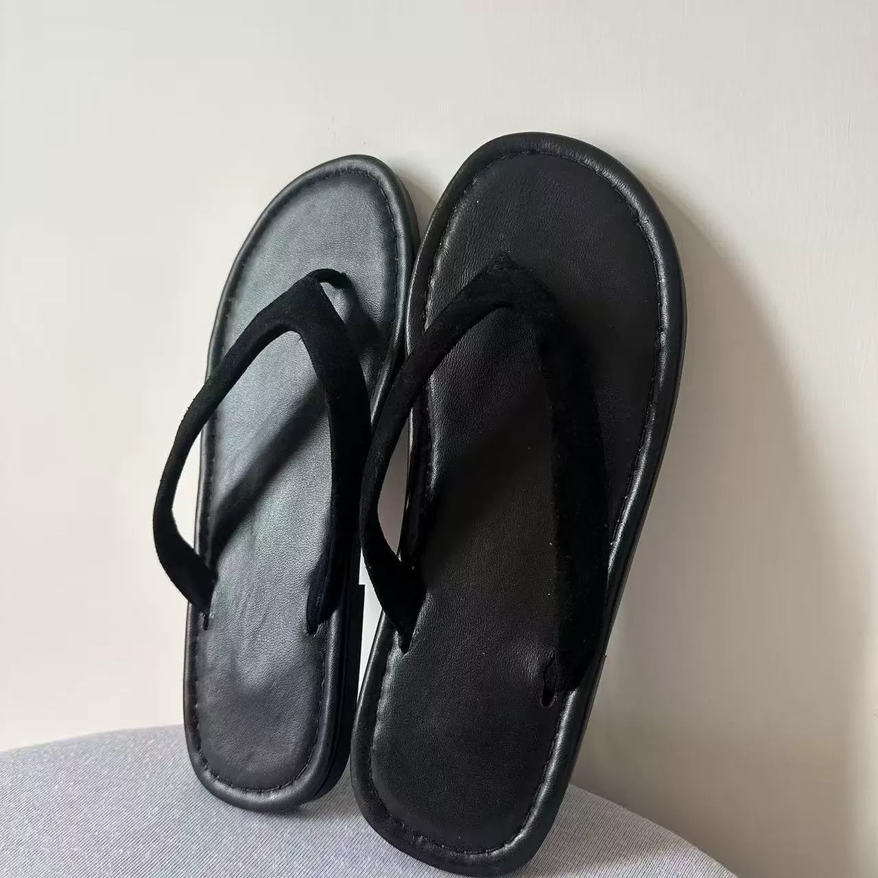 Cowhide 버전 ~ 간단한 캐주얼 플랫 플립 플롭 여성 아우터 착용 2025 여름 뉴 비치 슬리퍼