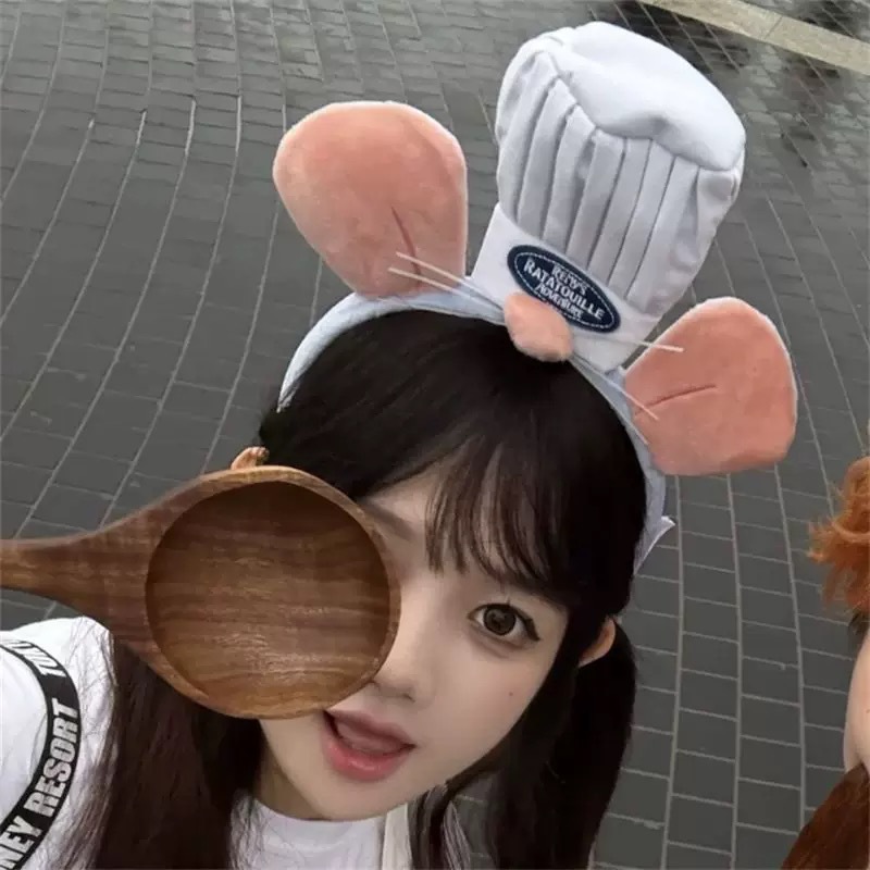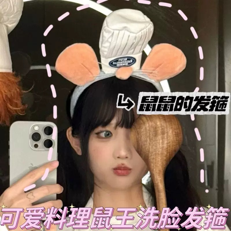 새로운 귀여운 라따뚜이 헤어 밴드 워시 페이스 헤드 밴드 만화 웃긴 푹신한 마우스 인터넷 기념 헤드폰 헤어 클램프 헤드 밴드스토어 가기