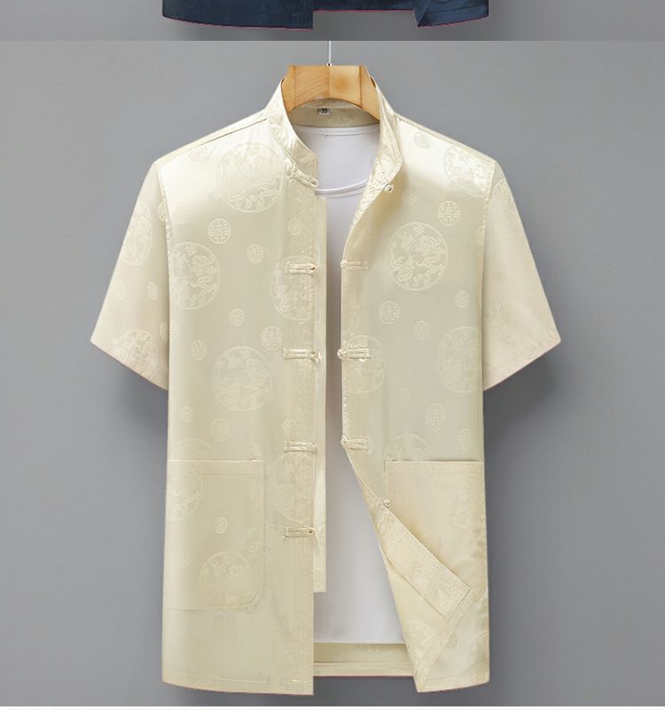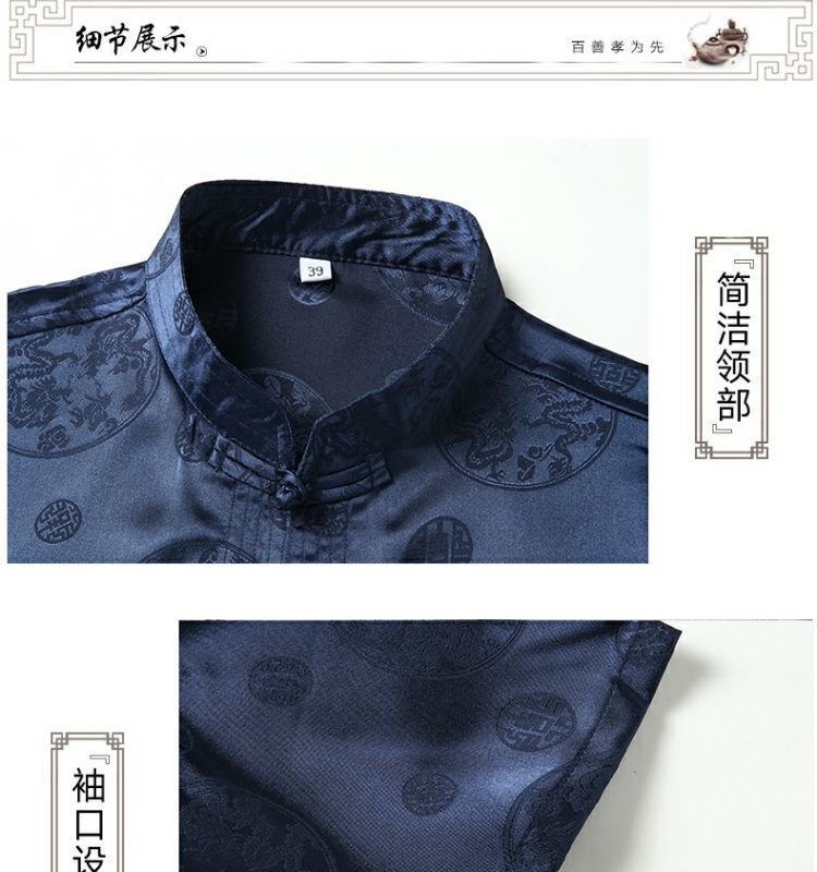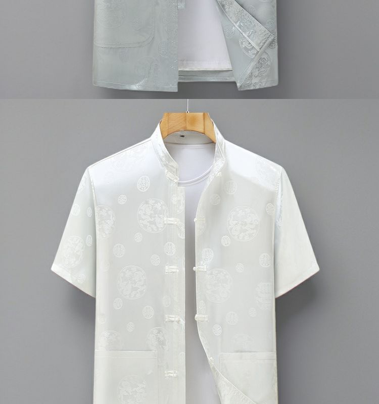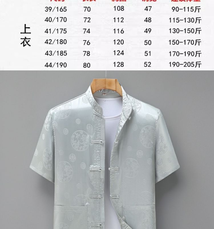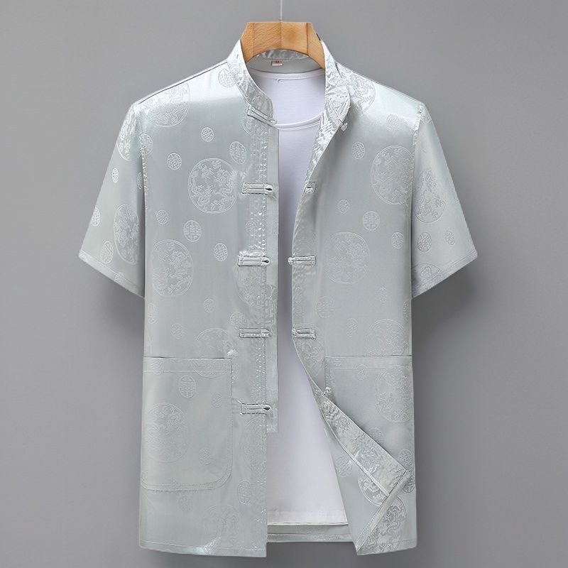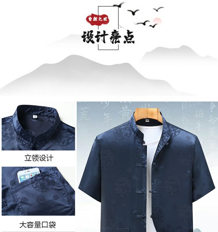 남자 여름 아이스 실크 중년 및 노인 아빠를위한 반팔 탑 얇은 셔츠 느슨한 국가 스타일 탕 스타일 할아버지 셔츠