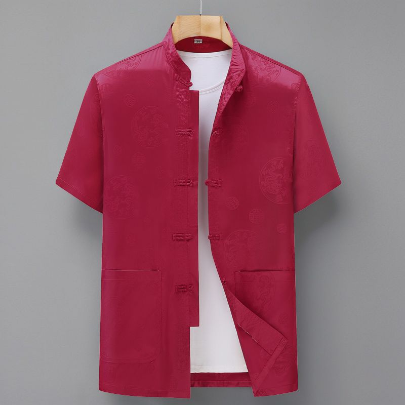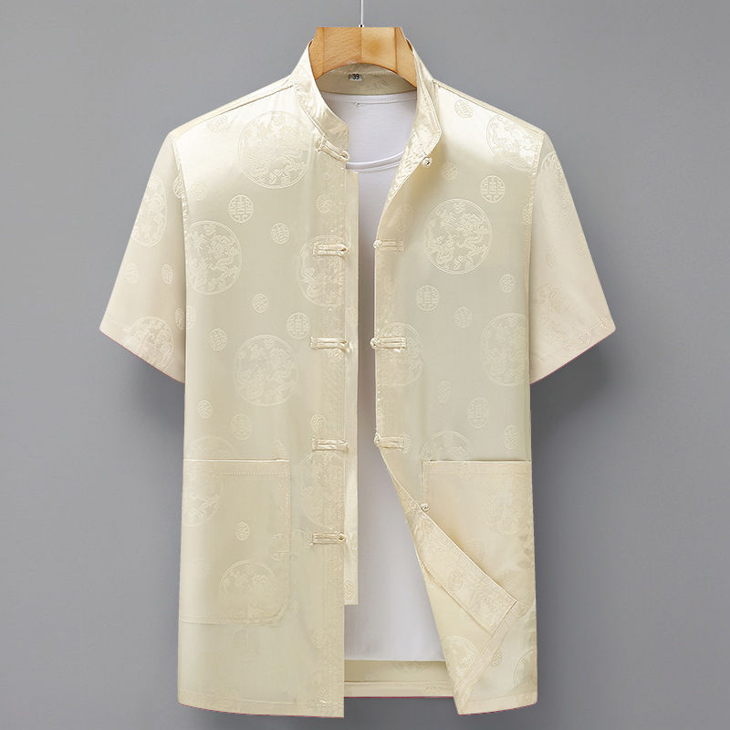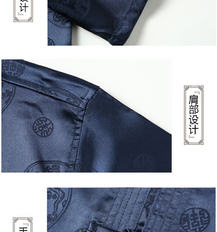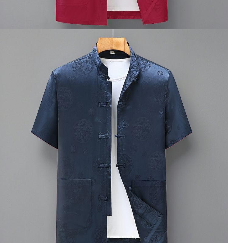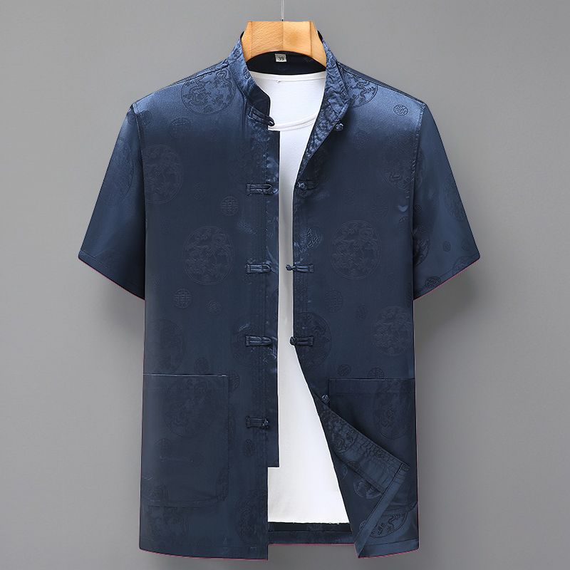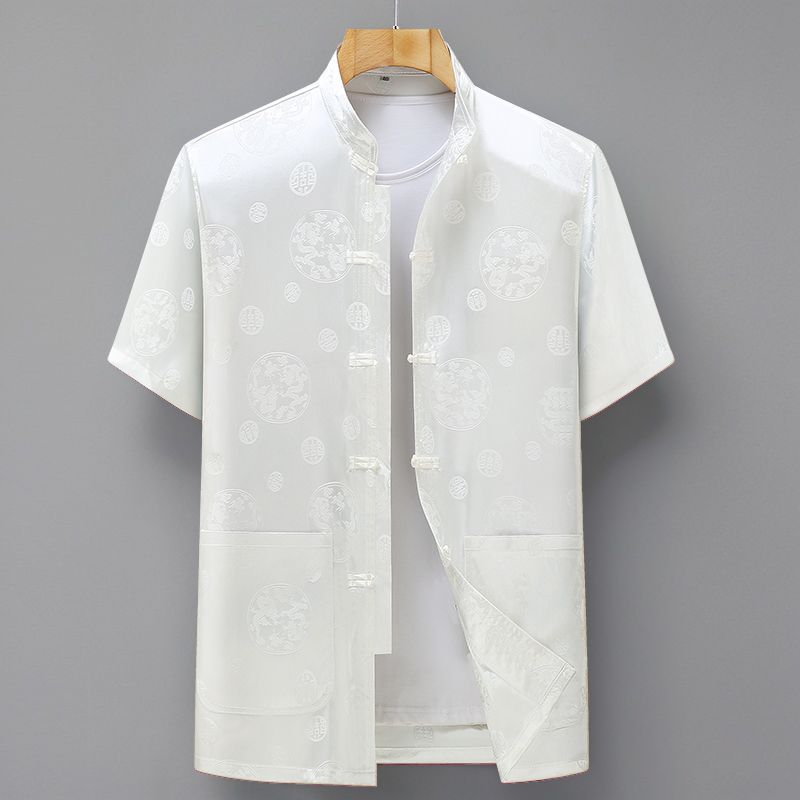 남자 여름 아이스 실크 중년 및 노인 아빠를위한 반팔 탑 얇은 셔츠 느슨한 국가 스타일 탕 스타일 할아버지 셔츠