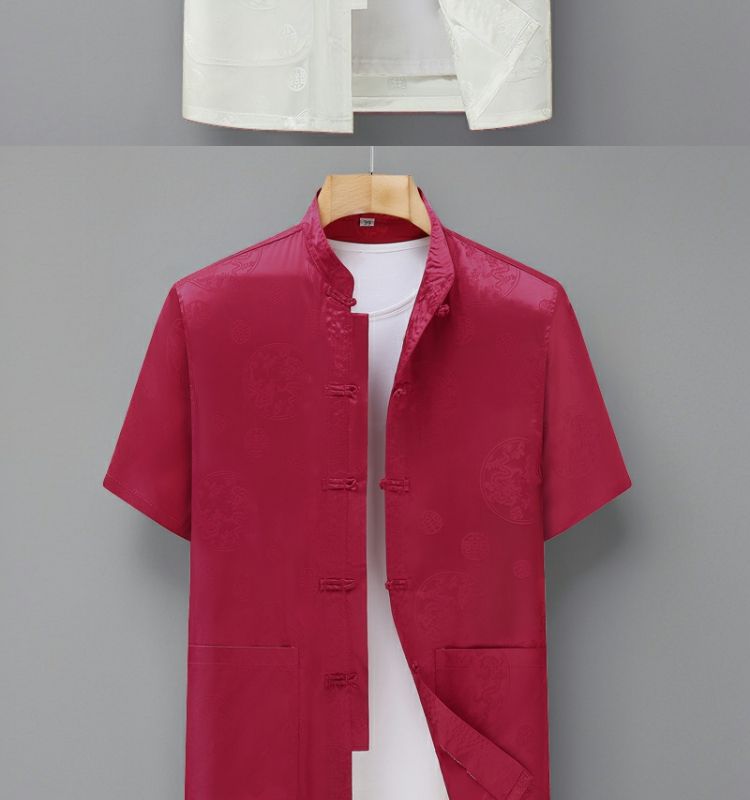 남자 여름 아이스 실크 중년 및 노인 아빠를위한 반팔 탑 얇은 셔츠 느슨한 국가 스타일 탕 스타일 할아버지 셔츠스토어 가기