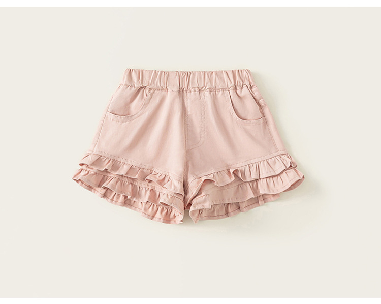 유바오 아동복 2025 어린이 여름 새 얇은 바지 소녀 솔리드 컬러 캐주얼 바지 어린이 레이스 반바지