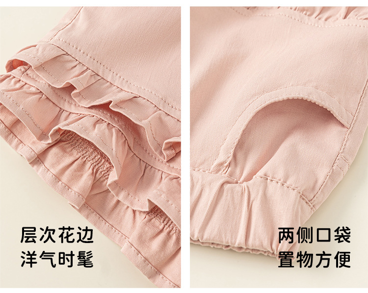 유바오 아동복 2025 어린이 여름 새 얇은 바지 소녀 솔리드 컬러 캐주얼 바지 어린이 레이스 반바지스토어 가기