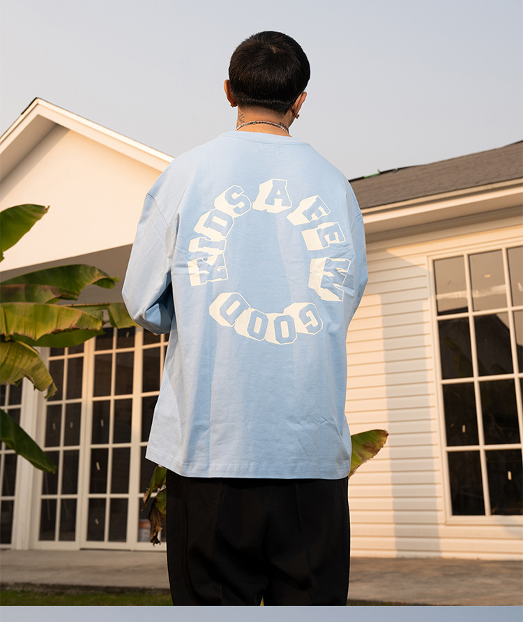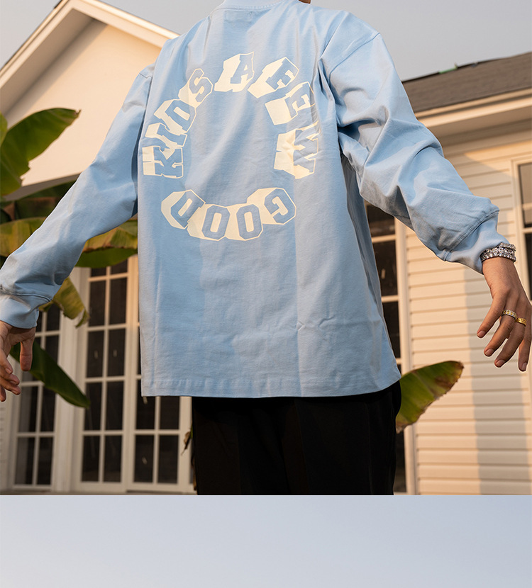 2022 새로운 커플 착용 남성 미국 느슨한 흰색 국가 트렌드 여름 편지 인쇄 270g 순수 코튼 긴팔 티셔츠스토어 가기