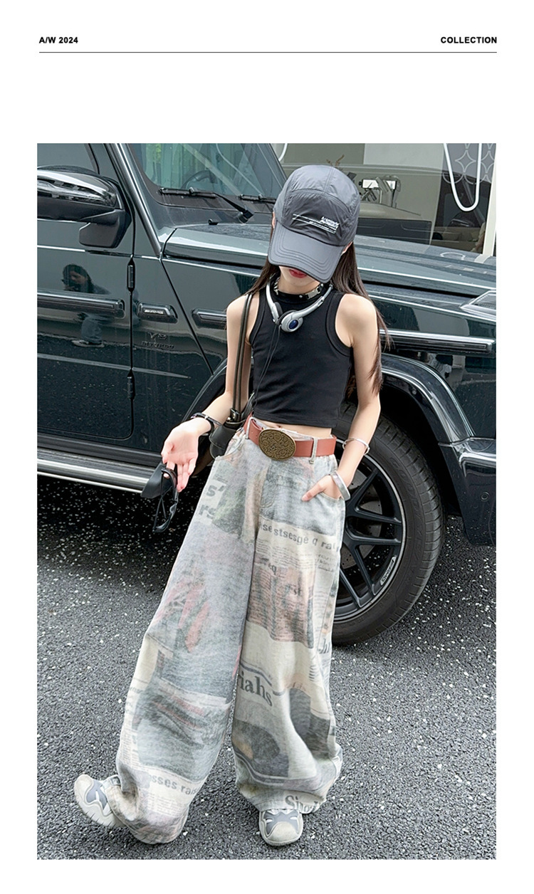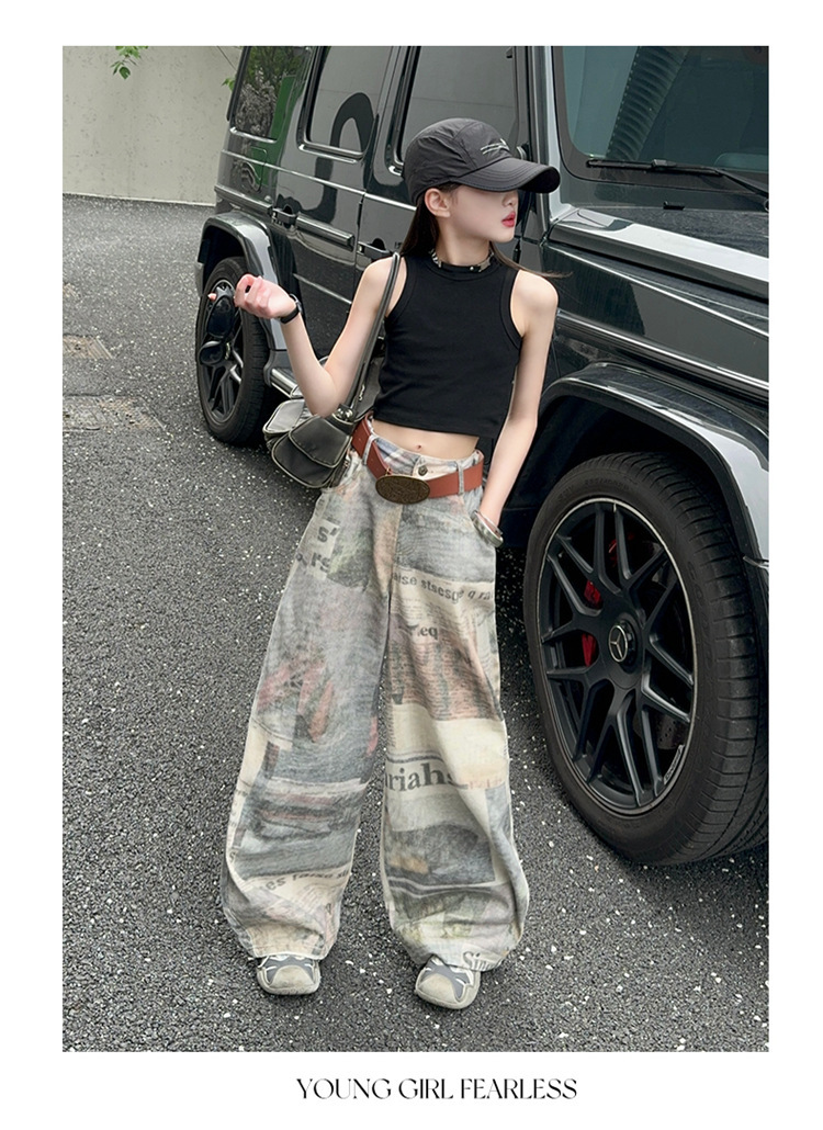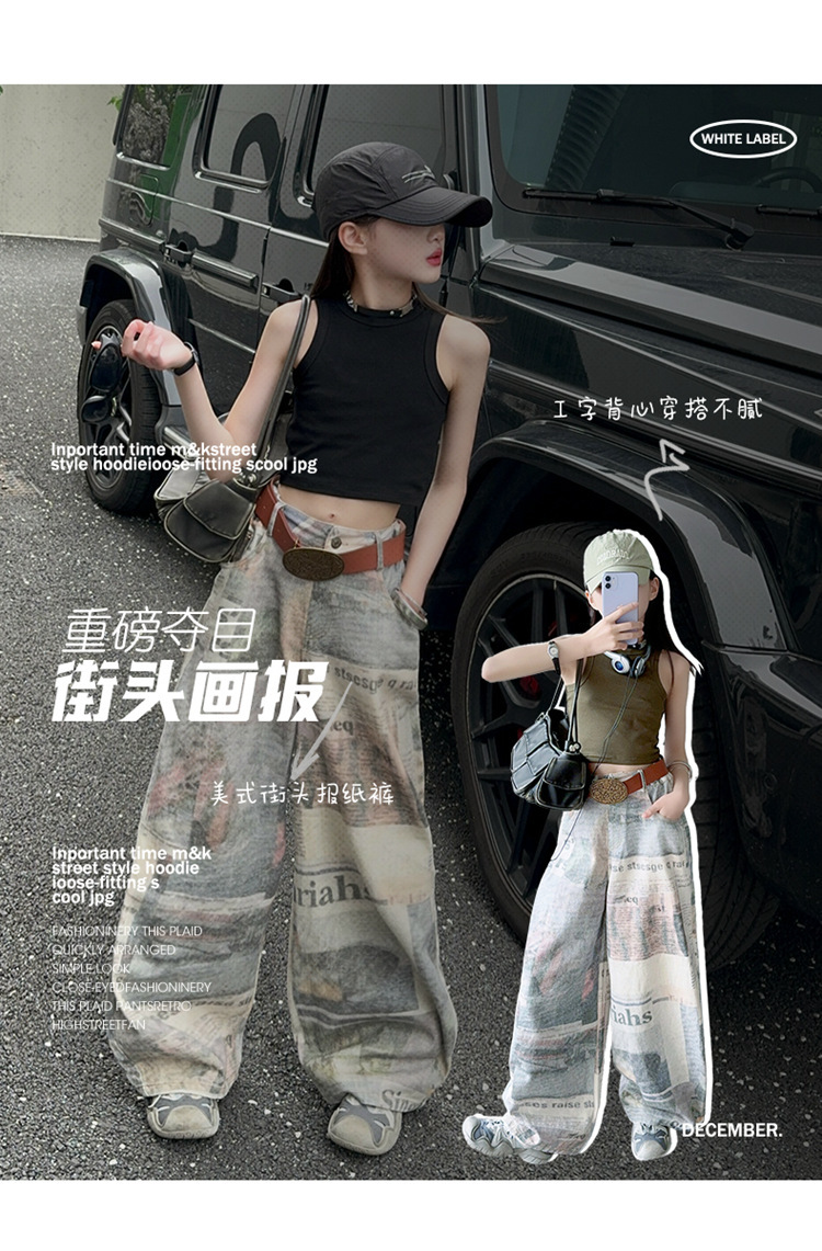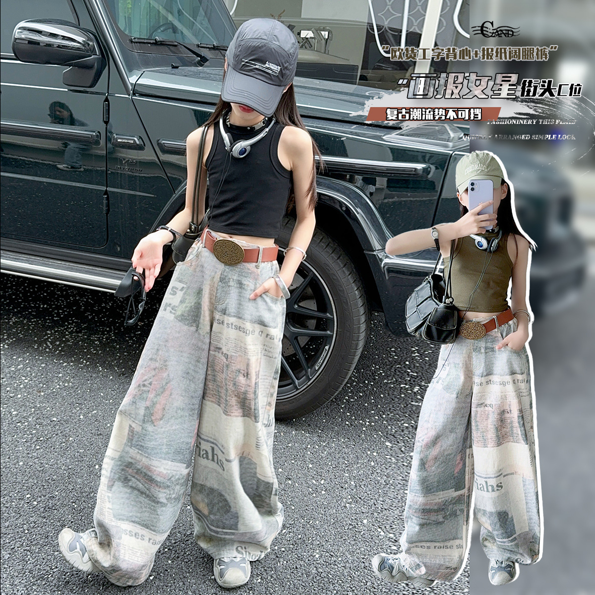 어린이 소녀 여름 세트 달콤한 쿨 핫 소녀 재즈 댄스 유행 2025 새로운 어린이 조끼 캐주얼 와이드 레그 바지스토어 가기