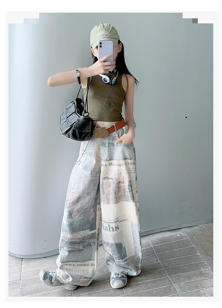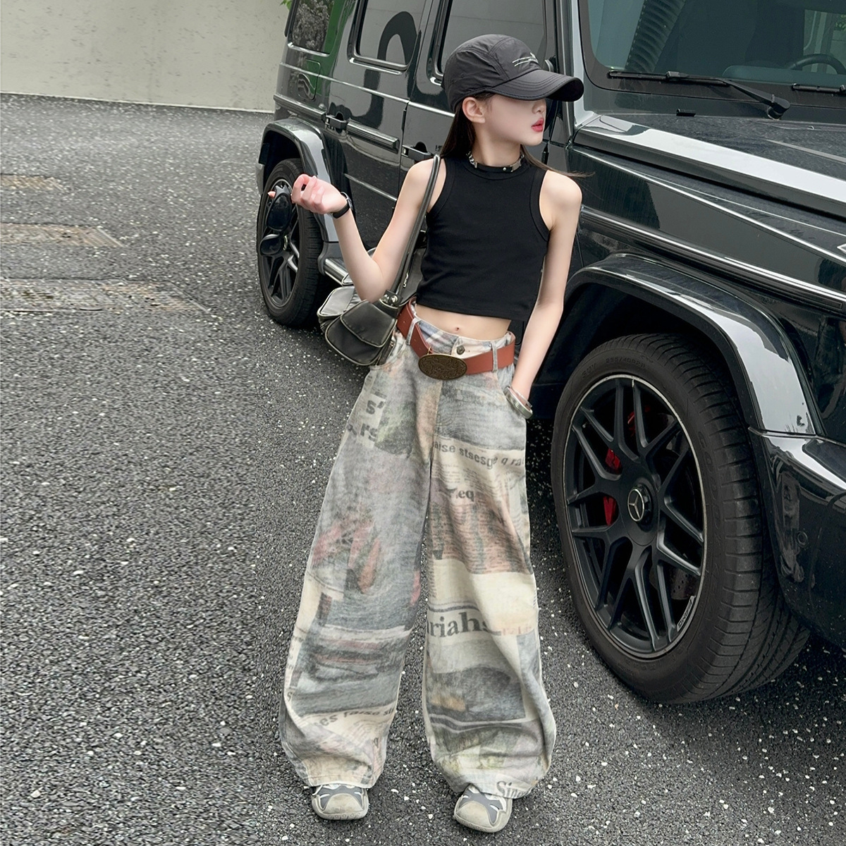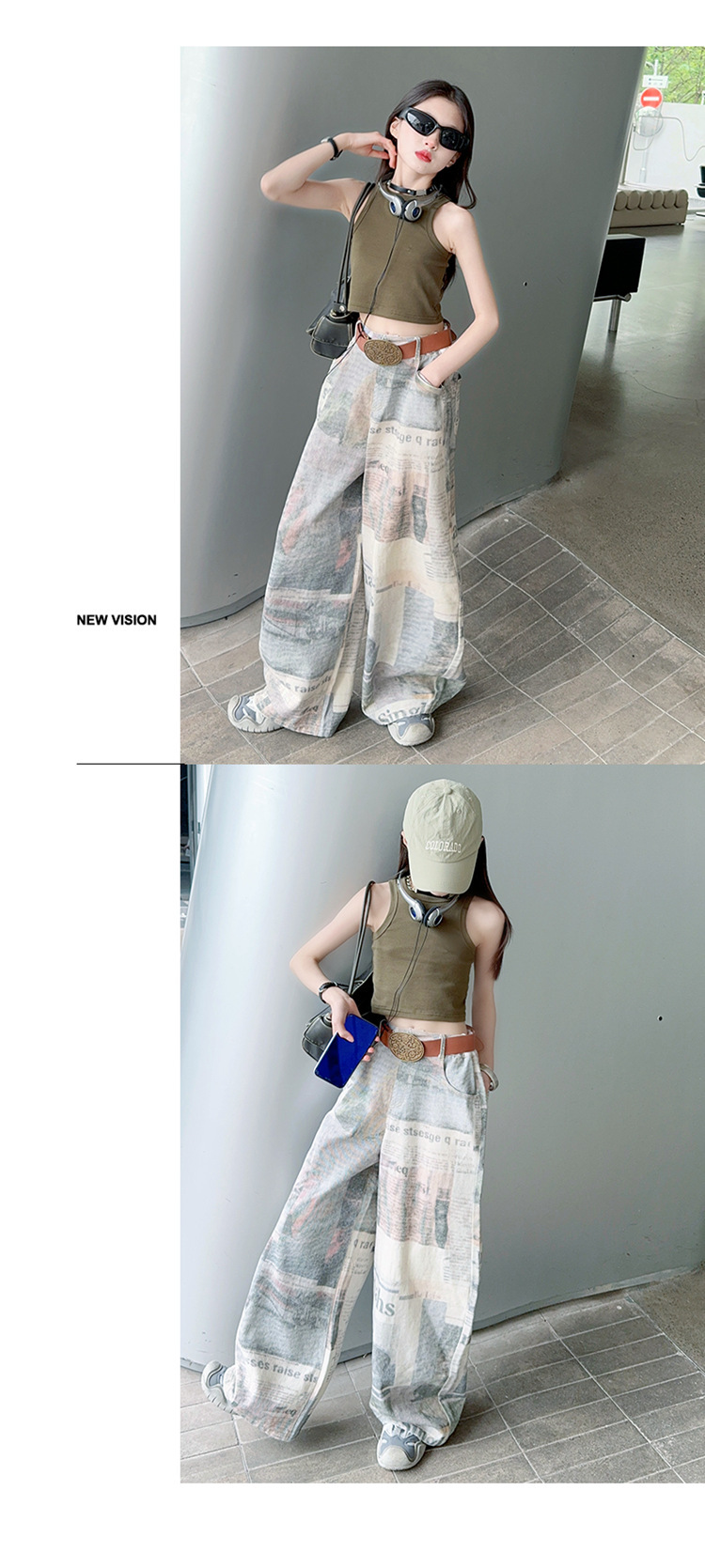 어린이 소녀 여름 세트 달콤한 쿨 핫 소녀 재즈 댄스 유행 2025 새로운 어린이 조끼 캐주얼 와이드 레그 바지스토어 가기