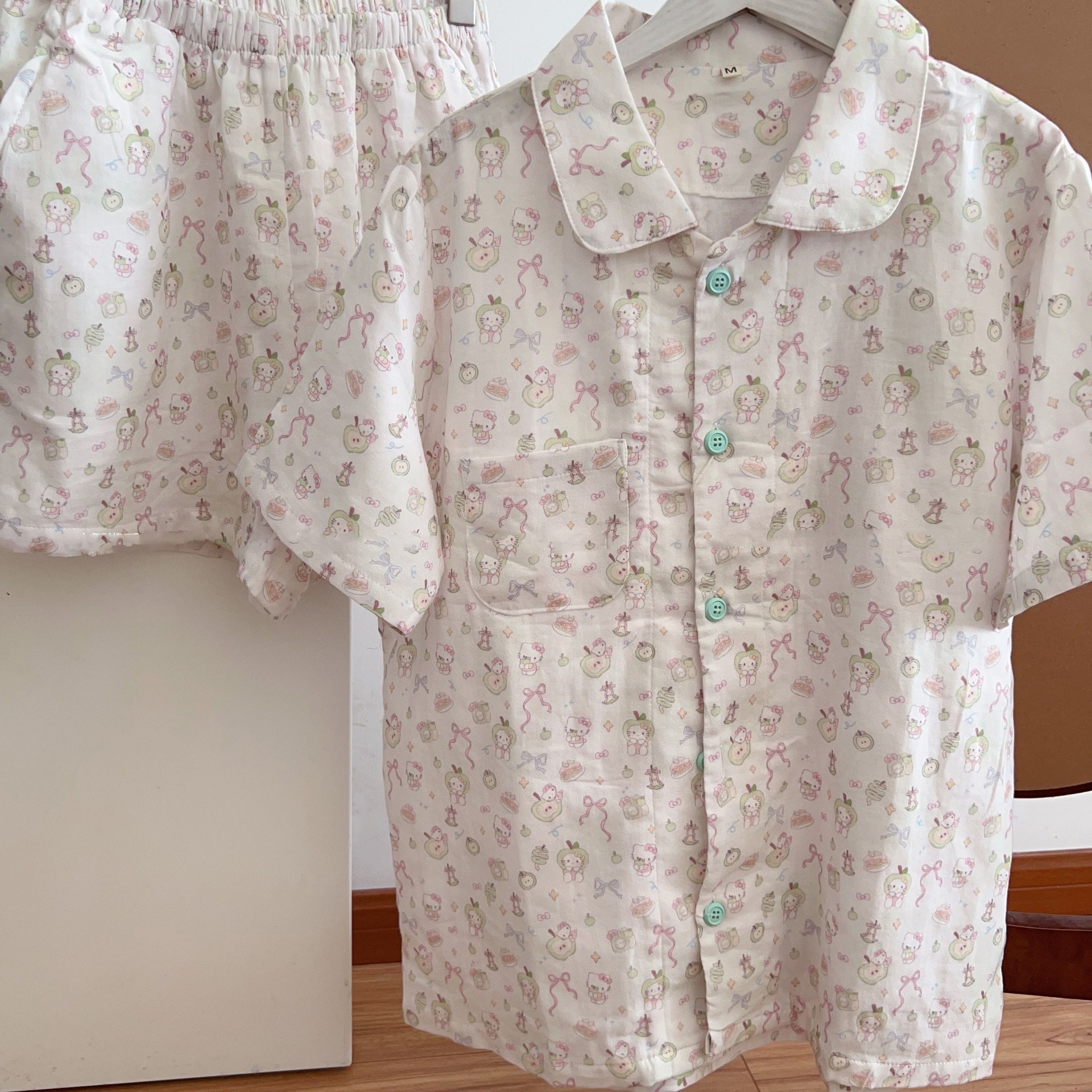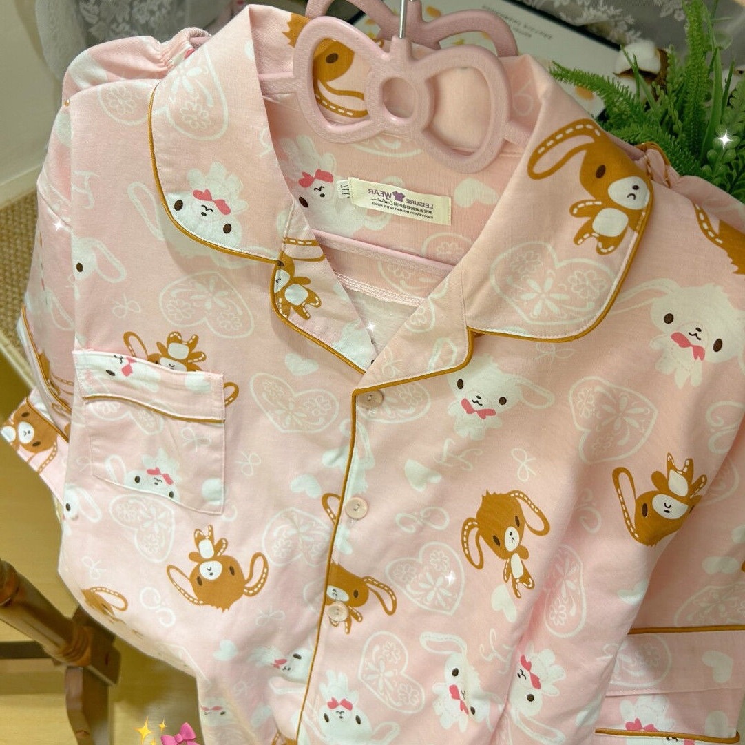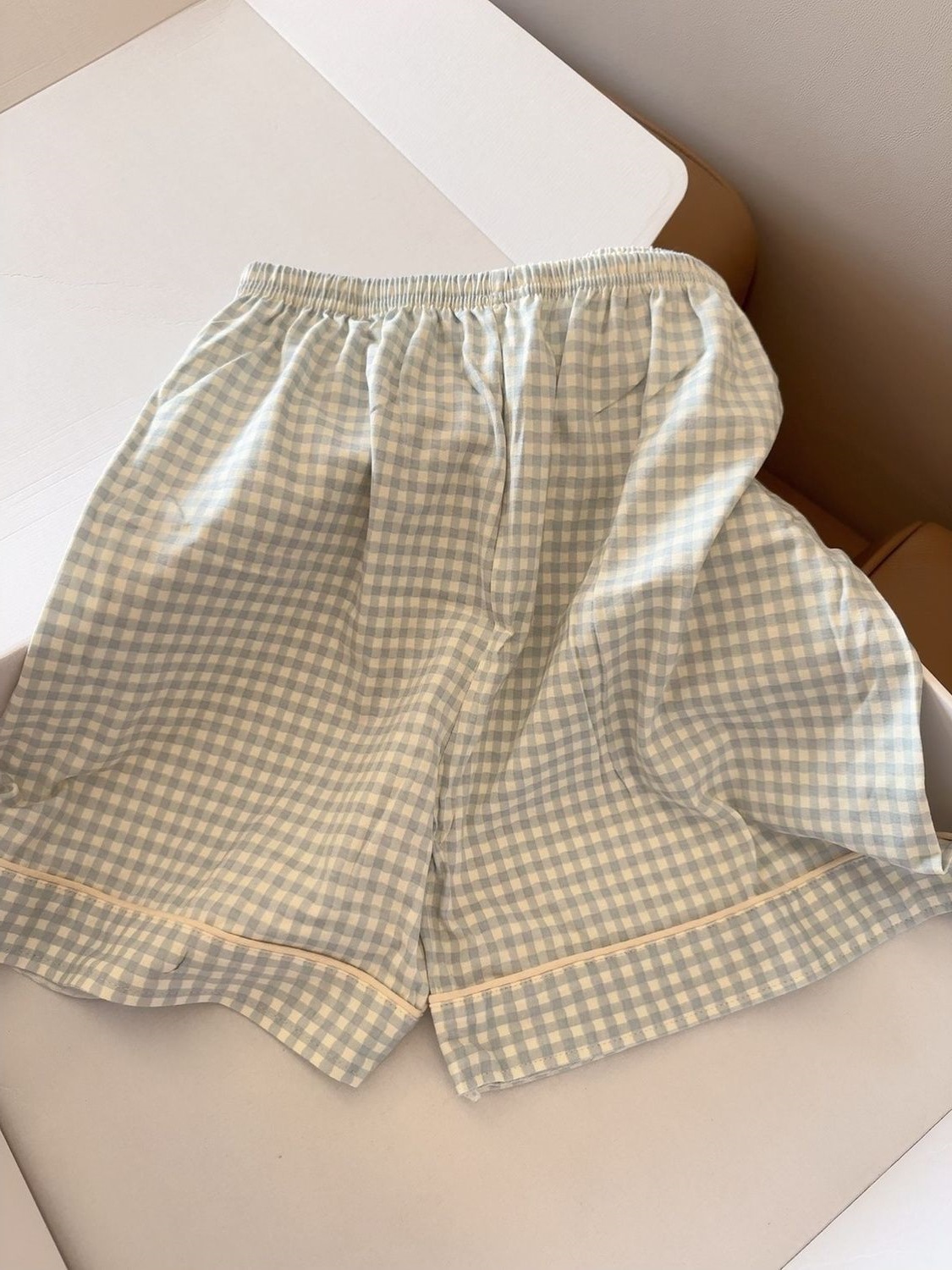 크레용 신 파자마 여성 여름 새 도착 격자 무늬 반소매 Ins 일본식 만화 학생 홈 의류 세트 외복