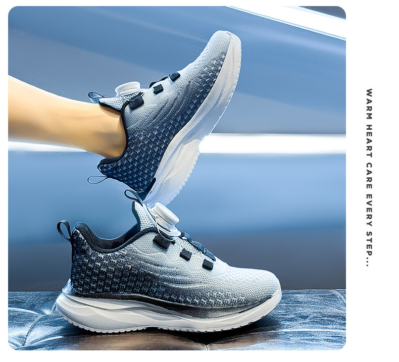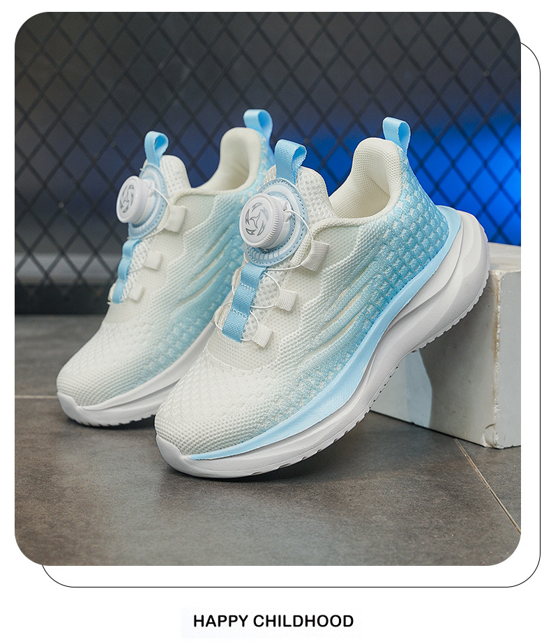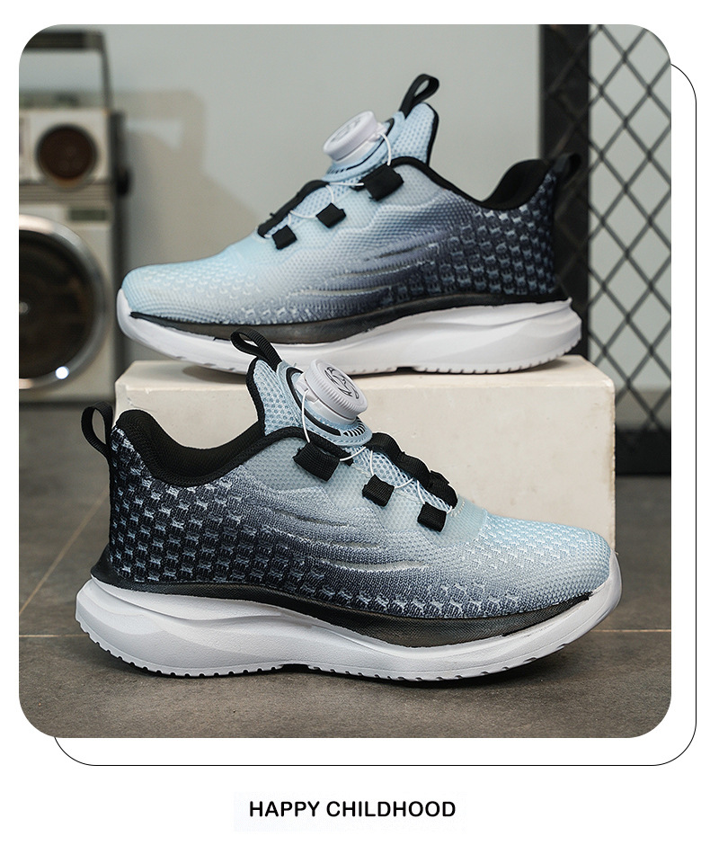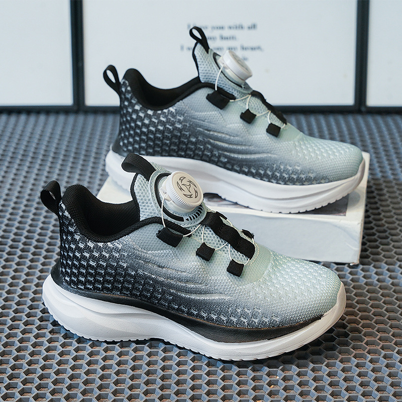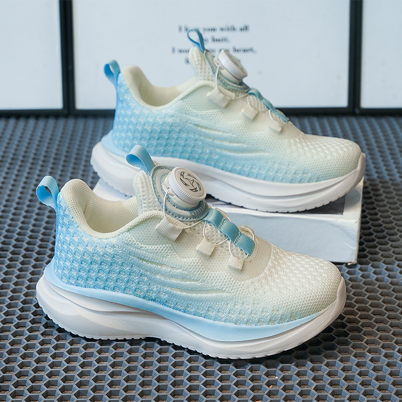 어린이 아빠 신발 2025 여름 새로운 회전 버튼 어린이 메쉬 플라이 니트 코코넛 큰 어린이 캐주얼 스포츠 신발