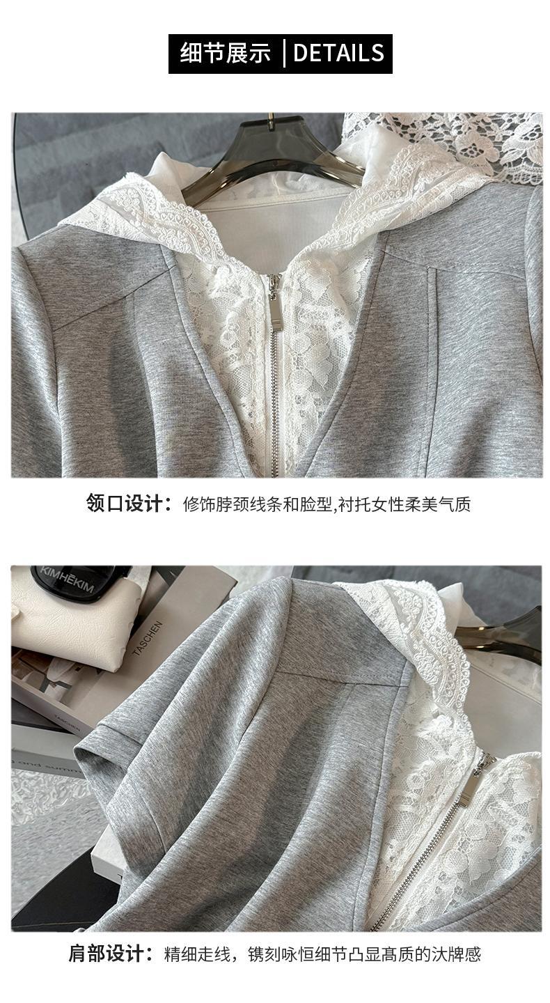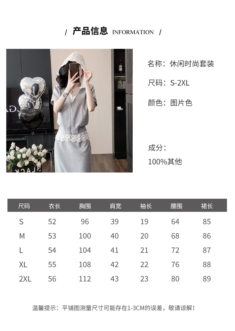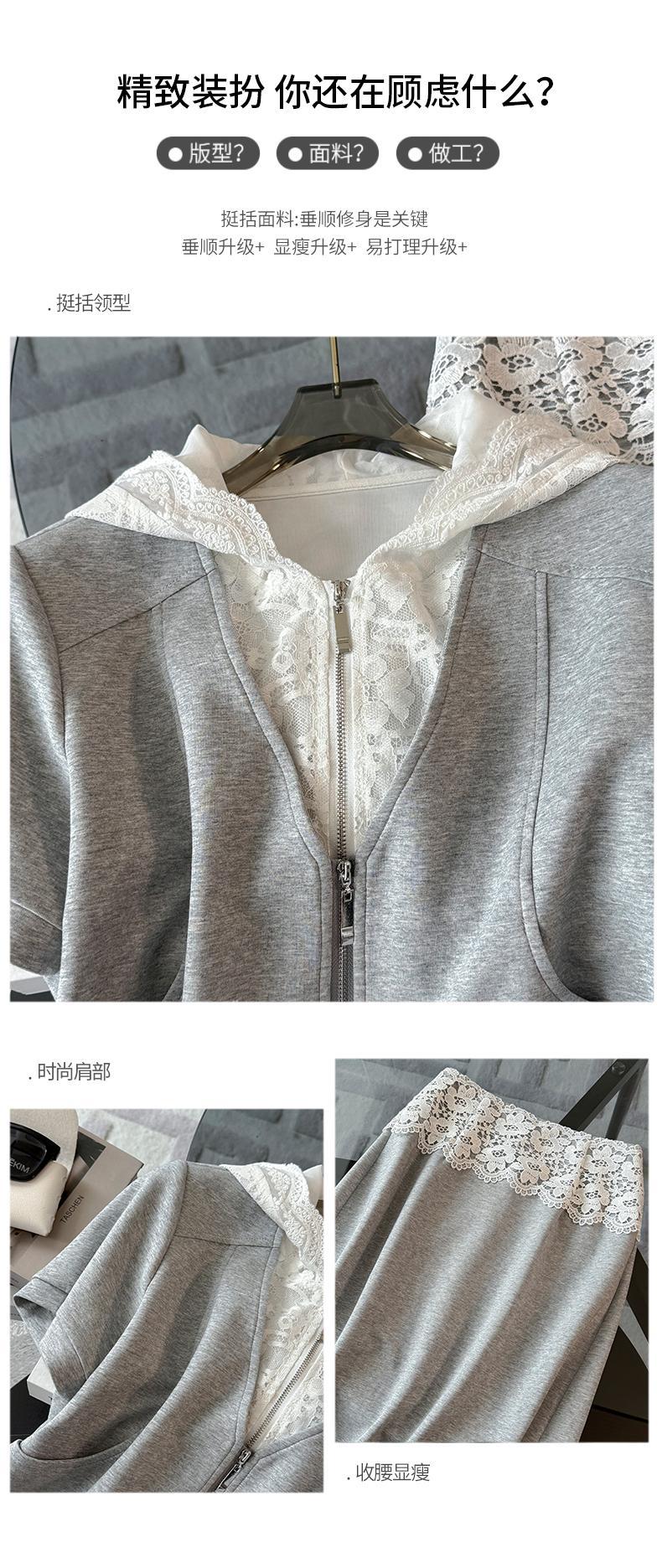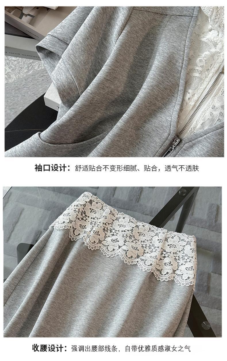 심천 난유 레저 스포츠 원피스 여성 여름 인기 스티칭 레이스 그레이 반팔 카디건 스커트 투피스 세트스토어 가기