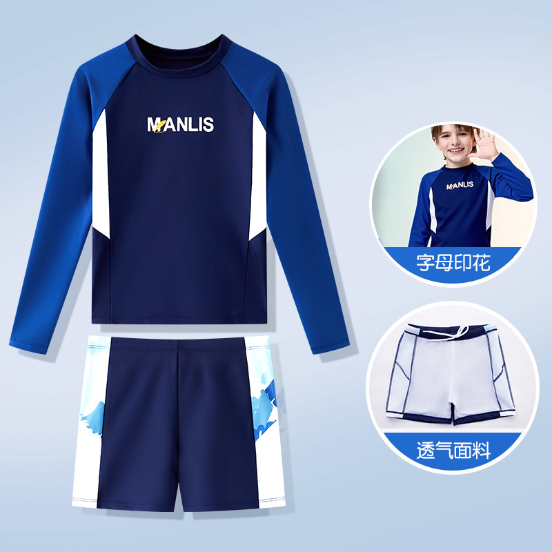 다이빙 세트 새 소년 수영복 티셔츠 빠른 건조 서핑 세트 분할 긴 소매 선 스크린 반바지 학생 훈련 세트