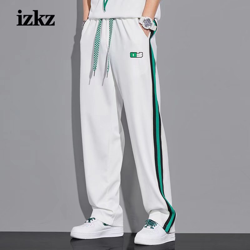가을 겨울 남성 신상 바지 두 줄무늬 학생 흰색과 녹색 줄무늬 중고등학교 네이비 블루 캐주얼 스포츠 학교 바지스토어 가기