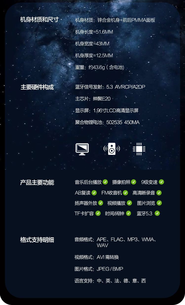 • 쿨 블랙 전용 모델, 사진 촬영 가능 + IPS 스크린 + 블루투스 + 외부 재생 가능