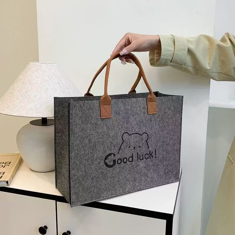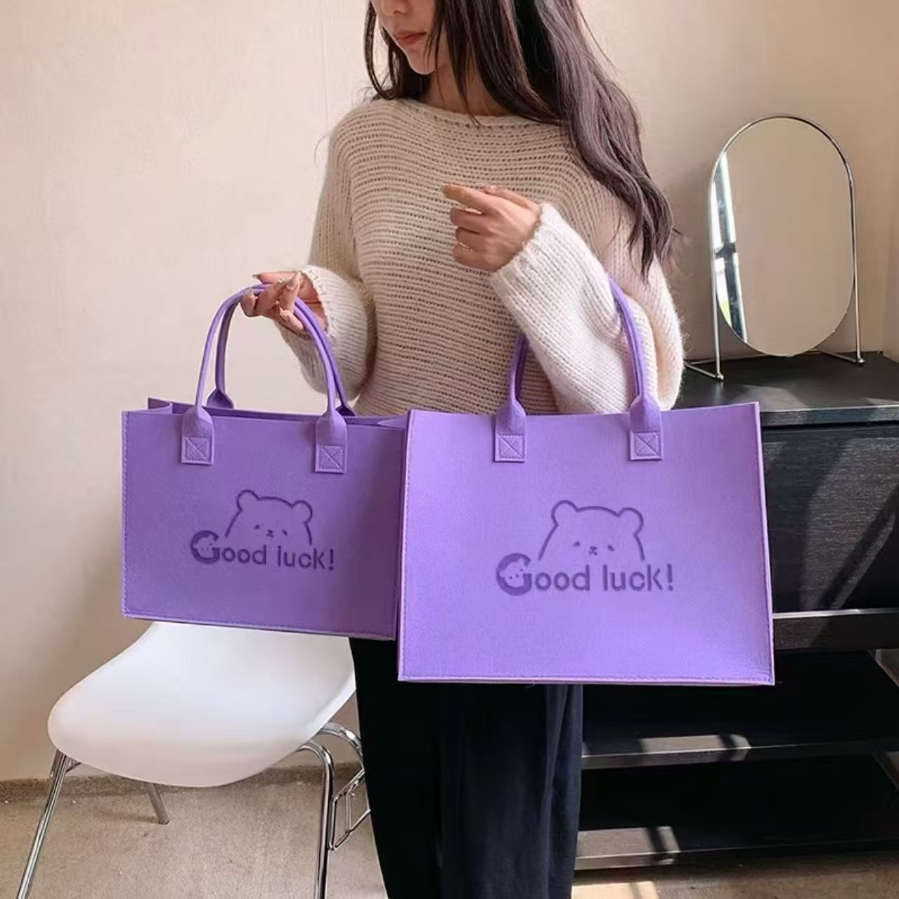 새로운 펠트 토트 백 인쇄 가능한 로고 대용량 통근 쇼핑백 보관 휴대용 콘트라스트 컬러 펠트 토트 백스토어 가기