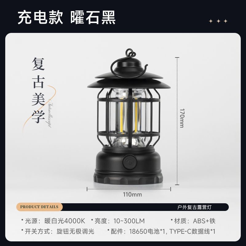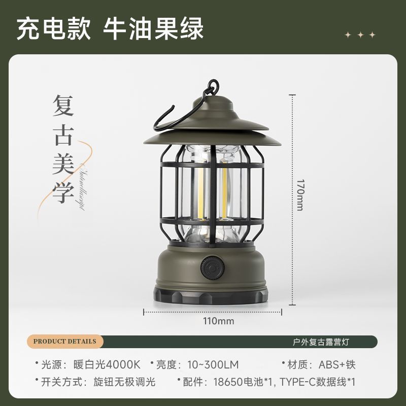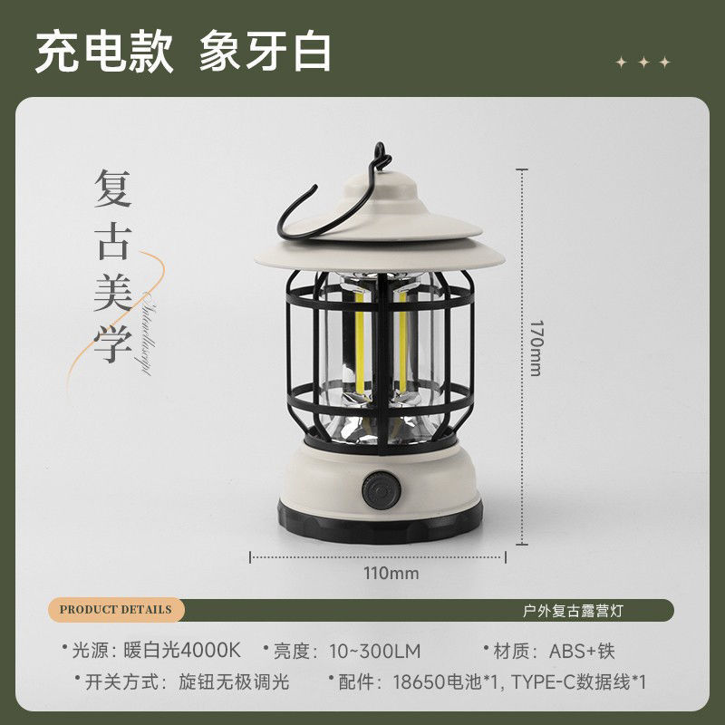 빈티지 캠핑 조명 랜턴 텐트 캠핑 캠프 야외 충전 분위기 필드 조명 긴 배터리 수명스토어 가기