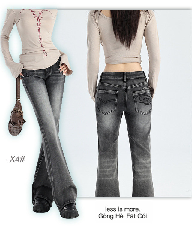 아메리칸 레트로 니치 포켓 워싱 주름 슬림핏 스트레치 마이크로 부츠컷 팬츠 여성 로우 웨이스트 슬리밍 다용도 청바지 트렌디스토어 가기