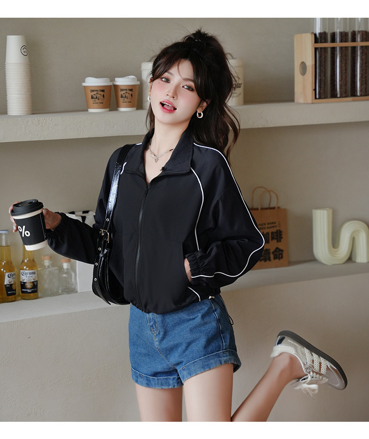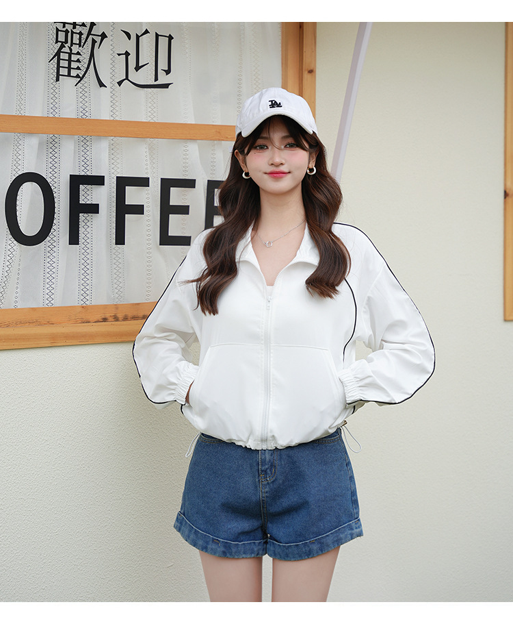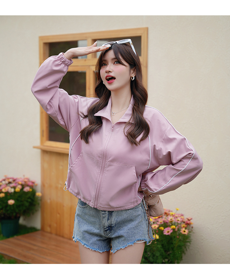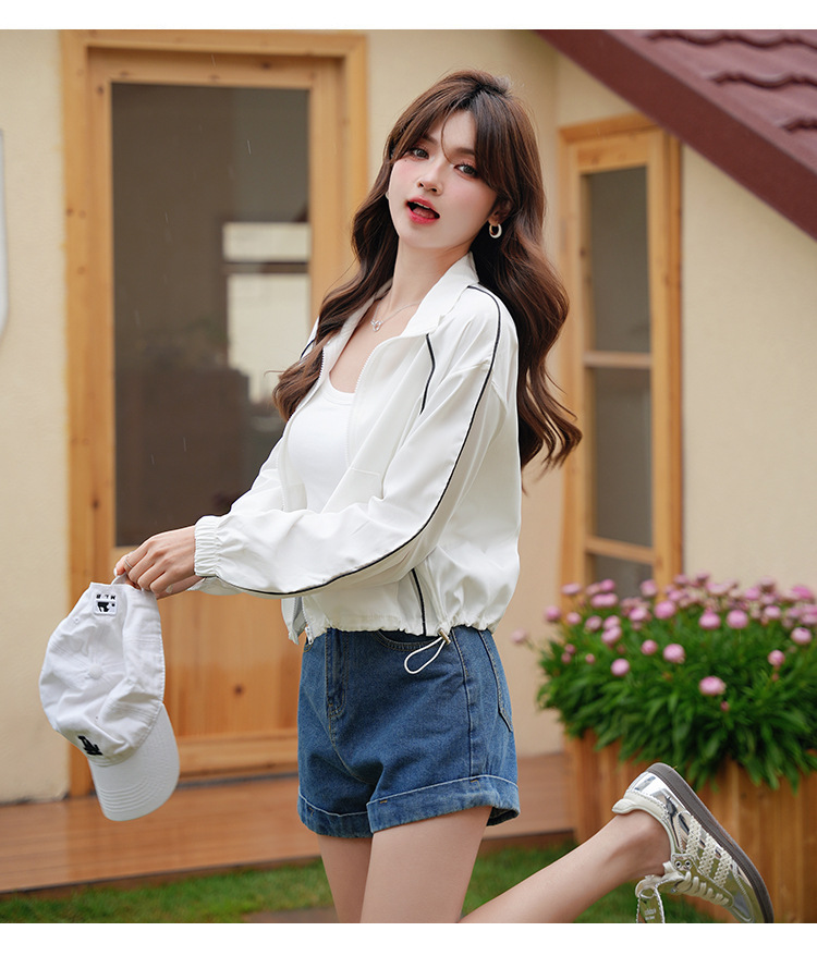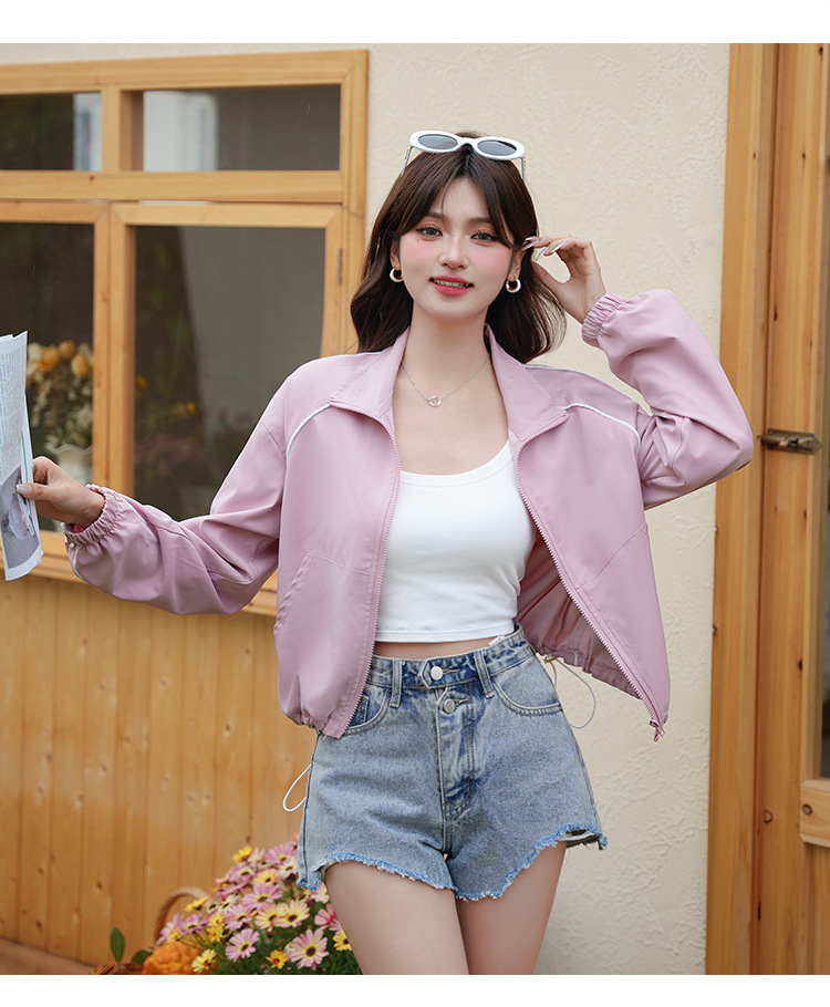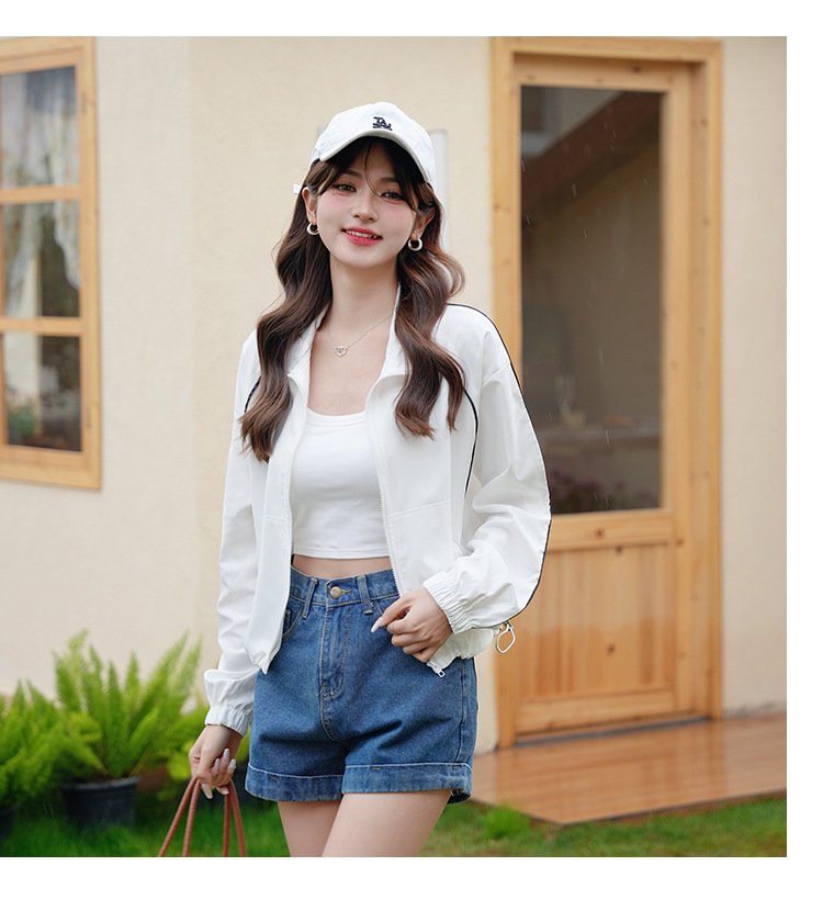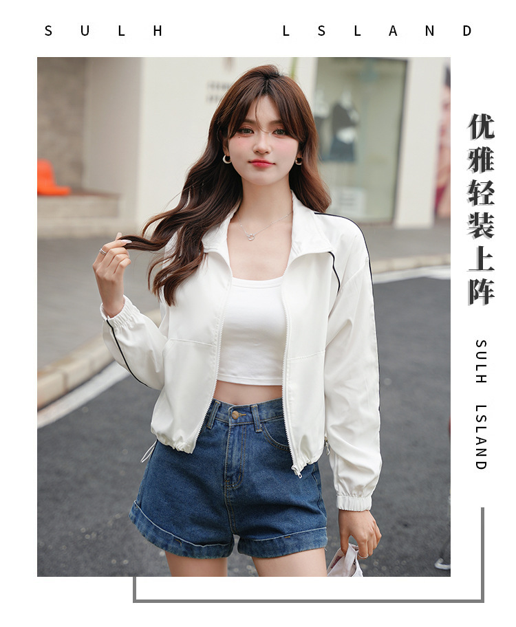 여름 일본과 한국의 새로운 패션 캐주얼 다재다능한 작은 짧은 재킷 여성용 접합 자외선 차단 의류 에어컨 셔츠스토어 가기