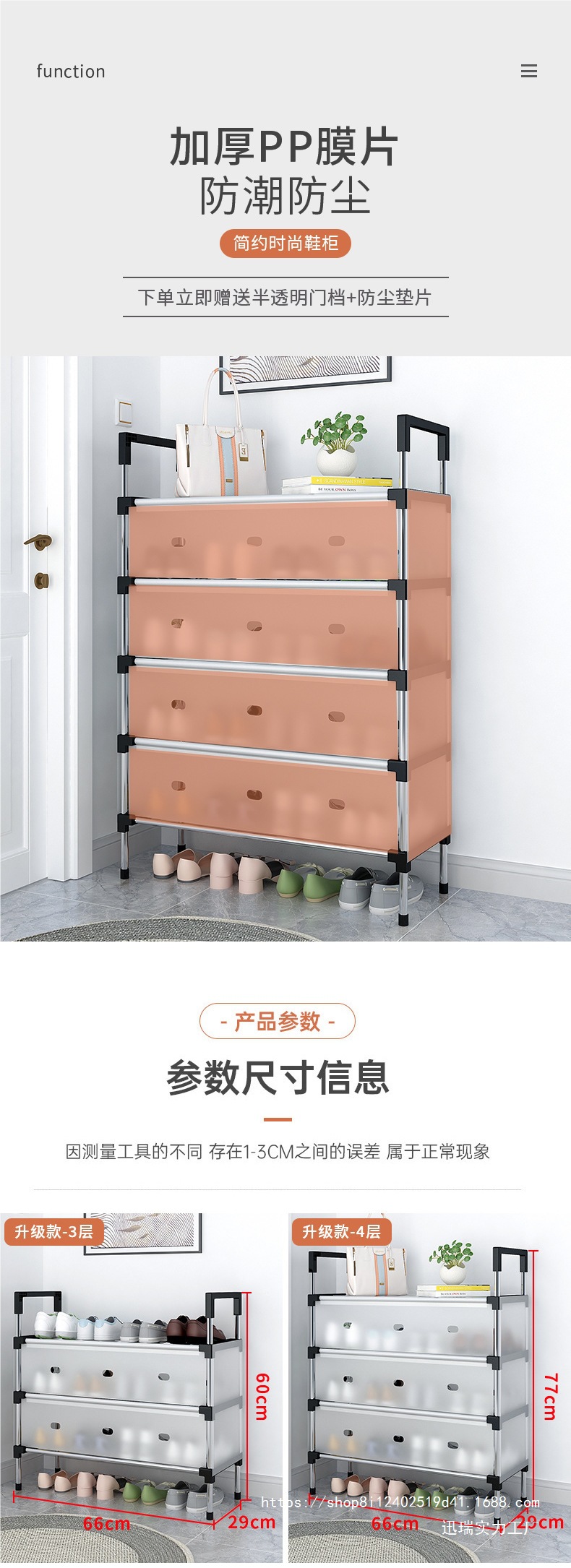 뚜껑이있는 방진 신발 랙 간단한 다층 가정용 강력하고 내구성이 뛰어난 대용량 임대 주택 기숙사 보관 신발 캐비닛스토어 가기