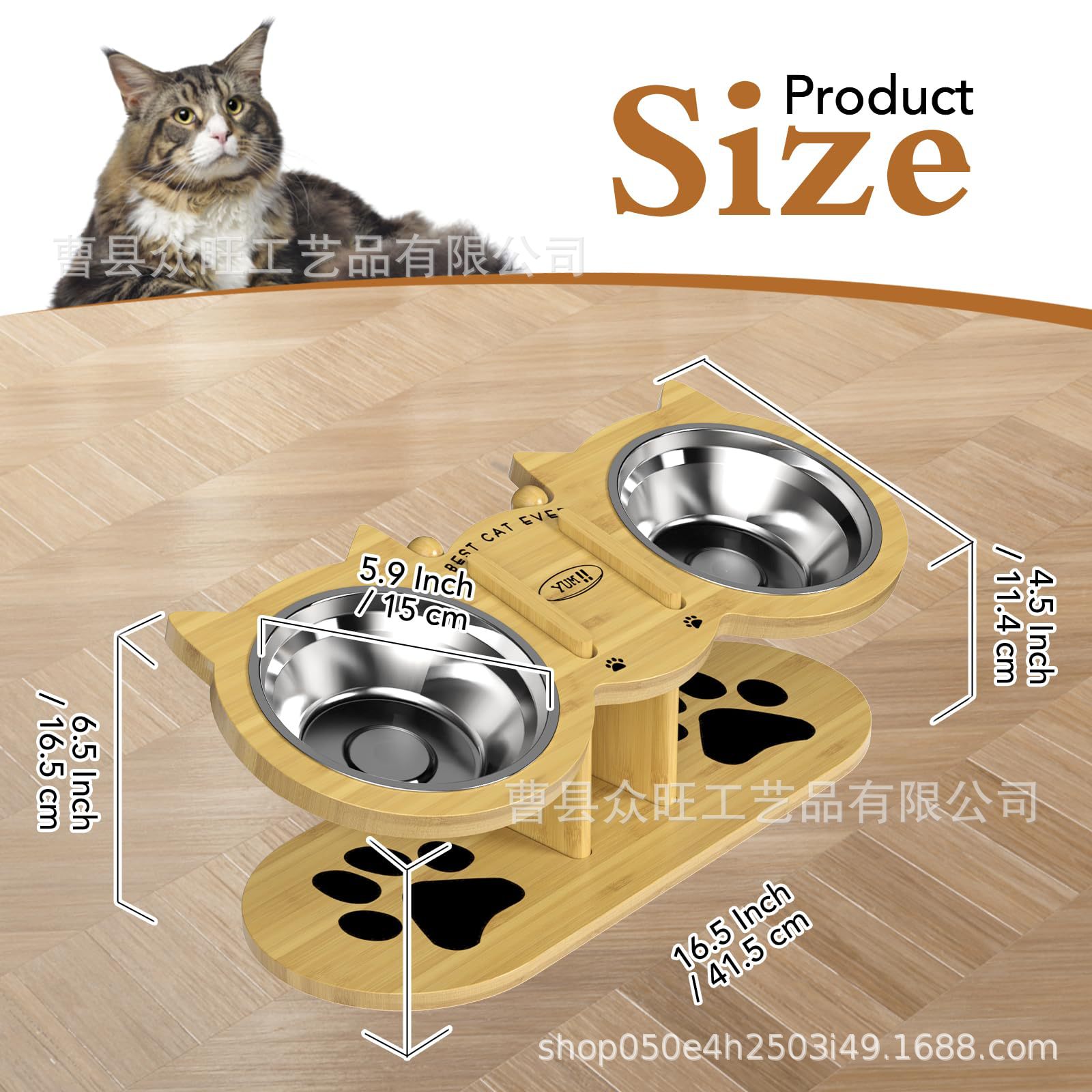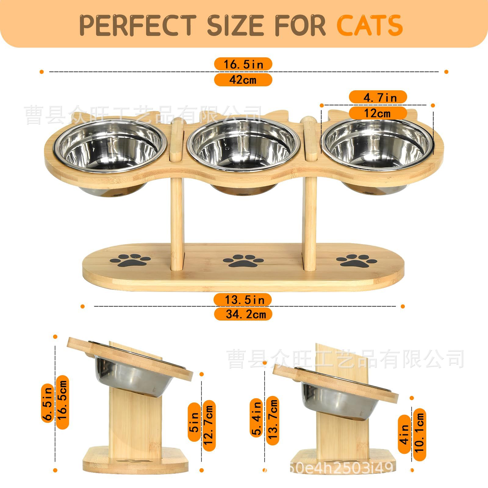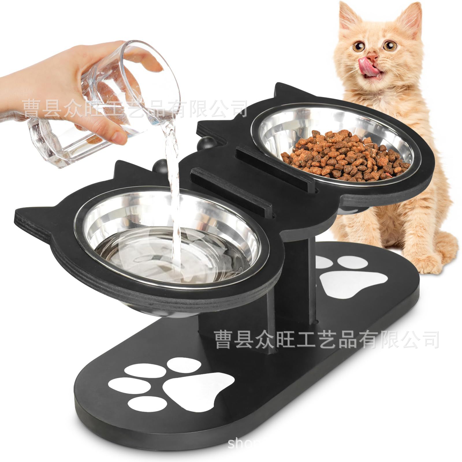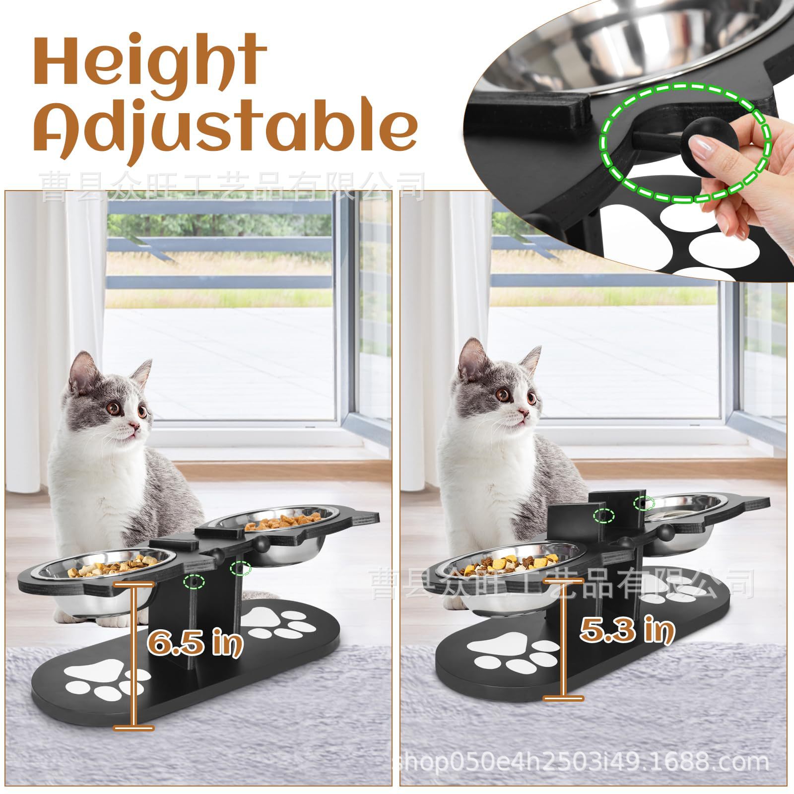 나무 수직 애완 동물 피더, 단단한 나무 고양이 그릇 랙, 목 보호대, 넘어짐 방지, 조절 가능한 고양이 및 개 용품, 애완 동물 먹이 그릇