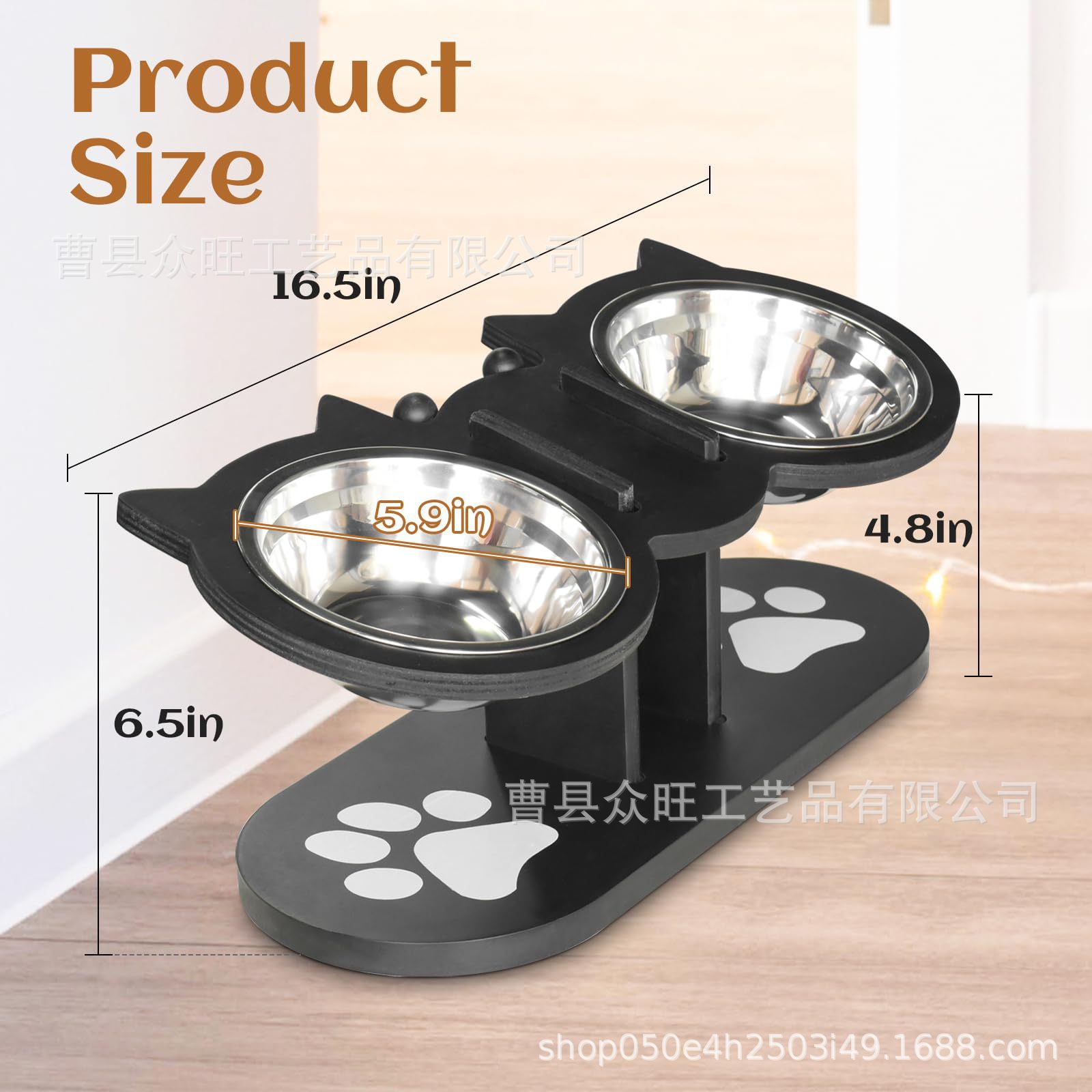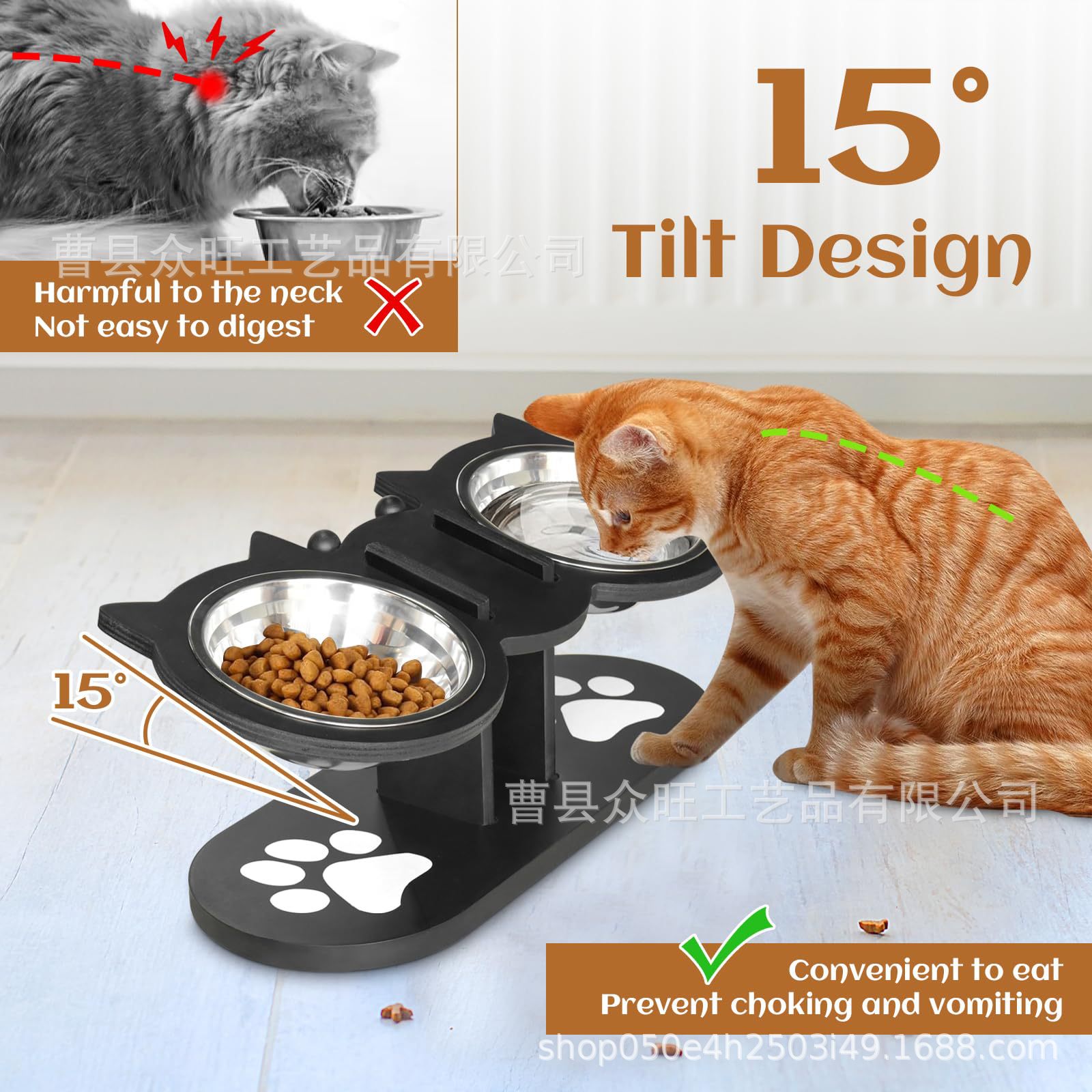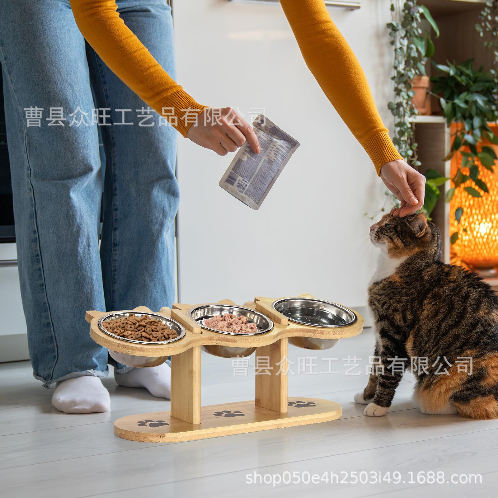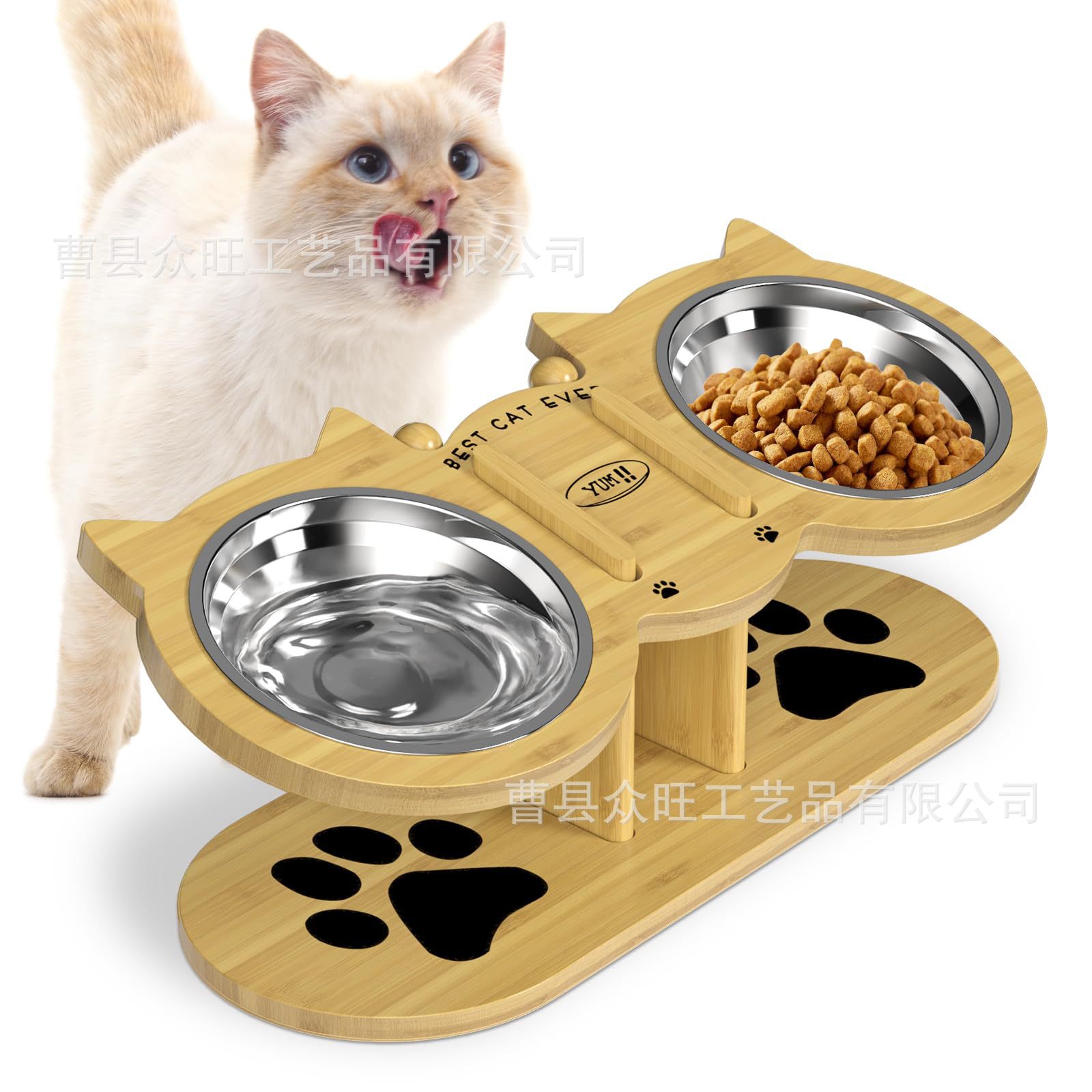 나무 수직 애완 동물 피더, 단단한 나무 고양이 그릇 랙, 목 보호대, 넘어짐 방지, 조절 가능한 고양이 및 개 용품, 애완 동물 먹이 그릇