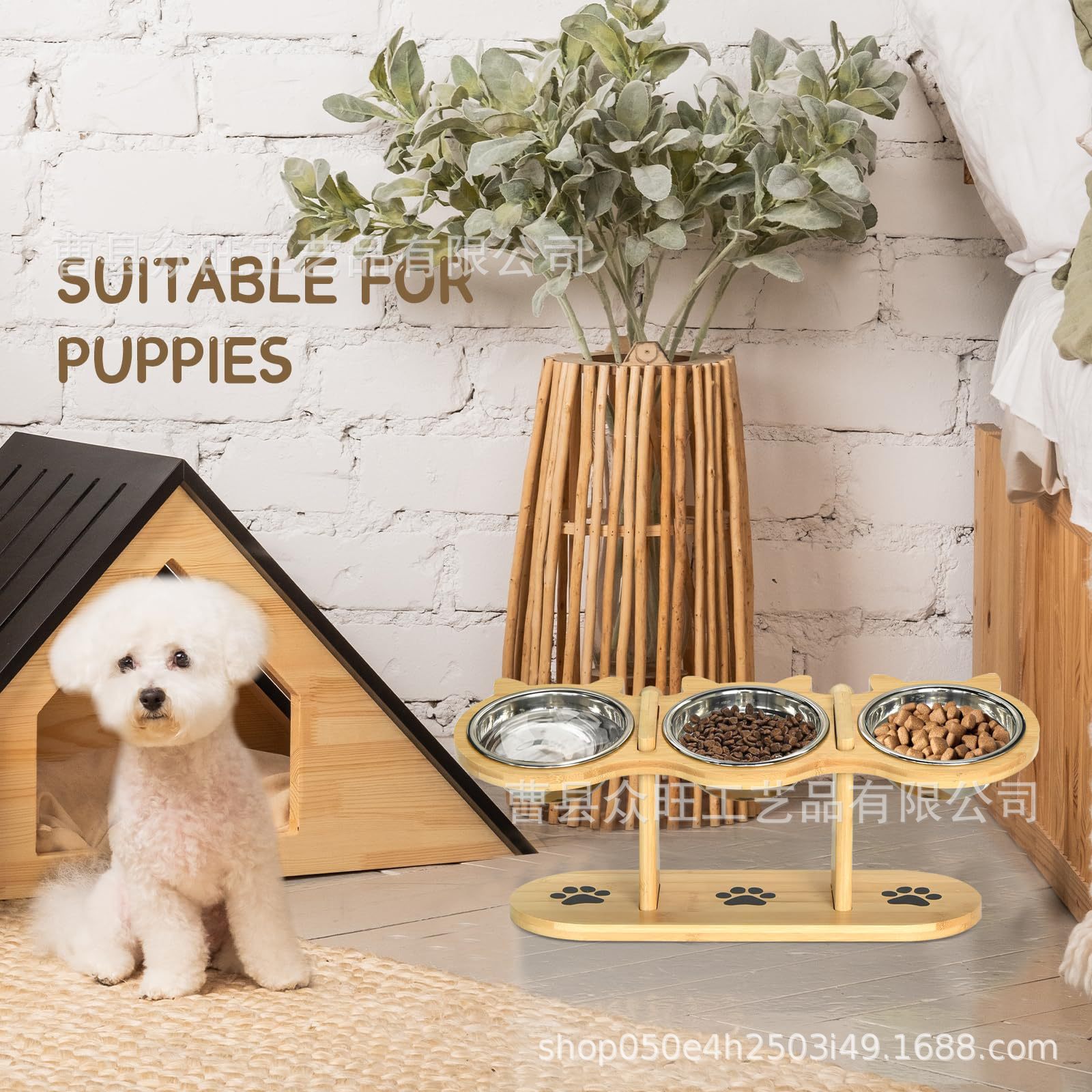 나무 수직 애완 동물 피더, 단단한 나무 고양이 그릇 랙, 목 보호대, 넘어짐 방지, 조절 가능한 고양이 및 개 용품, 애완 동물 먹이 그릇스토어 가기