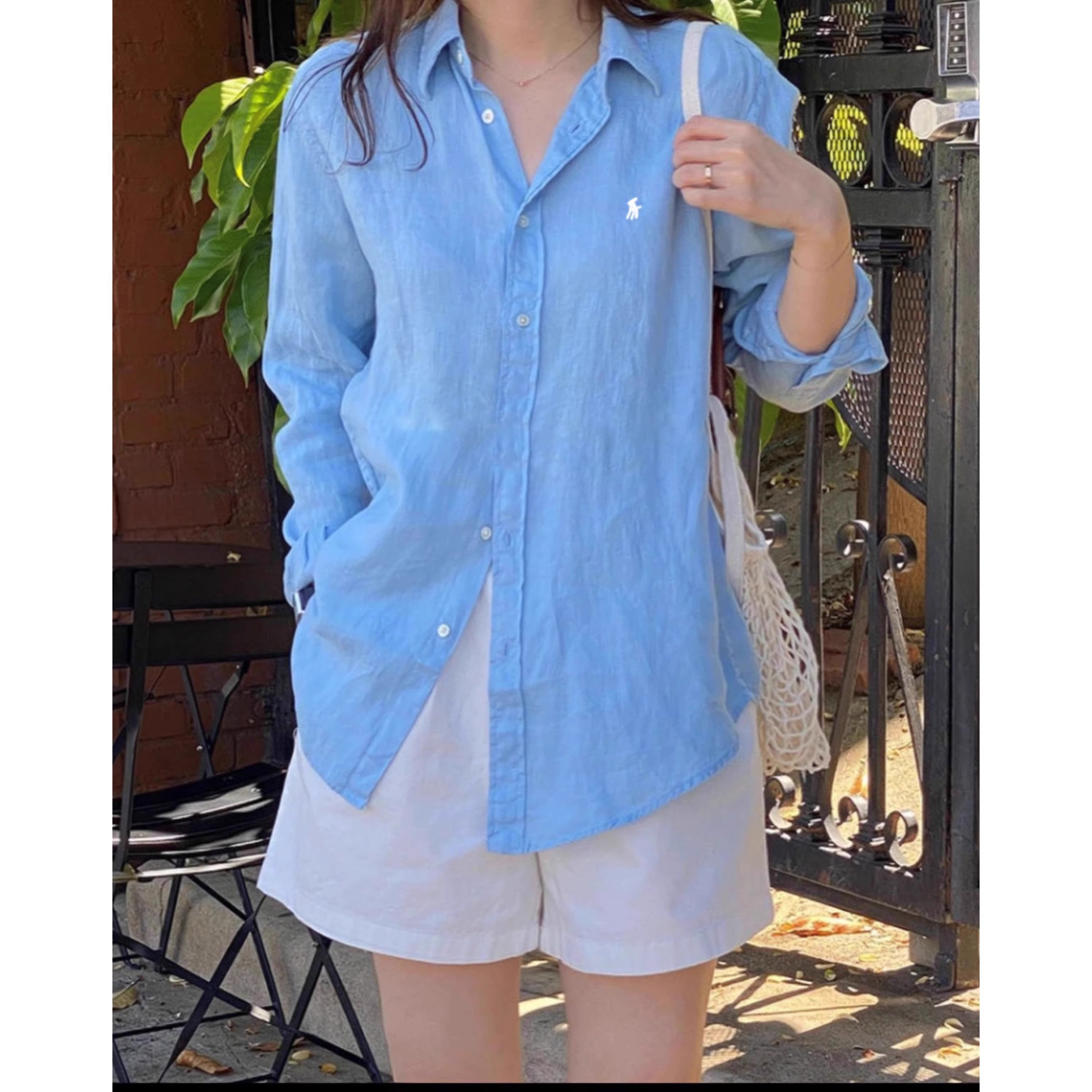 프렌치 리넨 셔츠 여성 디자인 센스 니쉬 게으른 우아한 셔츠 선스크린 카디건 코튼 리넨 캐주얼 세련된 탑스토어 가기