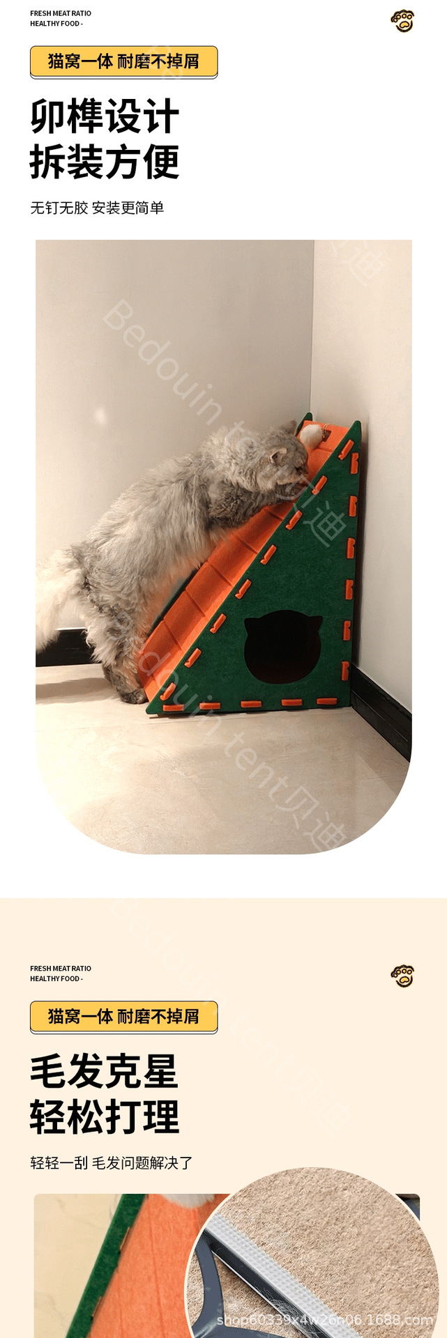 삼각형 수직 고양이 스크래치 보드 내마모성 부스러기없는 펠트 고양이 둥지 통합 고양이 발톱 연삭 유물 고양이 발톱 보드 등반 패드