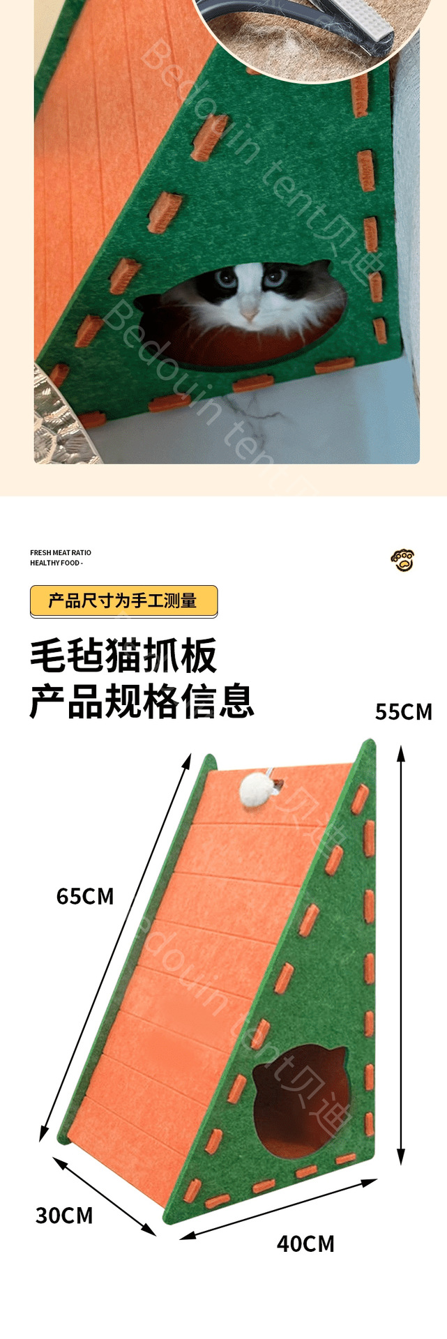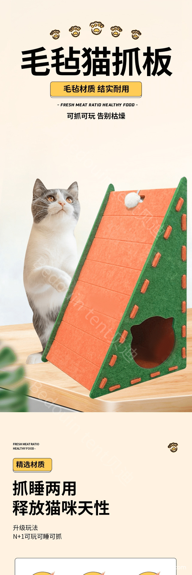 삼각형 수직 고양이 스크래치 보드 내마모성 부스러기없는 펠트 고양이 둥지 통합 고양이 발톱 연삭 유물 고양이 발톱 보드 등반 패드스토어 가기