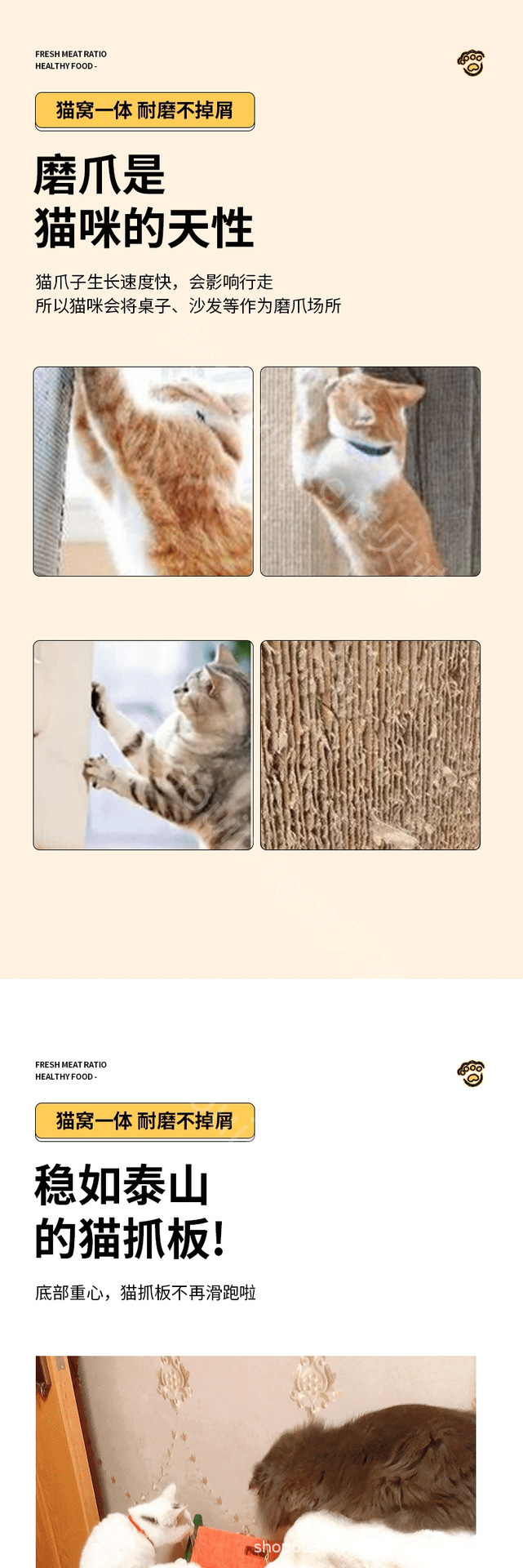 • 삼각형 고양이 긁는 포스트 고양이 둥지