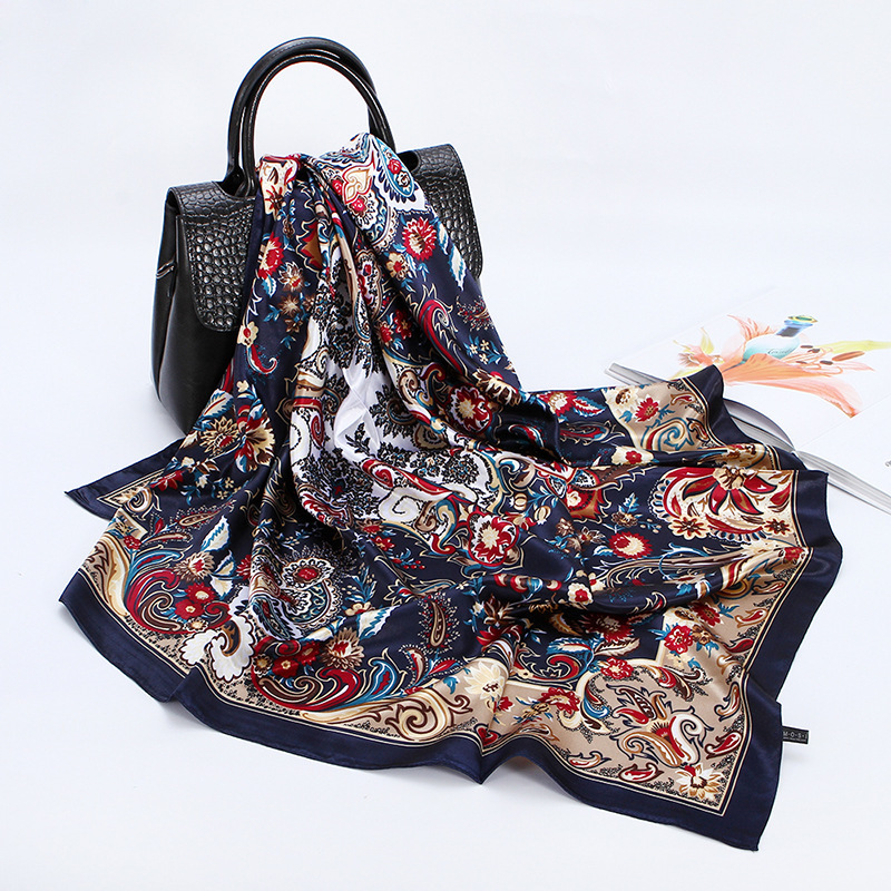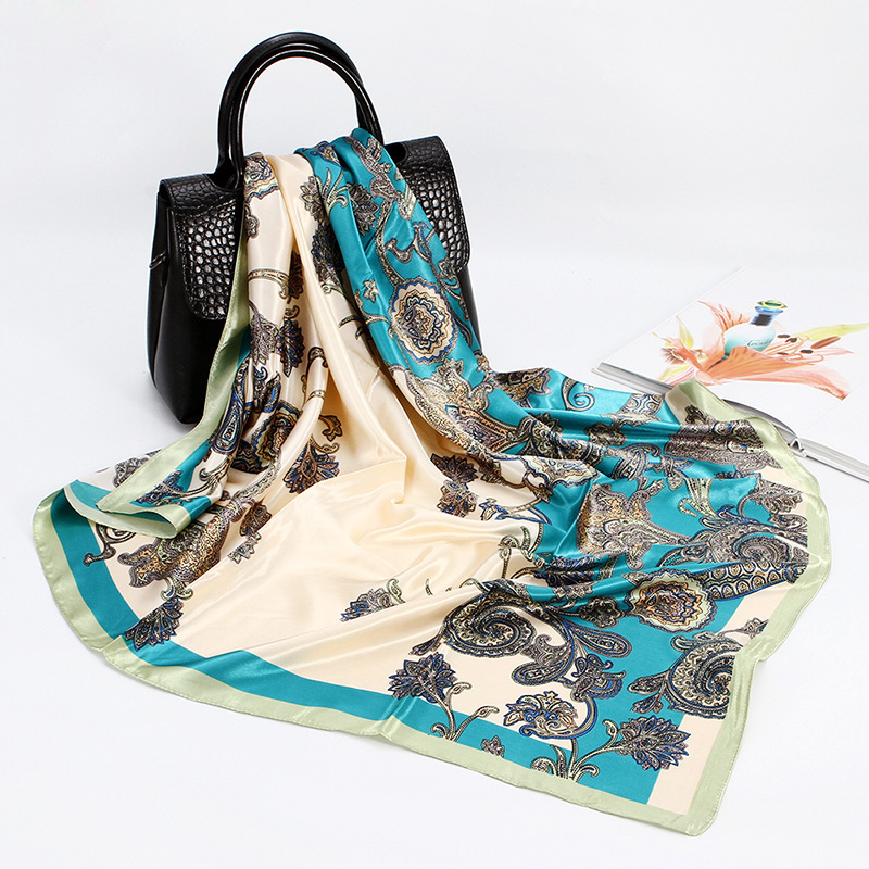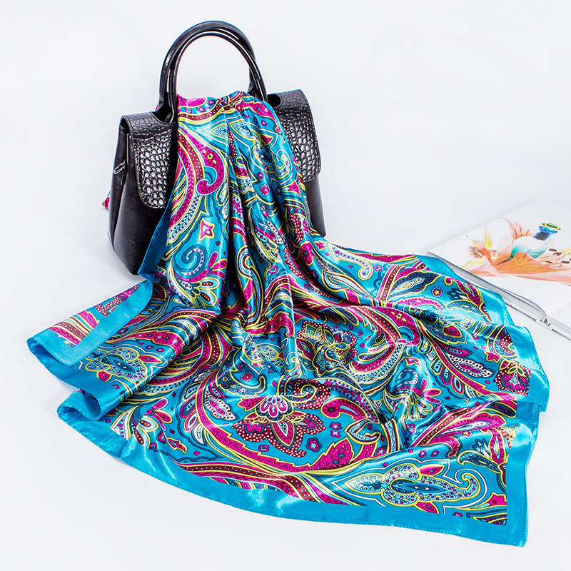 국경 간 페이즐리 캐슈 인쇄 스카프 여성용 스카프 모방 실크 염색 90cm 대형 광장 유럽과 미국 헤드 스카프 도매스토어 가기