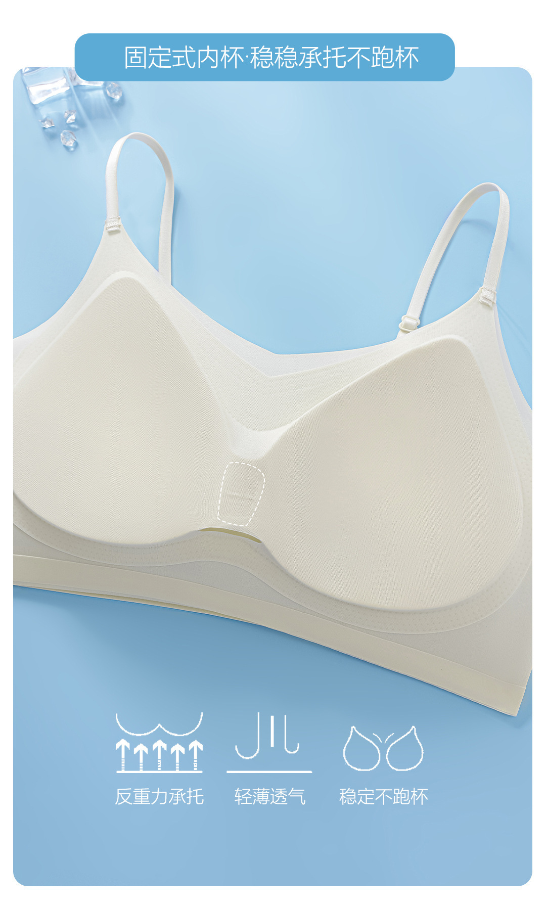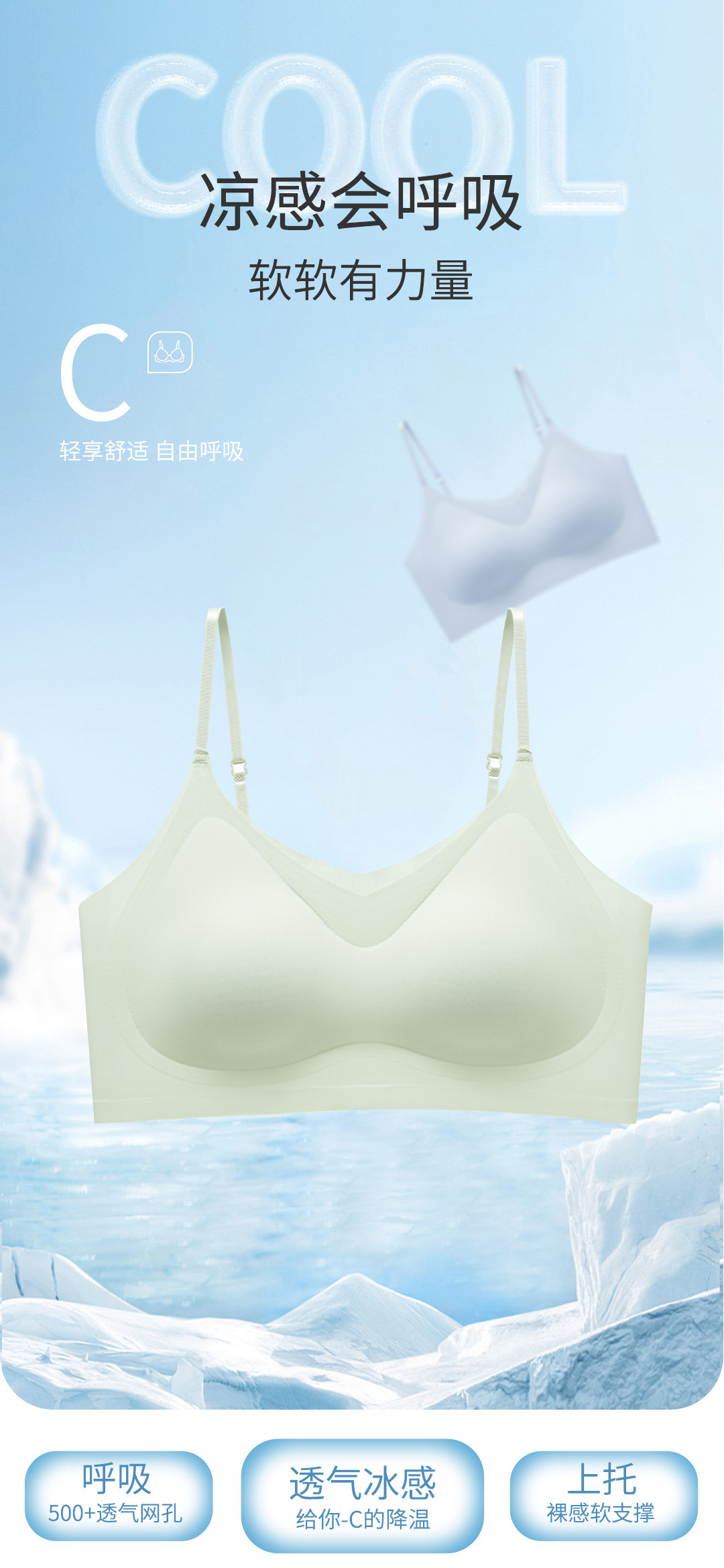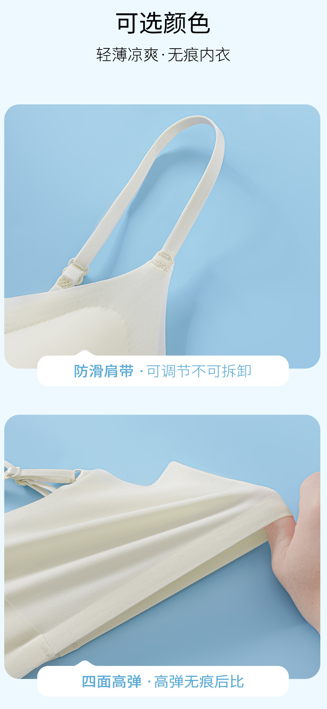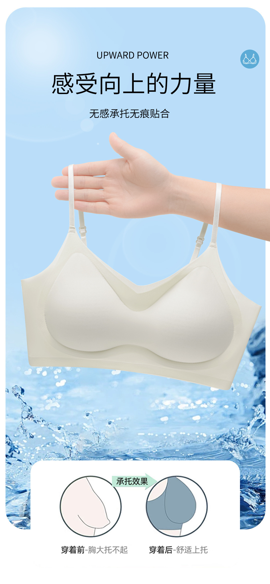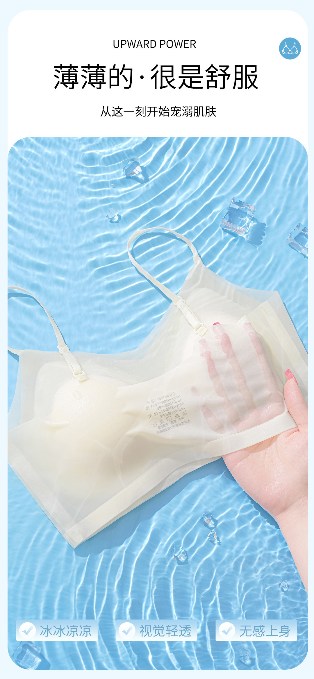 여름 초박형 쿨 아이스 실크 tracless 속옷 여성의 큰 가슴 작은 통기성 얇은 어깨 슬링 아름다운 뒤 슬리핑 브래지어스토어 가기