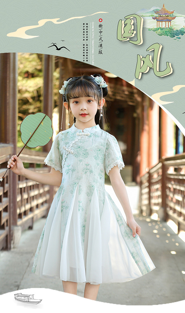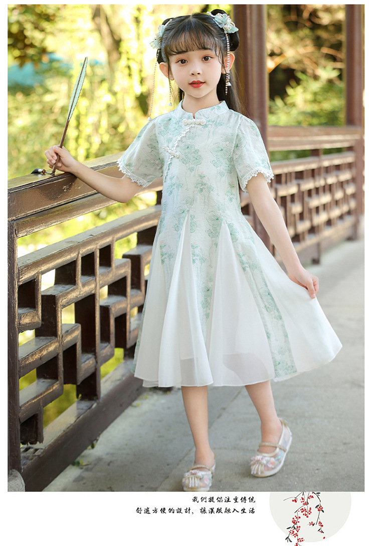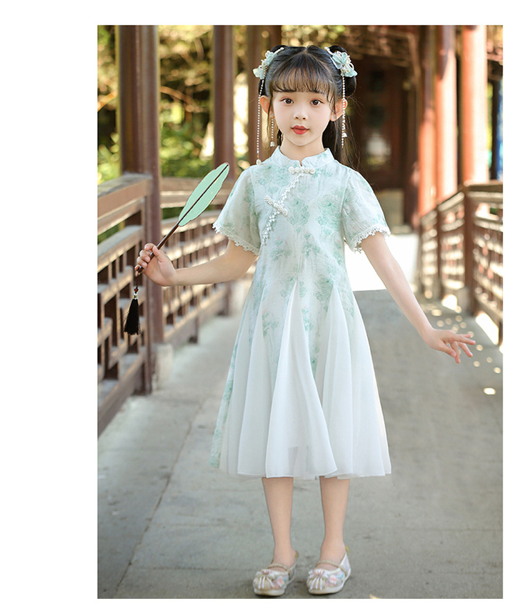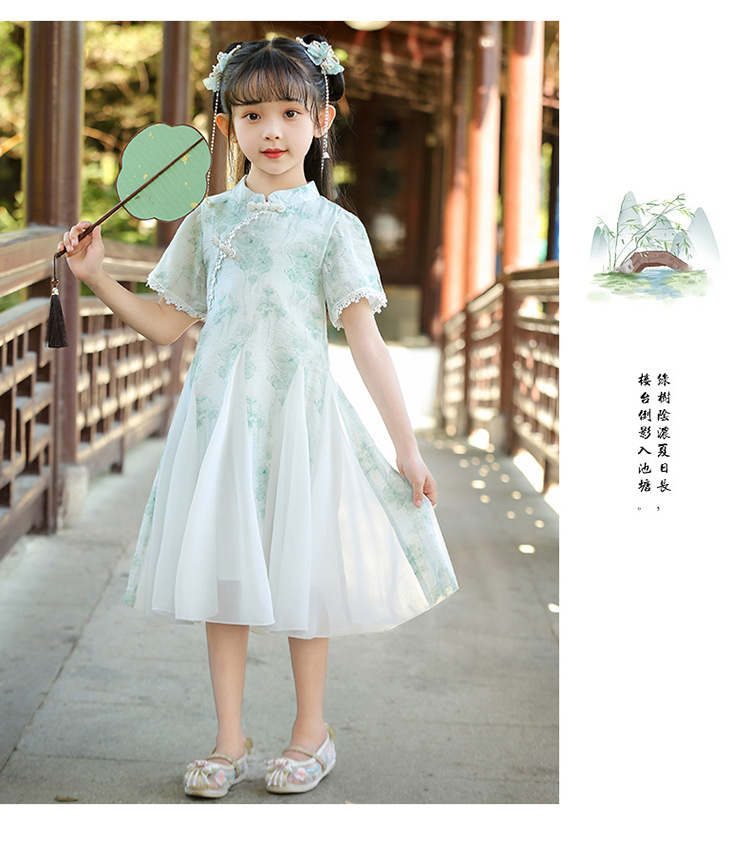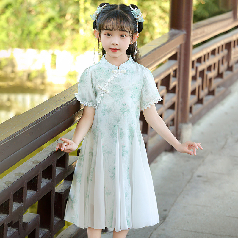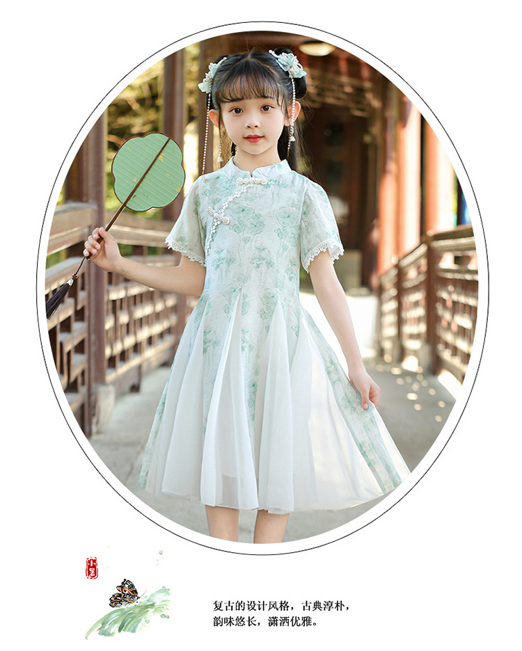 청삼소녀 여름 원피스 2025 새 어린이 한푸 원피스 신형 중국식 소녀 중국식 베일 원피스스토어 가기