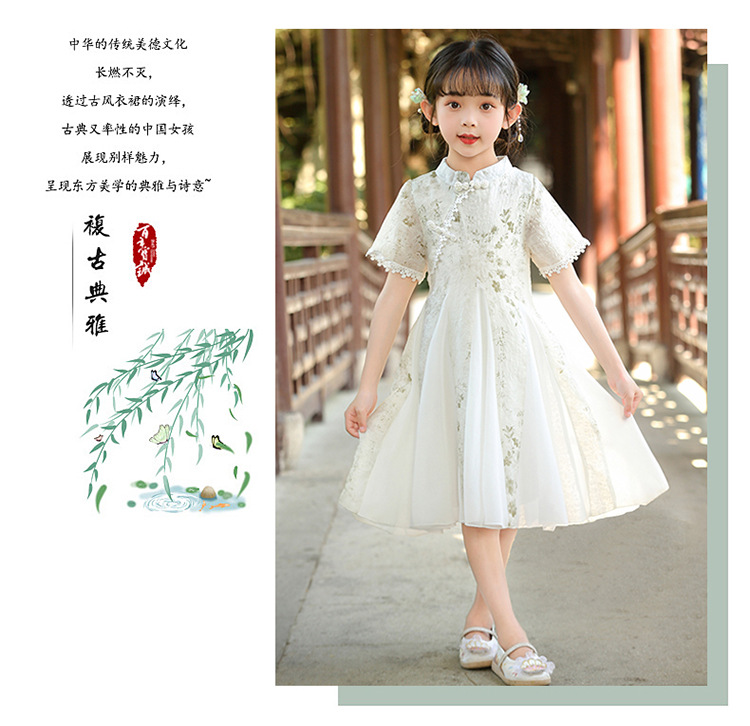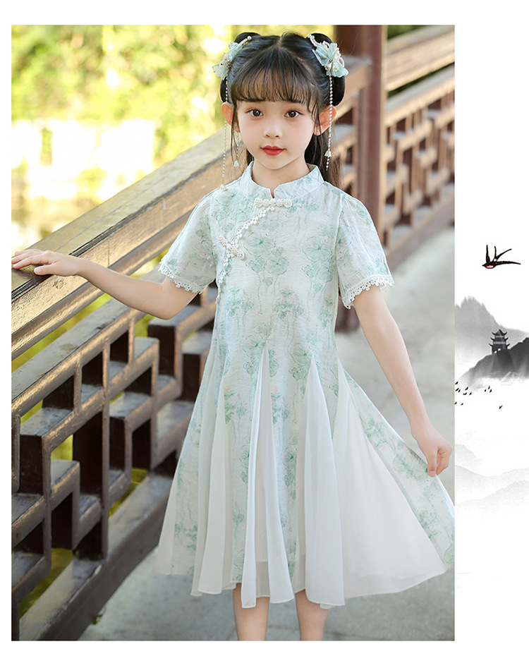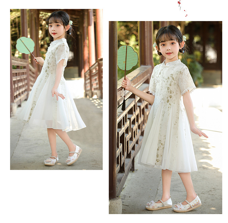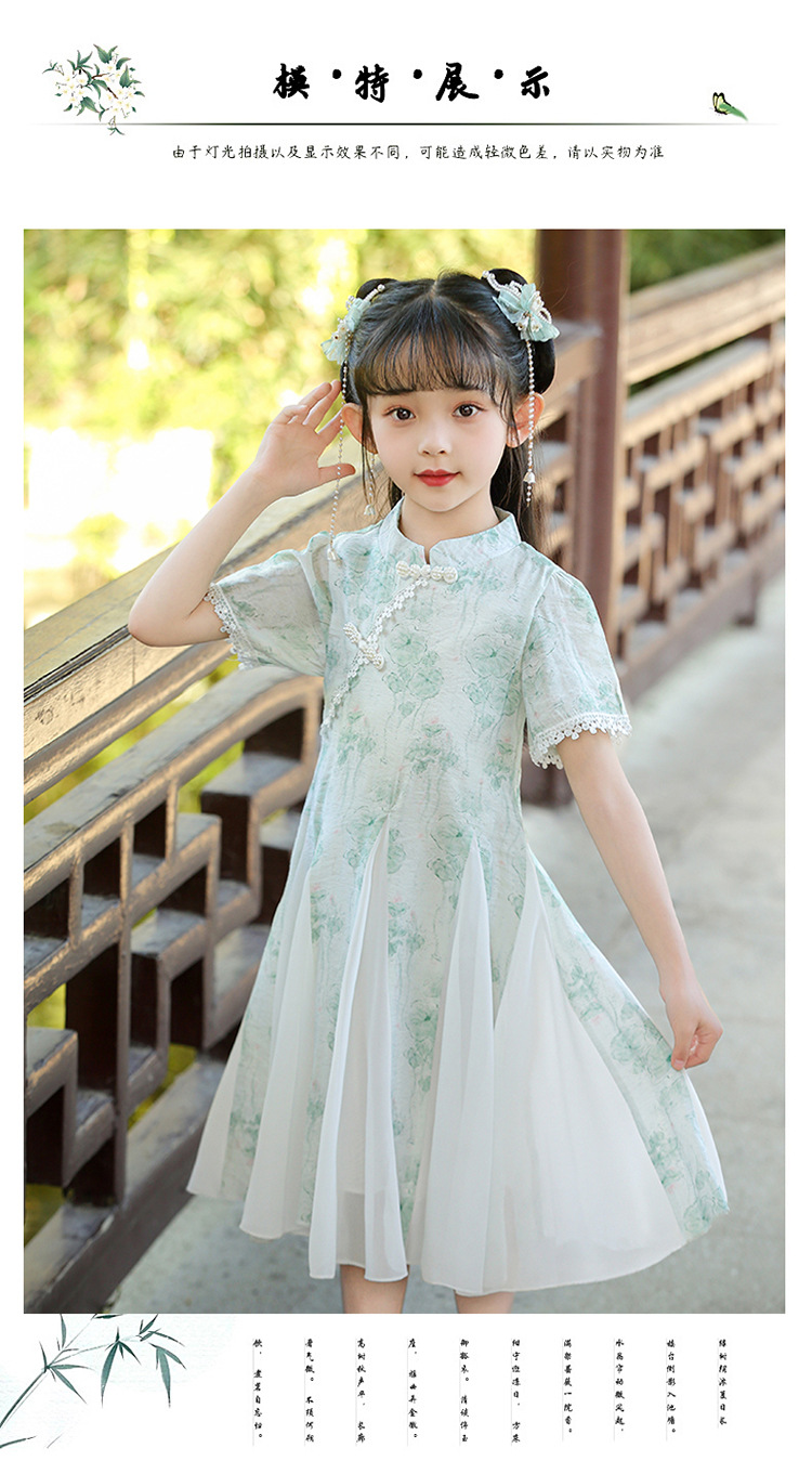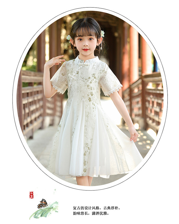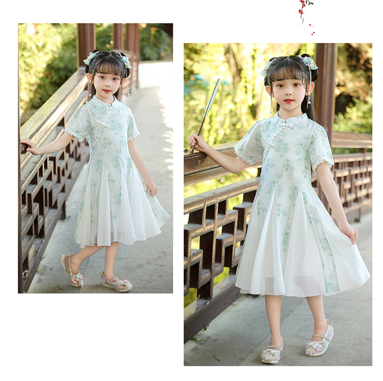 청삼소녀 여름 원피스 2025 새 어린이 한푸 원피스 신형 중국식 소녀 중국식 베일 원피스스토어 가기