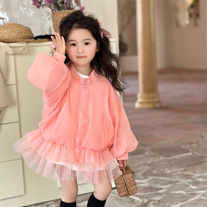 어린이 의류 2024 가을 새 소녀 코트 아기의 스타일 메쉬 공주 스커트 탑 어린이 올 매치 의류스토어 가기