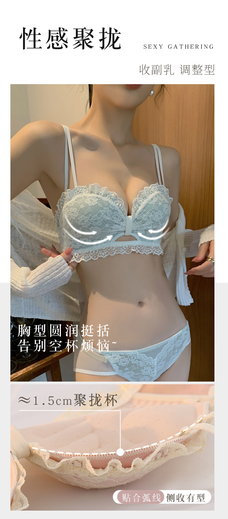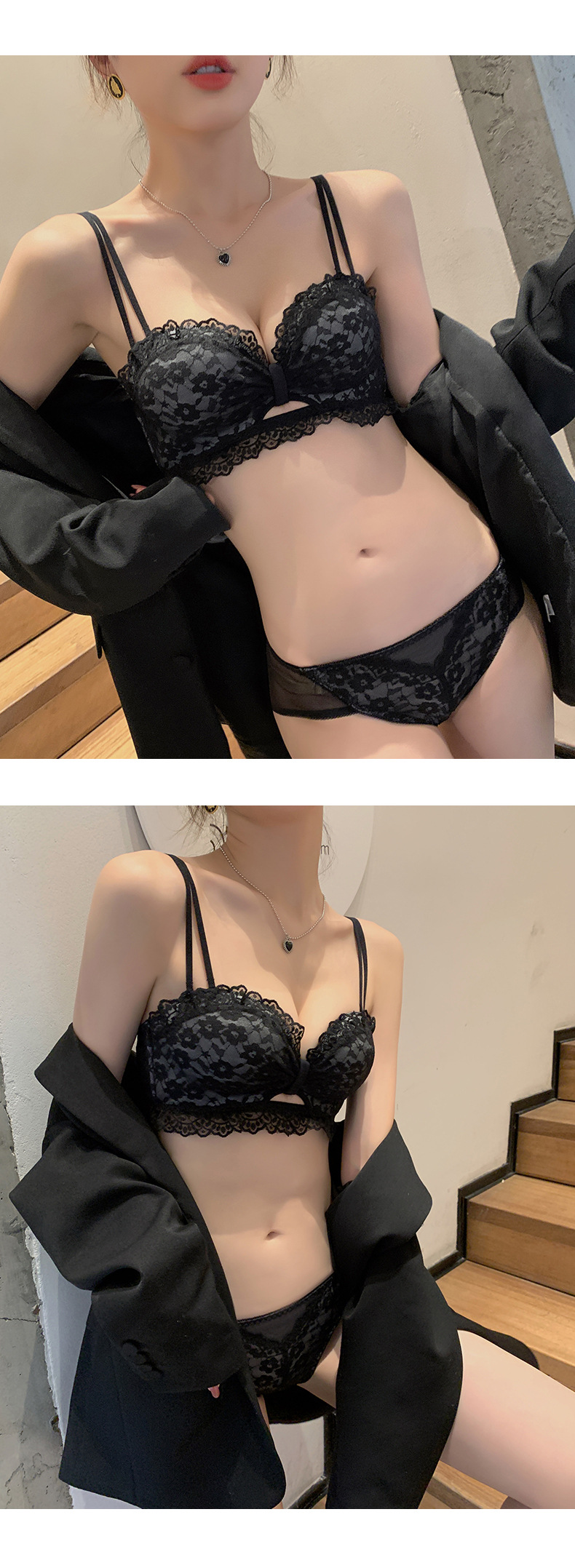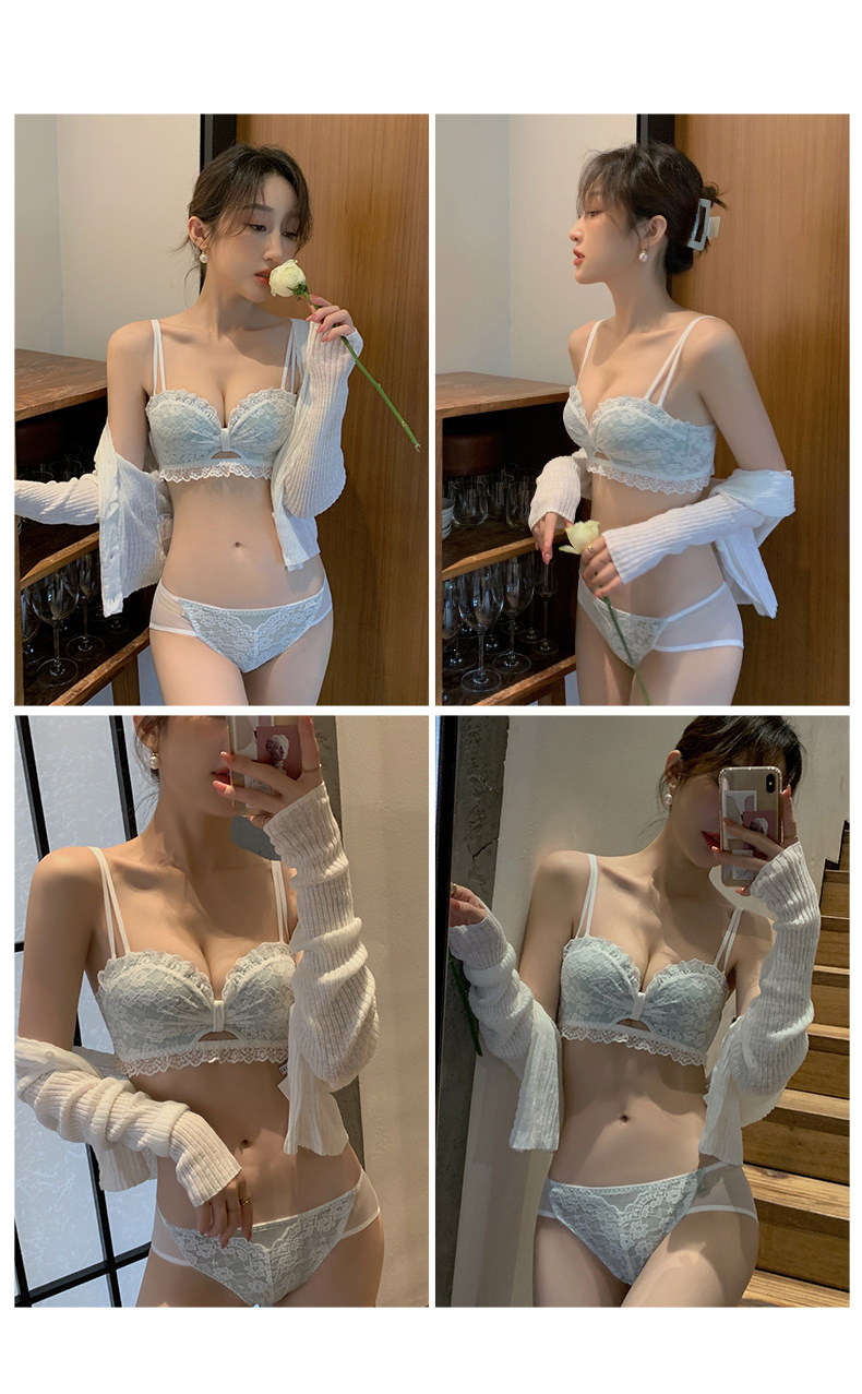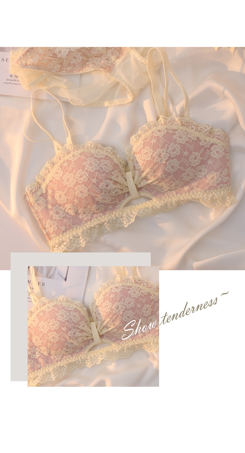 오리지널 순수한 욕망 소녀 레이스 속옷 세트 작은 가슴 푸시 업 여성용 와이어 프리 라텍스 브라