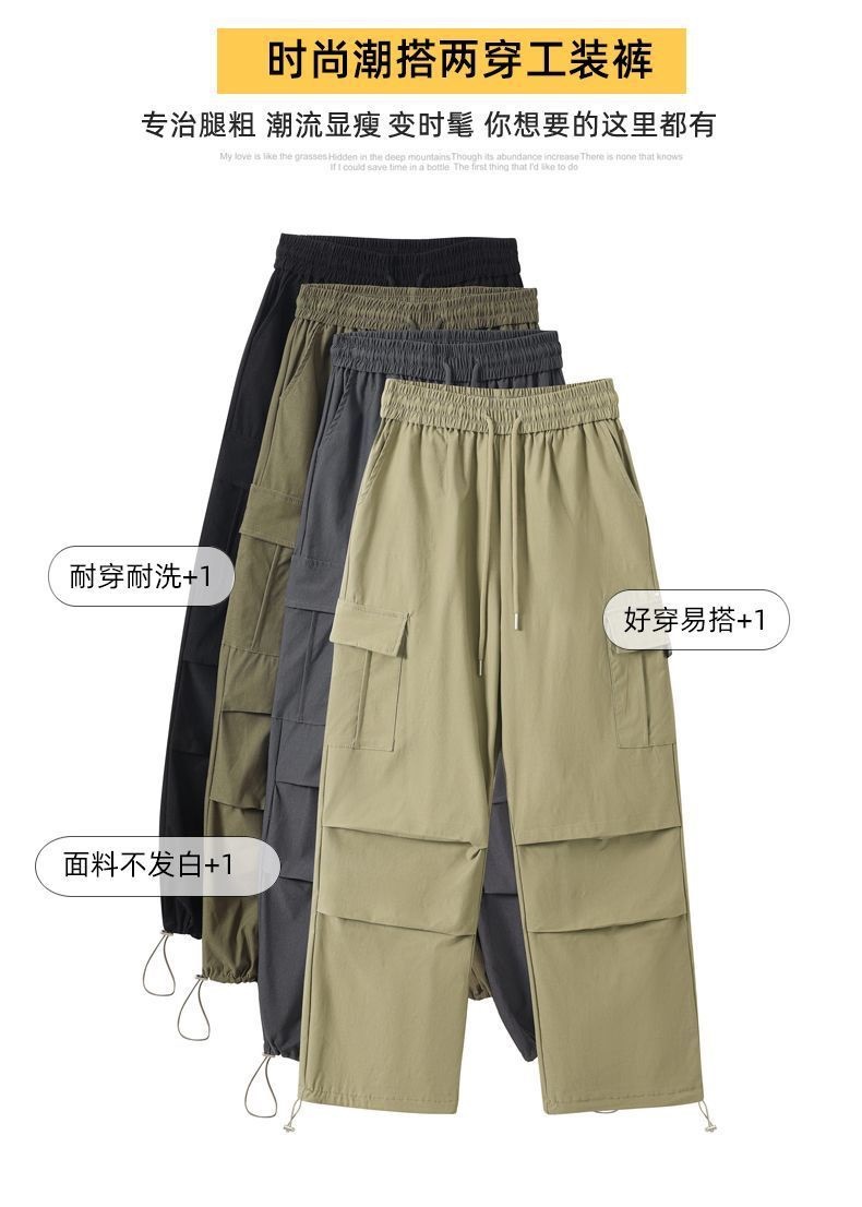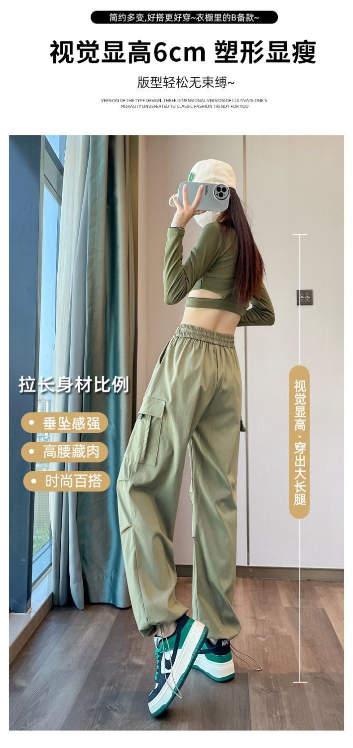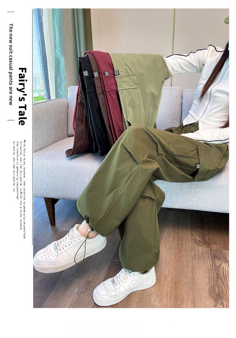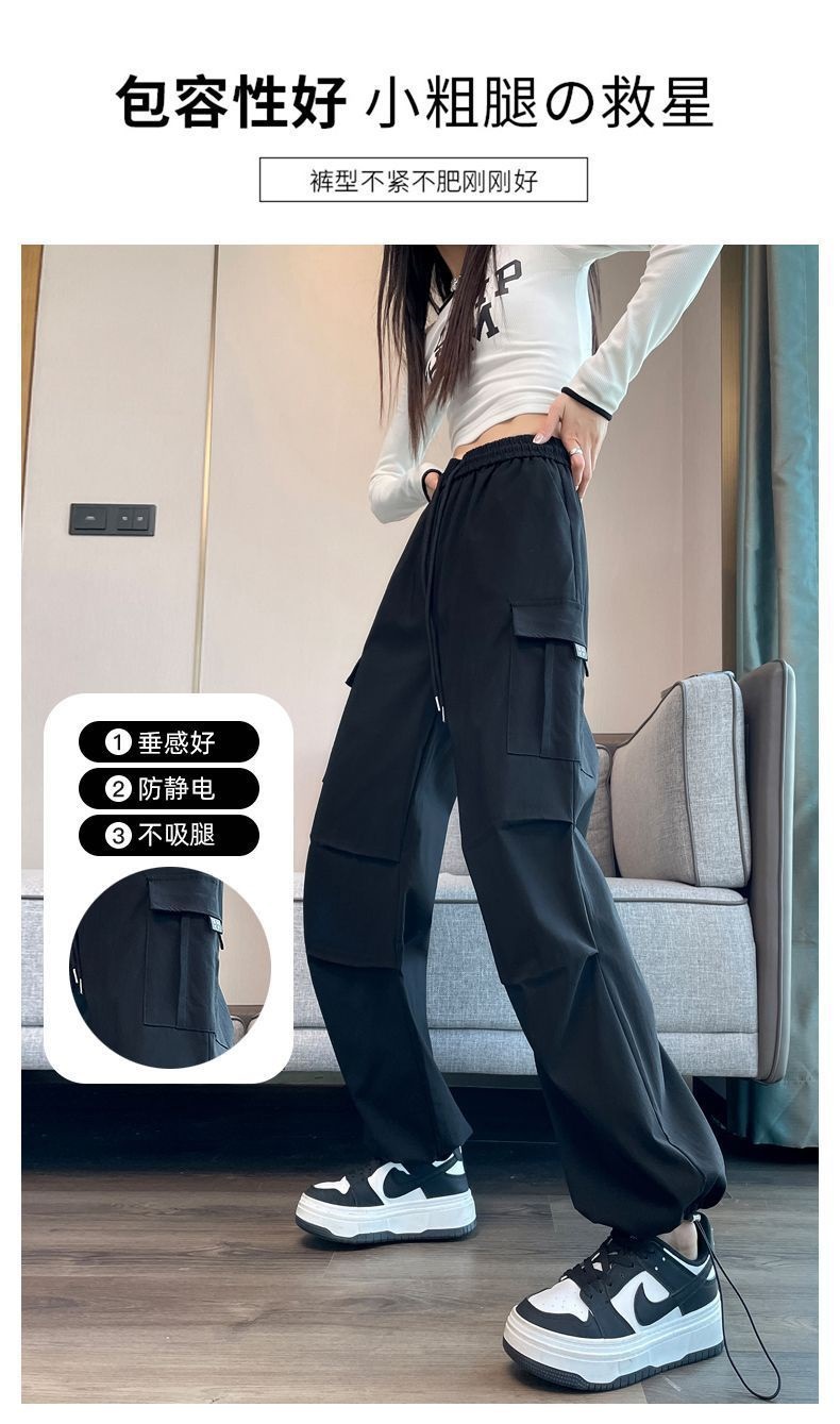 Douyin 품질의 새로운 미국식 작업복 여성용 슬리밍 드로스트링 하이킹 바지 하이 웨이스트 캐주얼 와이드 레그 팬츠스토어 가기
