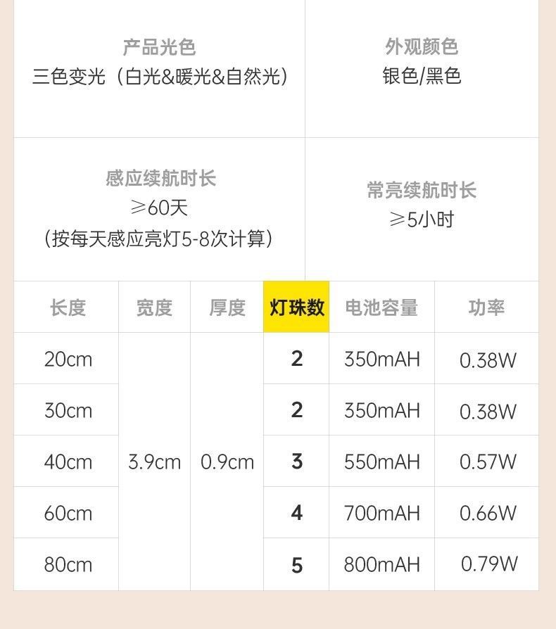 • 풀 스펙트럼 화이트 80CM + 삼색조명 + 인체유도