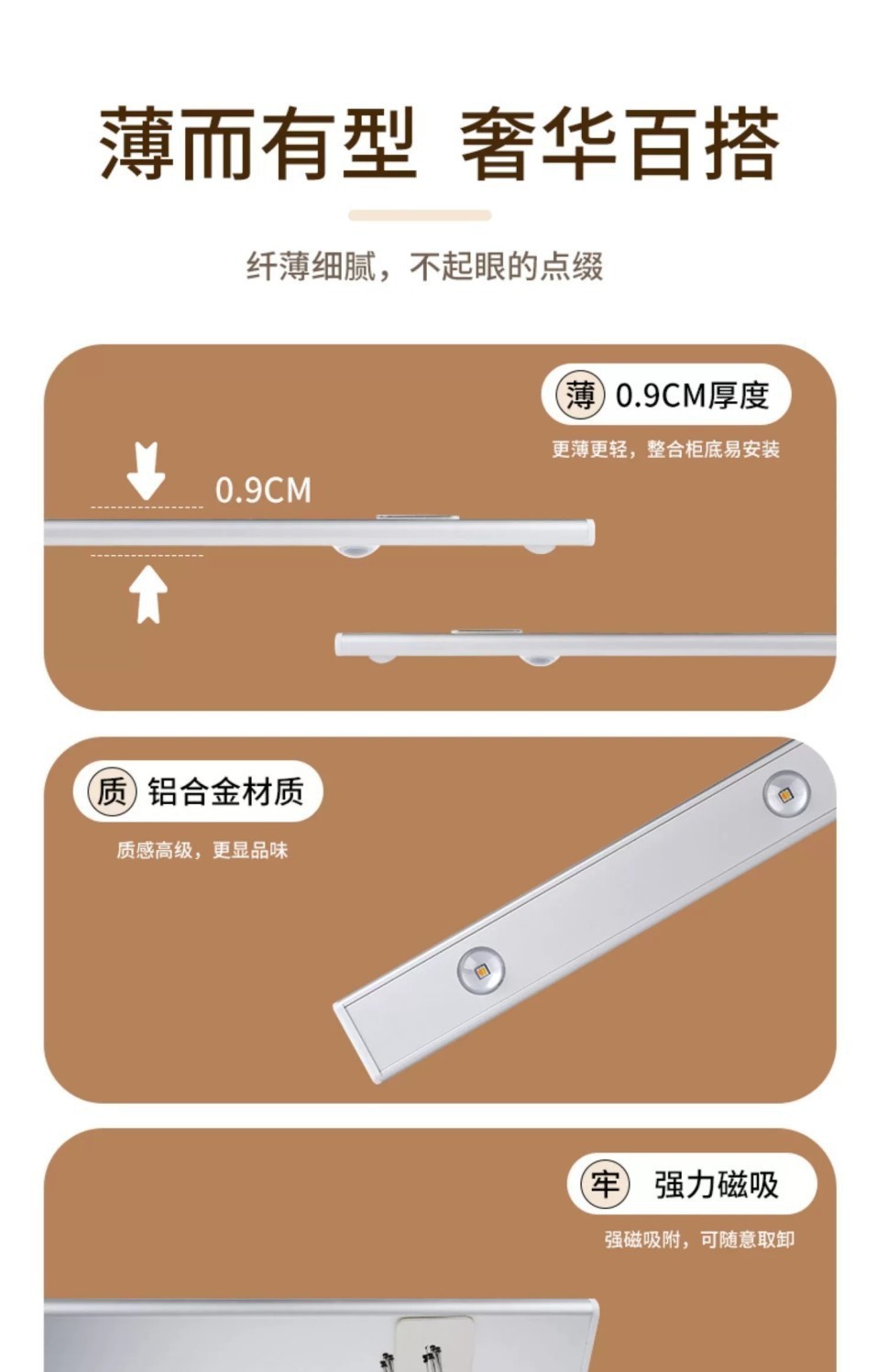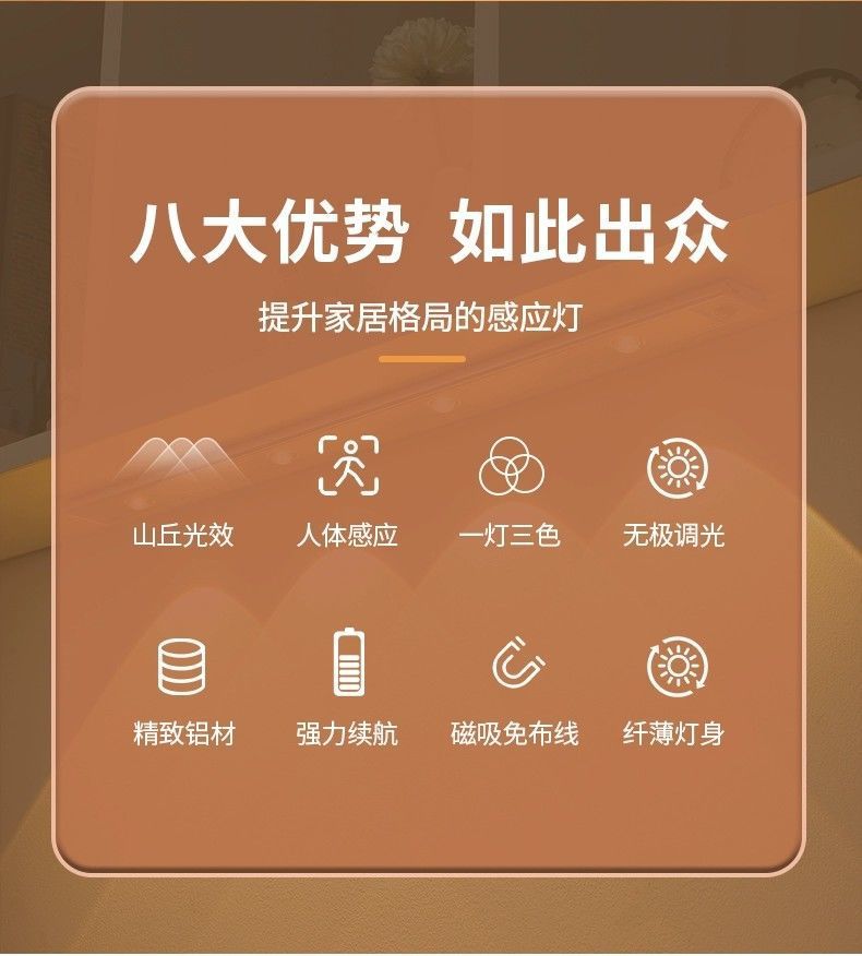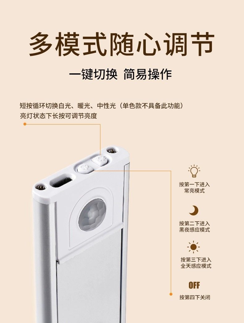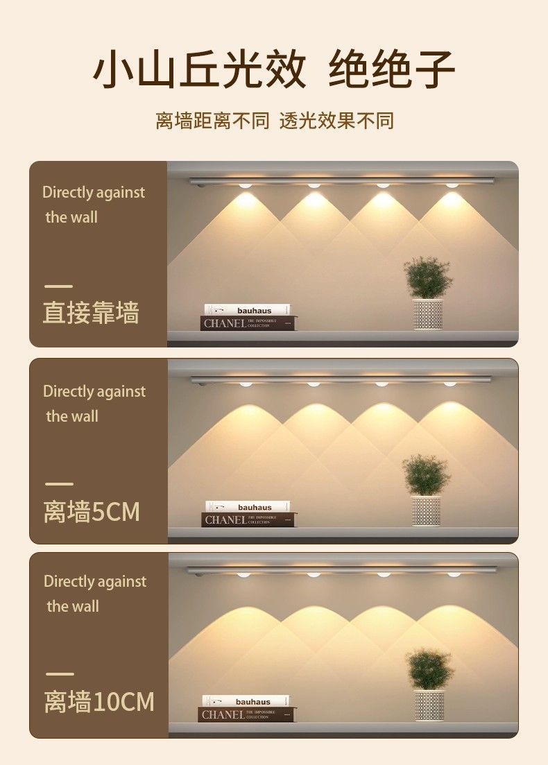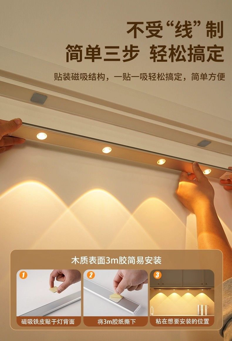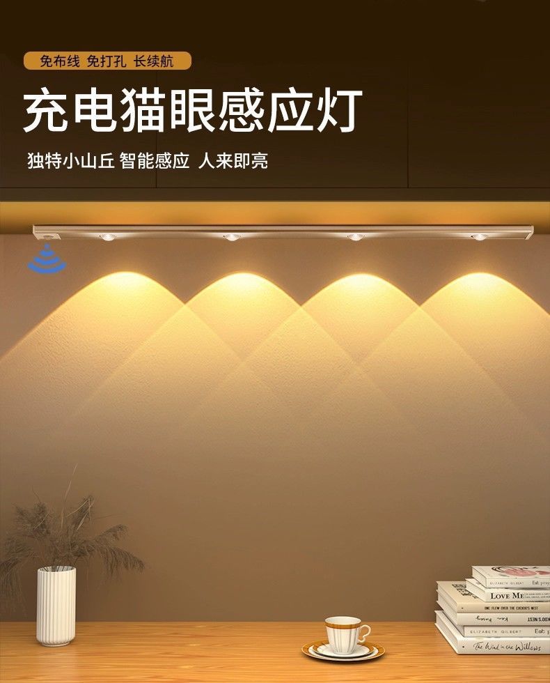스마트 인체 감지 라이트 충전식 고양이 눈 산 라인 조명 무선 자가 접착 LED 옷장 와인 캐비닛 조명 스트립