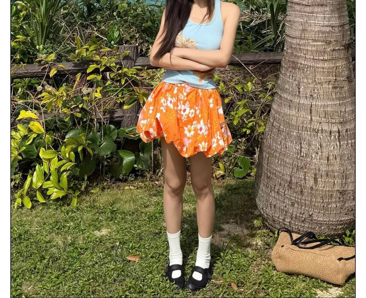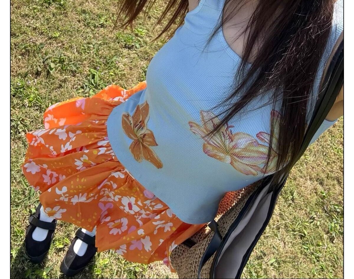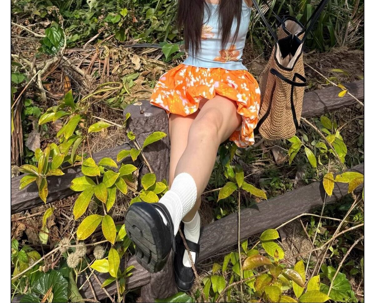 오렌지 해변 리조트 스타일 2025 새로운 여성 복고풍 꽃 스커트 여름 뜨거운 소녀 하이 웨이스트 캐주얼 스커트 짧은 스커트