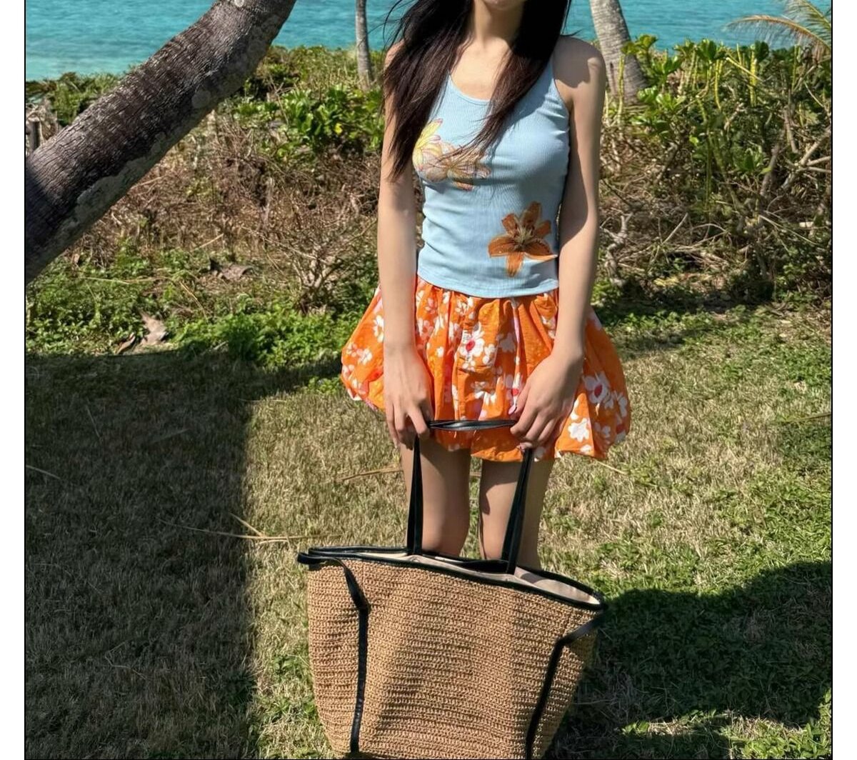 오렌지 해변 리조트 스타일 2025 새로운 여성 복고풍 꽃 스커트 여름 뜨거운 소녀 하이 웨이스트 캐주얼 스커트 짧은 스커트스토어 가기