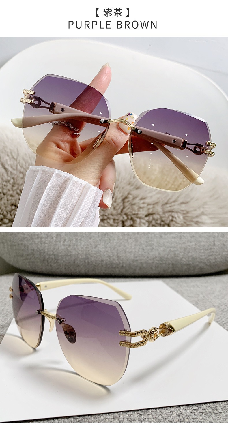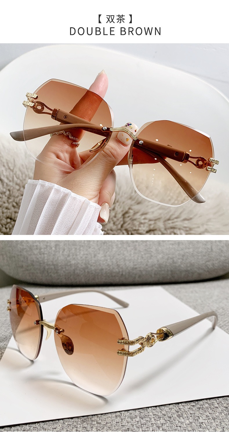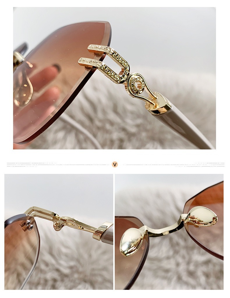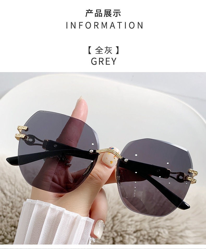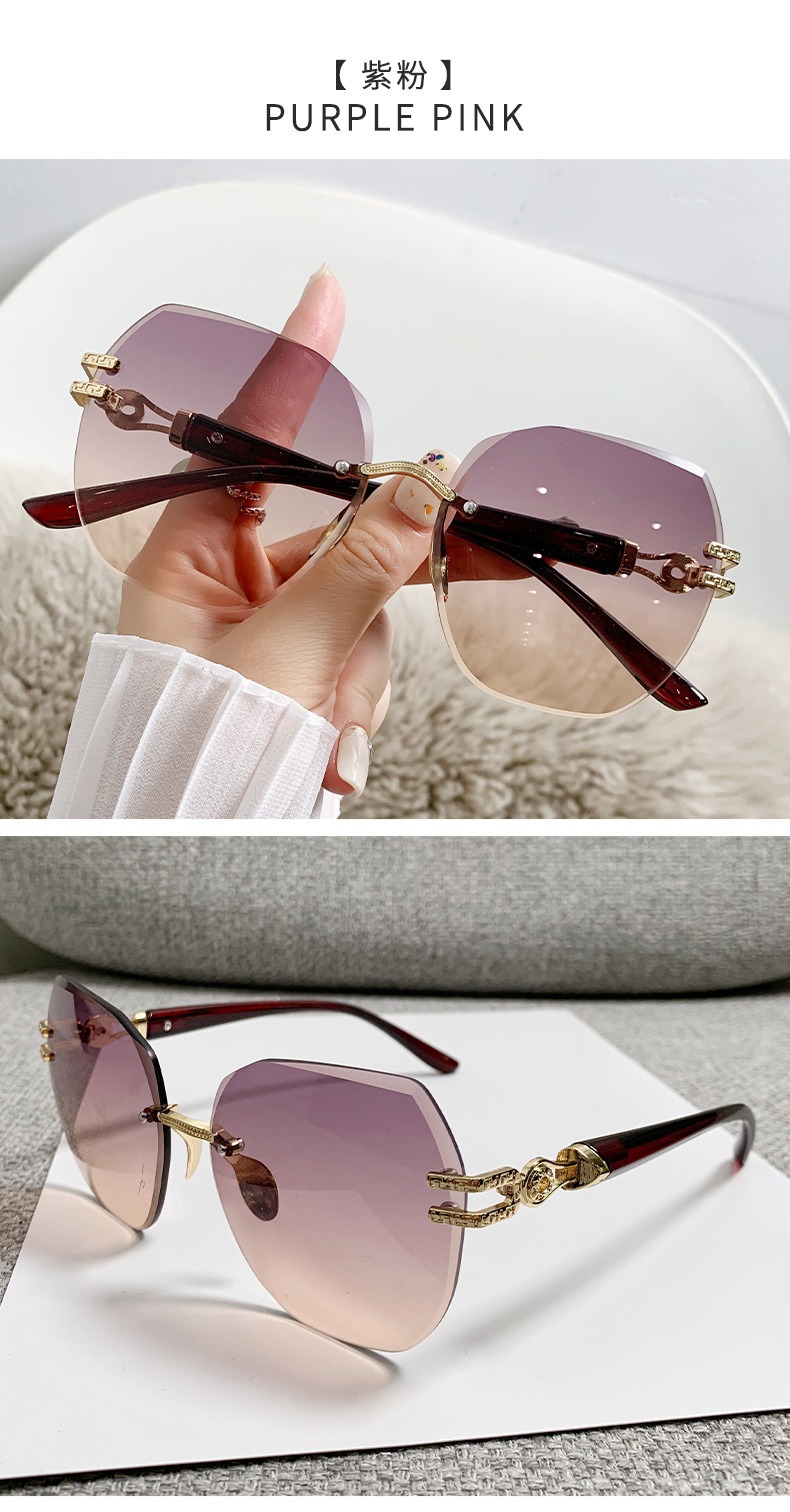 2025 새로운 도착 프레임리스 컷 엣지 할로우 대형 프레임 라운드 페이스 사이버 레드 선글라스 습기 자외선 차단 여성용 선글라스
