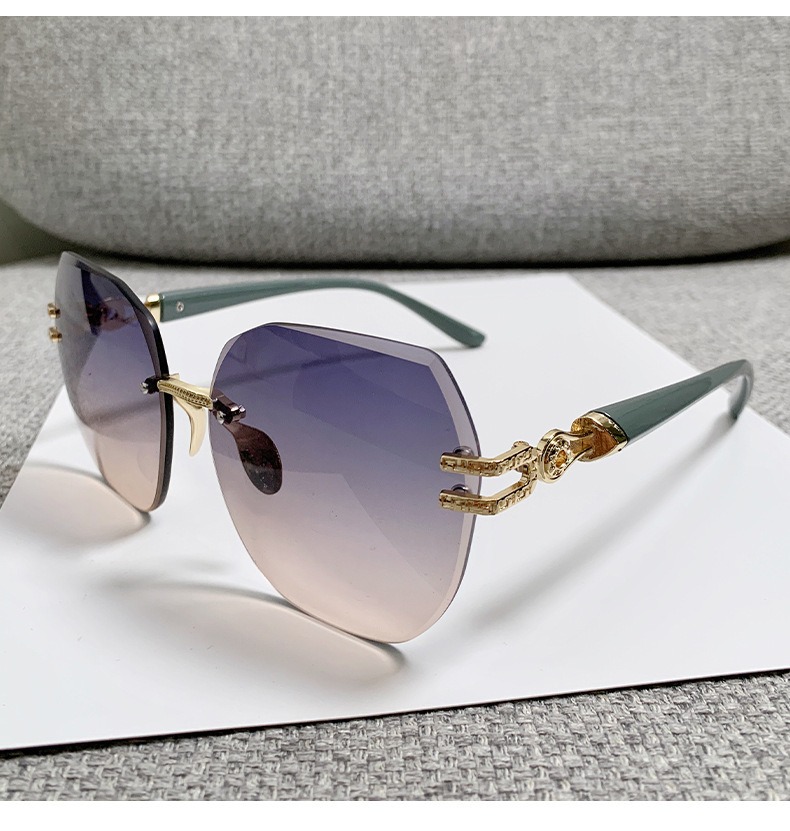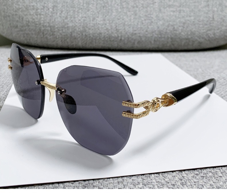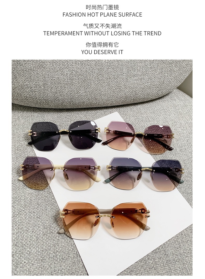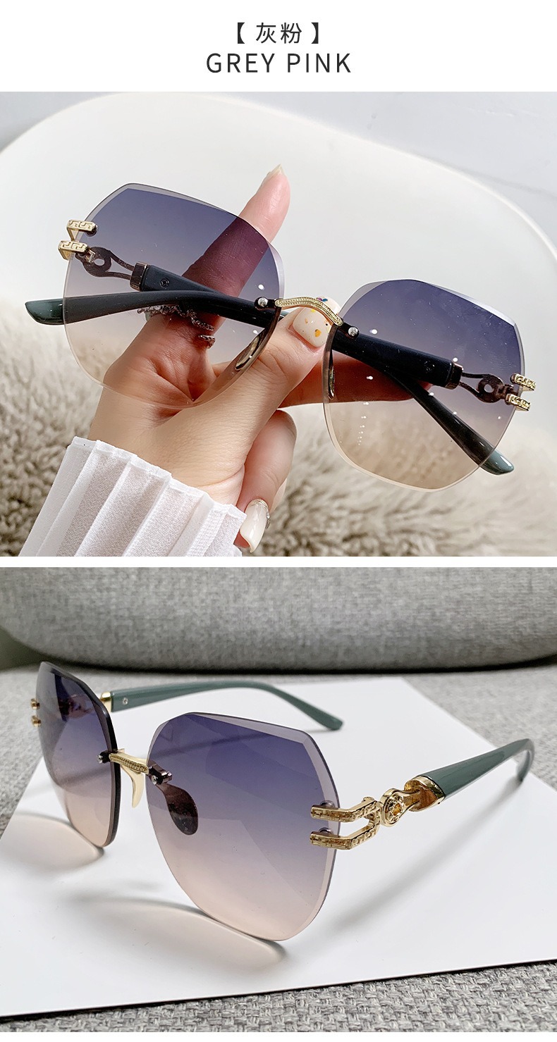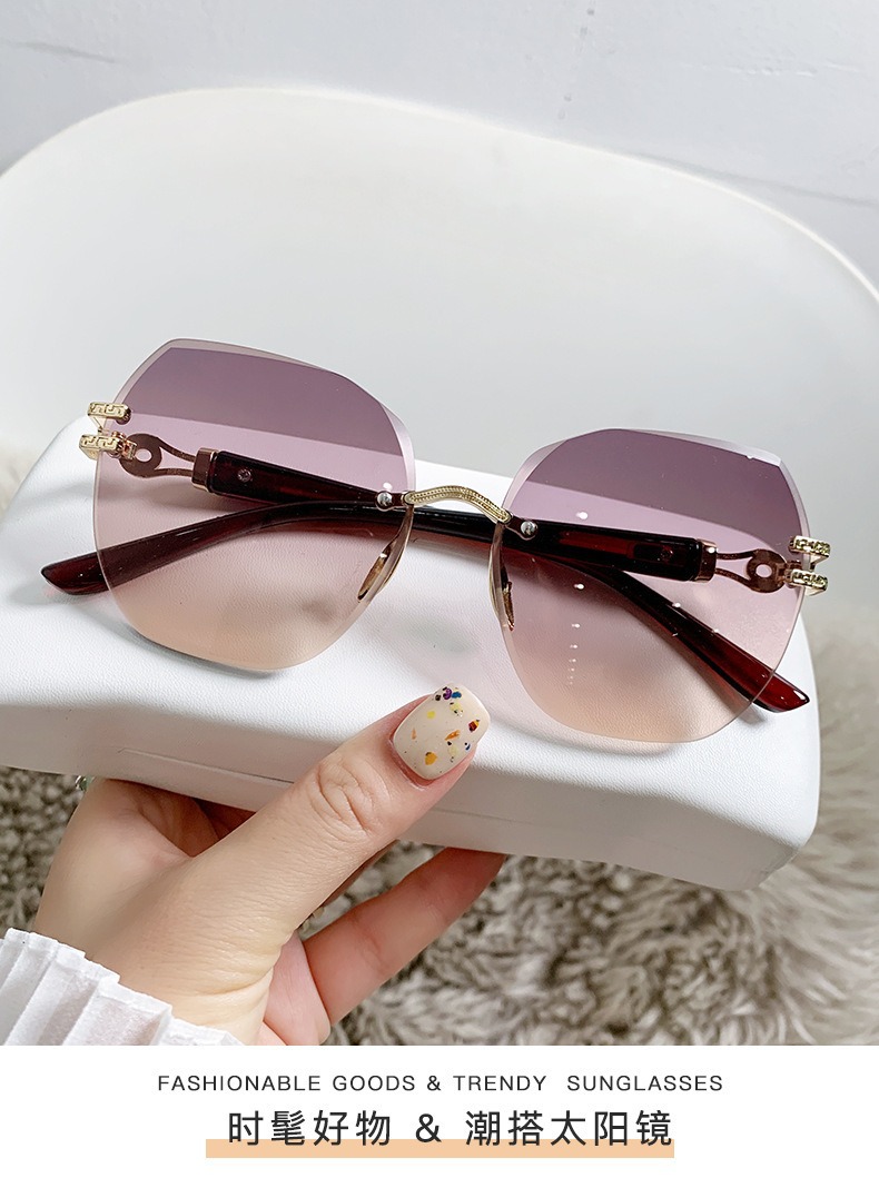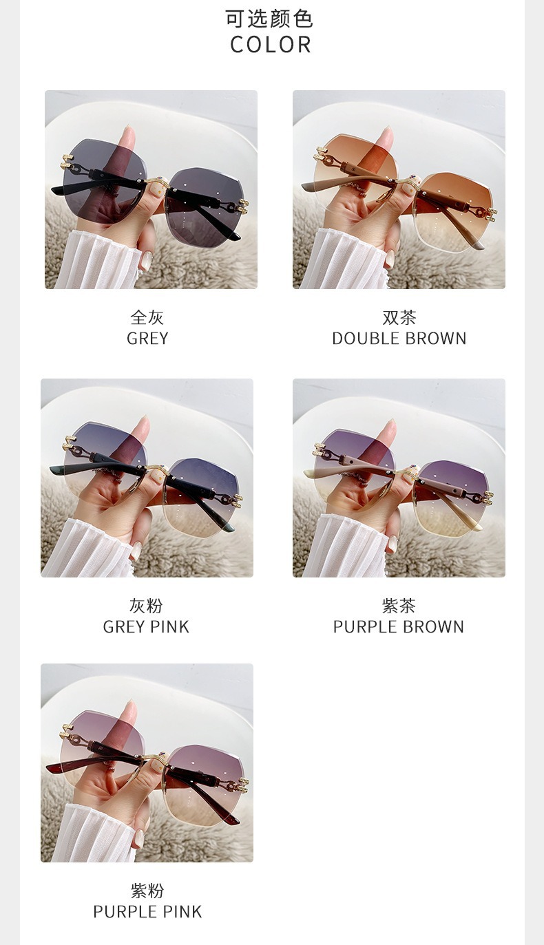 2025 새로운 도착 프레임리스 컷 엣지 할로우 대형 프레임 라운드 페이스 사이버 레드 선글라스 습기 자외선 차단 여성용 선글라스