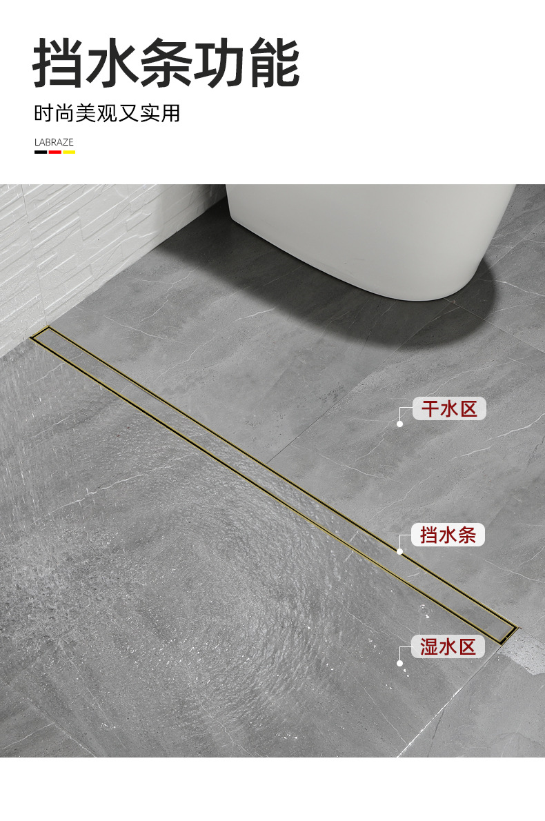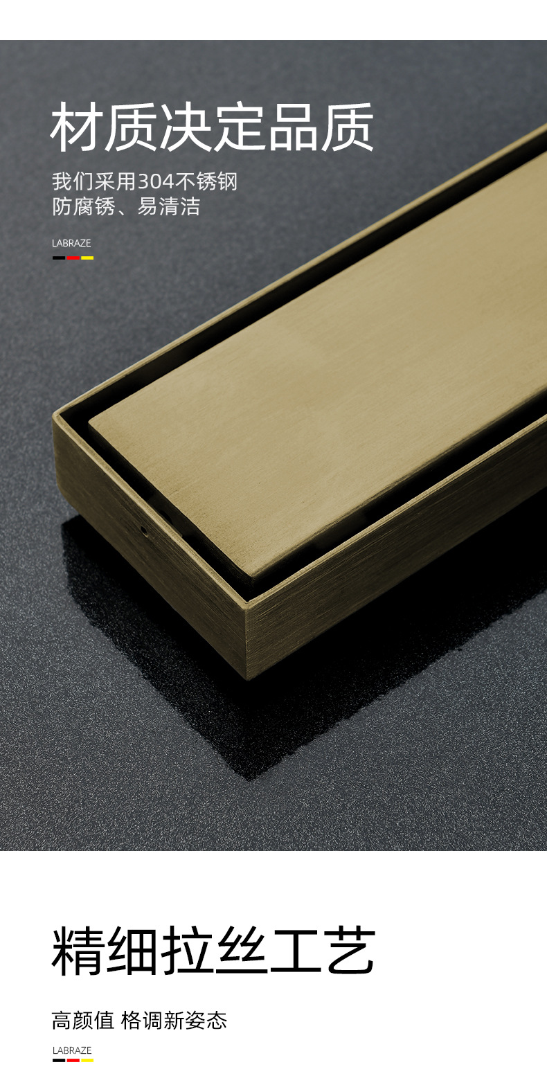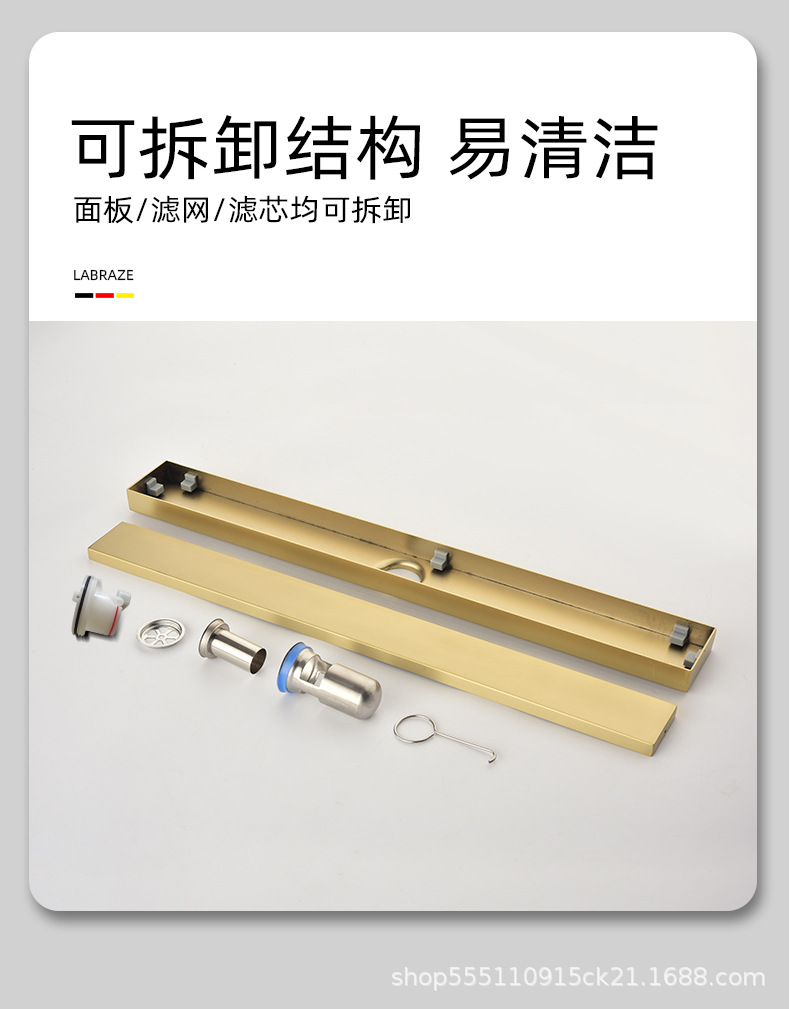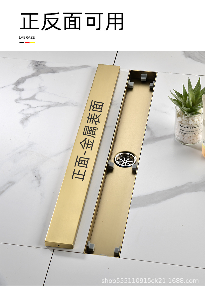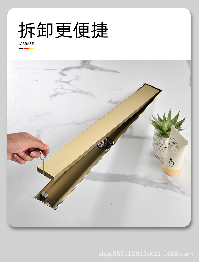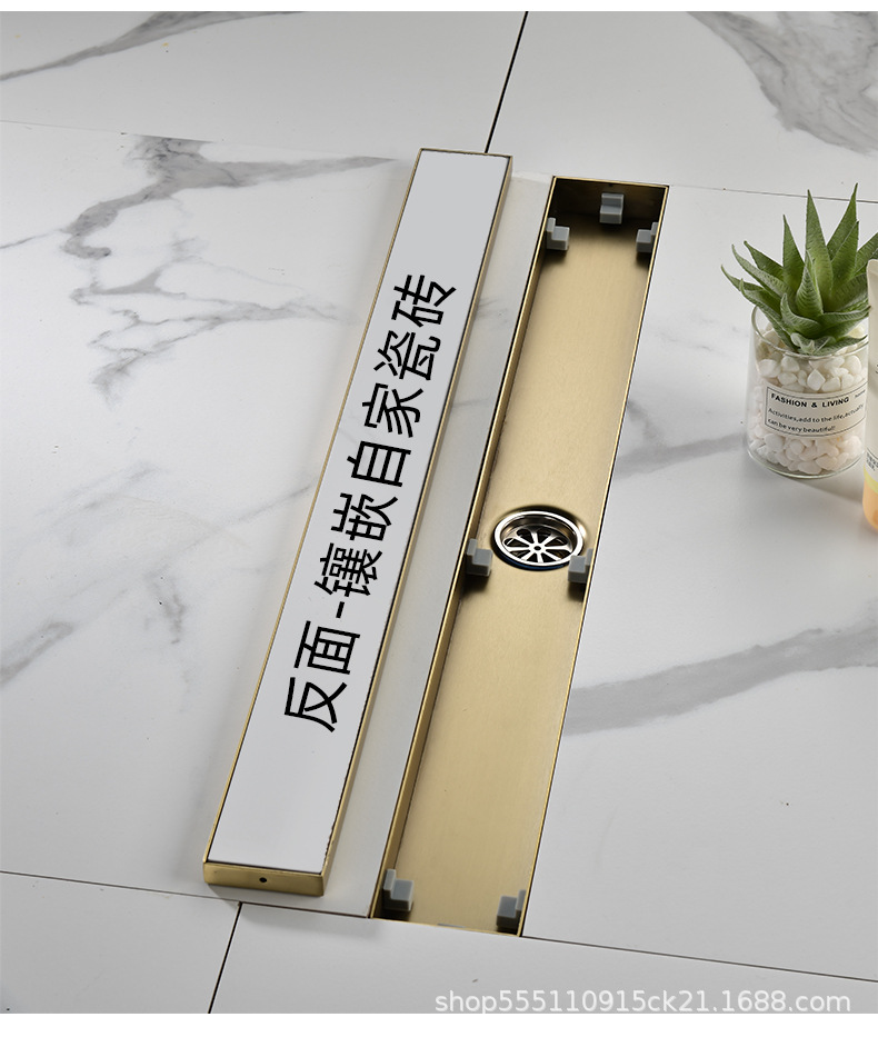 공장 직접 판매 보이지 않는 바닥 배수구 304 스테인레스 스틸 긴 스트립 지르코늄 골드 타일 방취 욕실스토어 가기