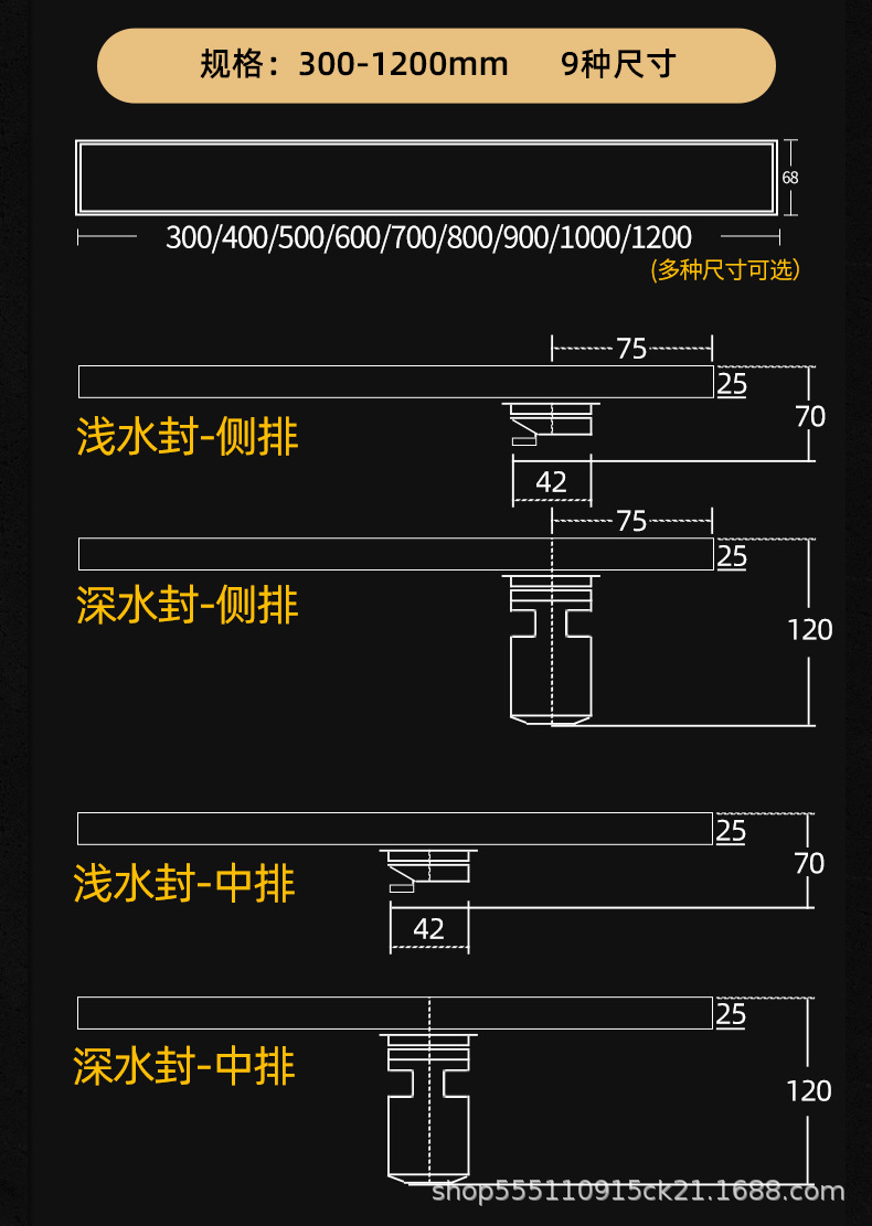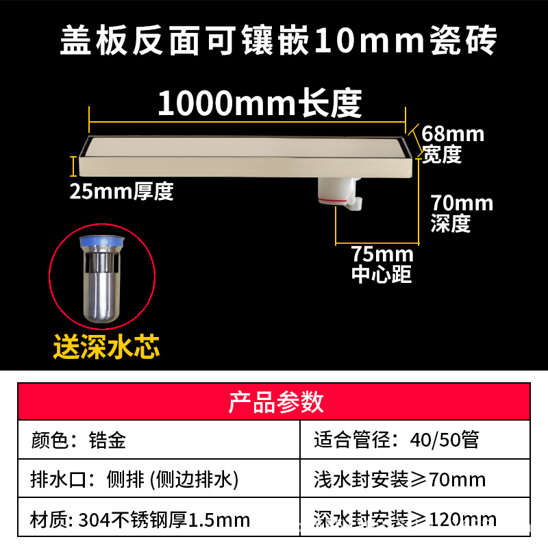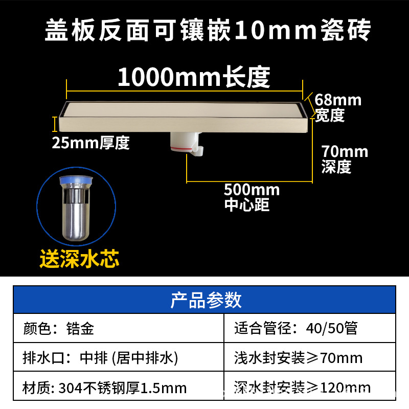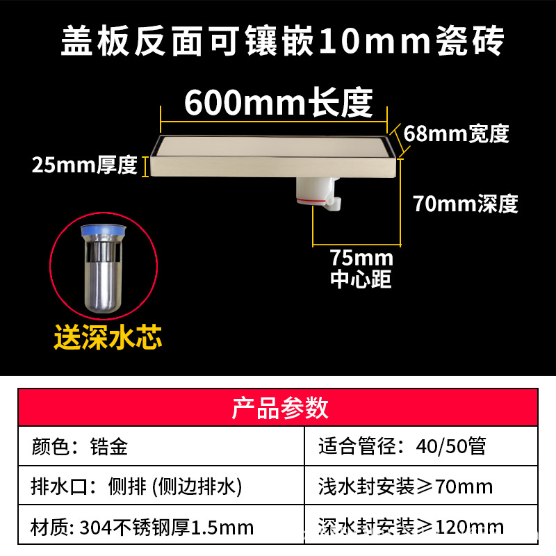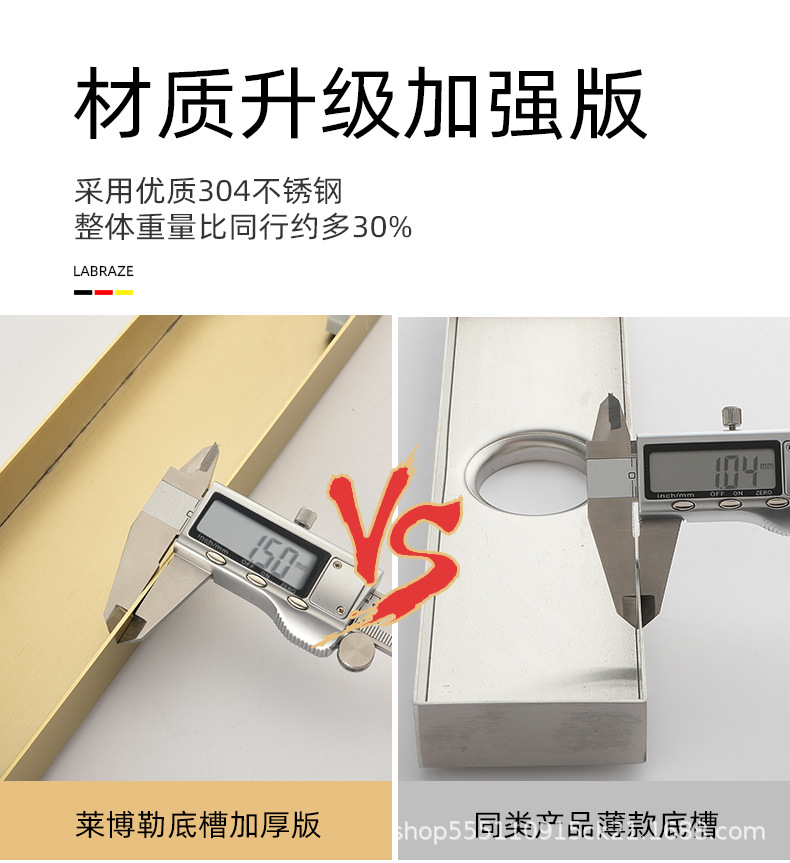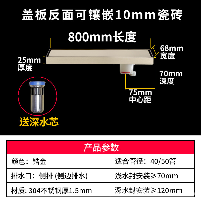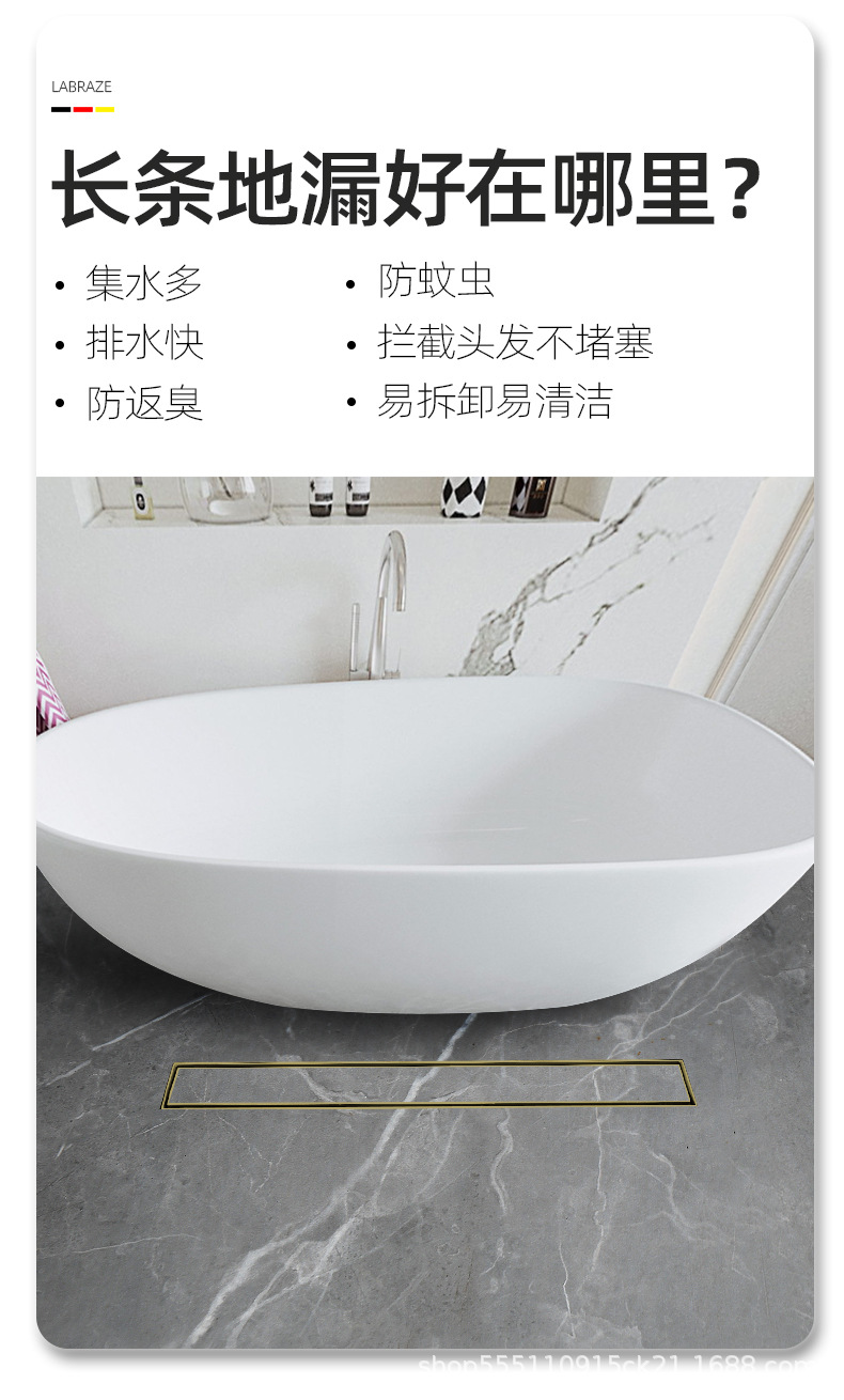 공장 직접 판매 보이지 않는 바닥 배수구 304 스테인레스 스틸 긴 스트립 지르코늄 골드 타일 방취 욕실스토어 가기