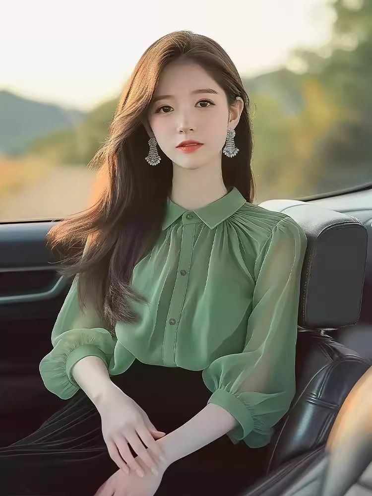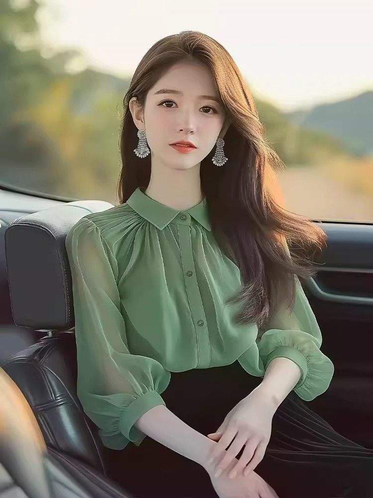 녹색 쉬폰 셔츠 여성의 2025 봄과 여름 서양 스타일 작은 셔츠 프랑스 우아한 선 스크린 슈퍼 아름다운 독특한 탑스토어 가기
