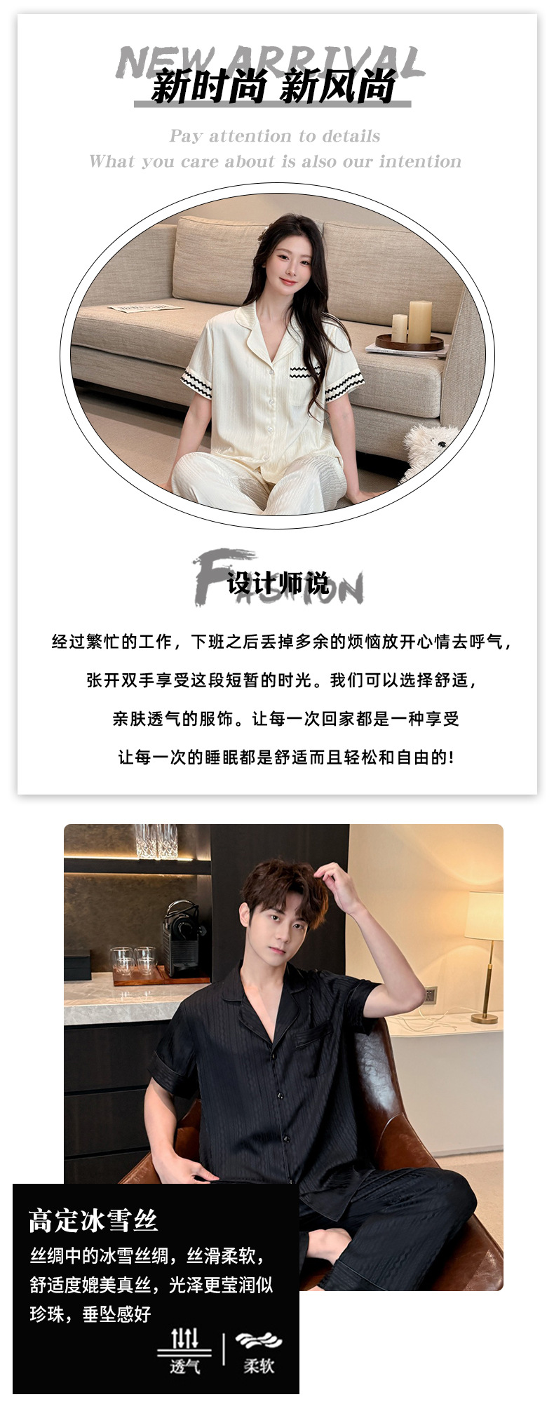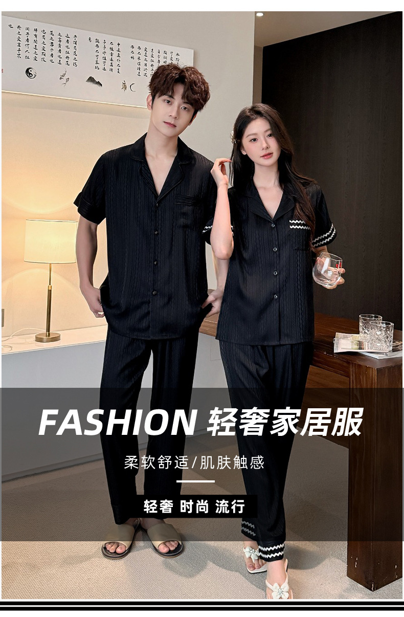 소스 공장 제품 2025 자카드 반팔 새로운 얼음 실크 잠옷 여성 Douyin 패션 만화 인터넷 연예인 패션 홈웨어스토어 가기