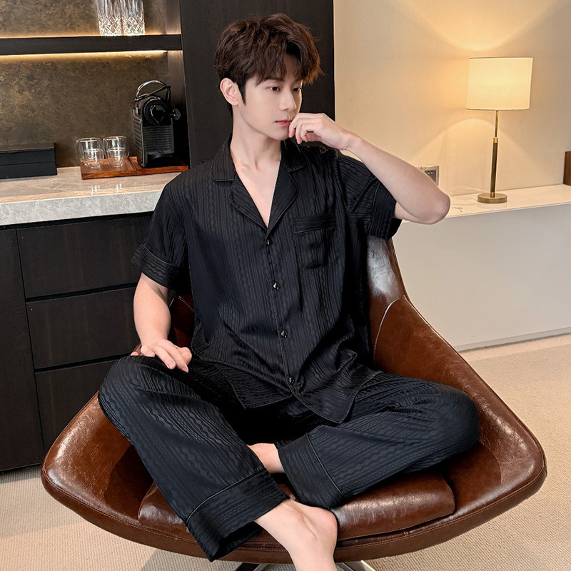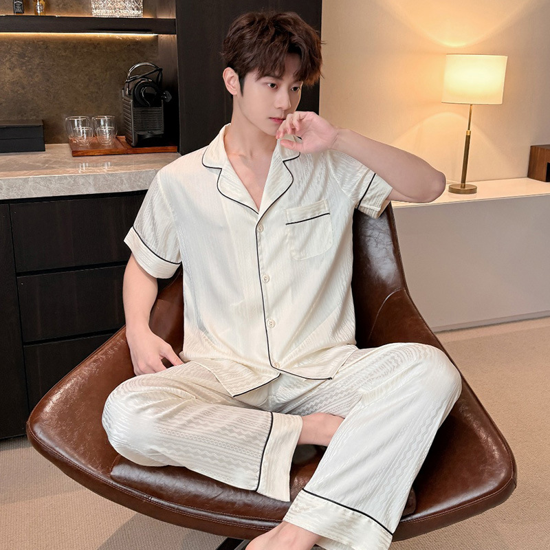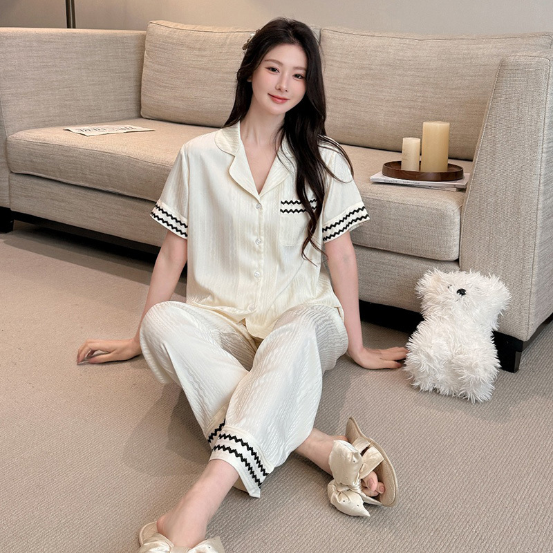 소스 공장 제품 2025 자카드 반팔 새로운 얼음 실크 잠옷 여성 Douyin 패션 만화 인터넷 연예인 패션 홈웨어