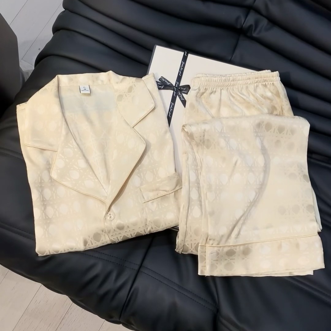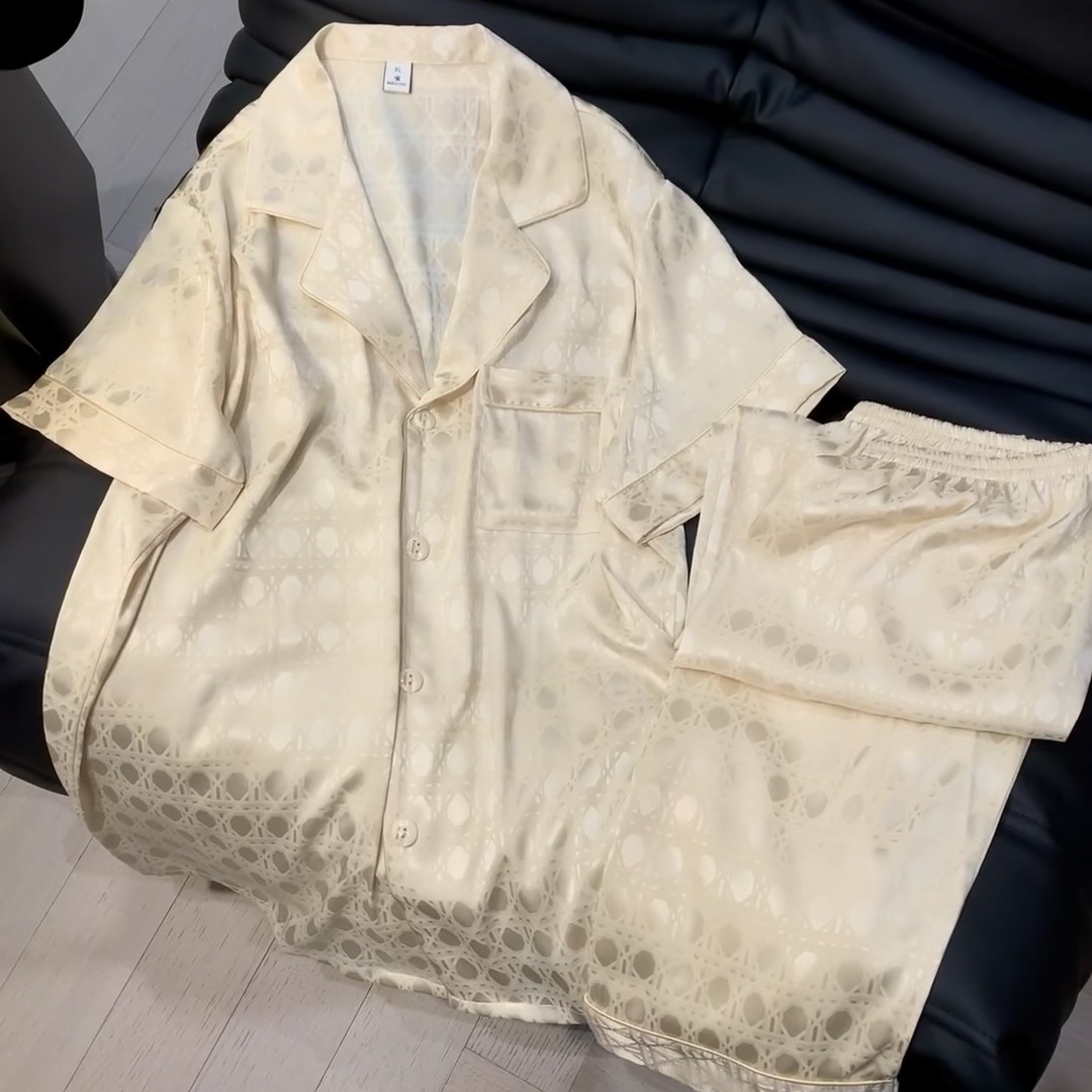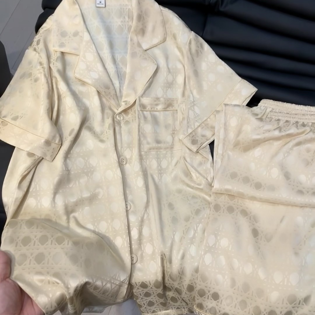 여름 뉴 디지아 골든 등나무 격자 무늬 세트 텐셀 반팔 커플 파자마 여성 실크 홈 봄과 가을 남성스토어 가기
